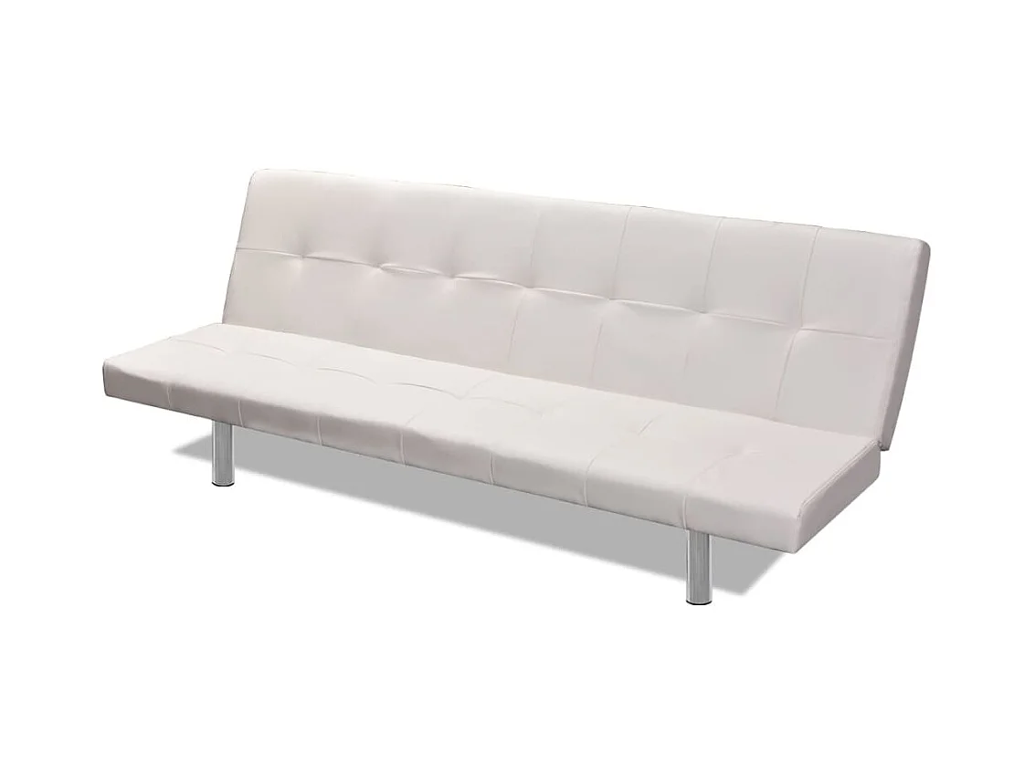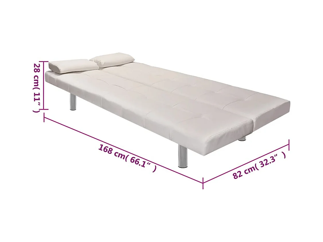 Canapé-lit réglable avec deux oreillers Similicuir Blanc crème