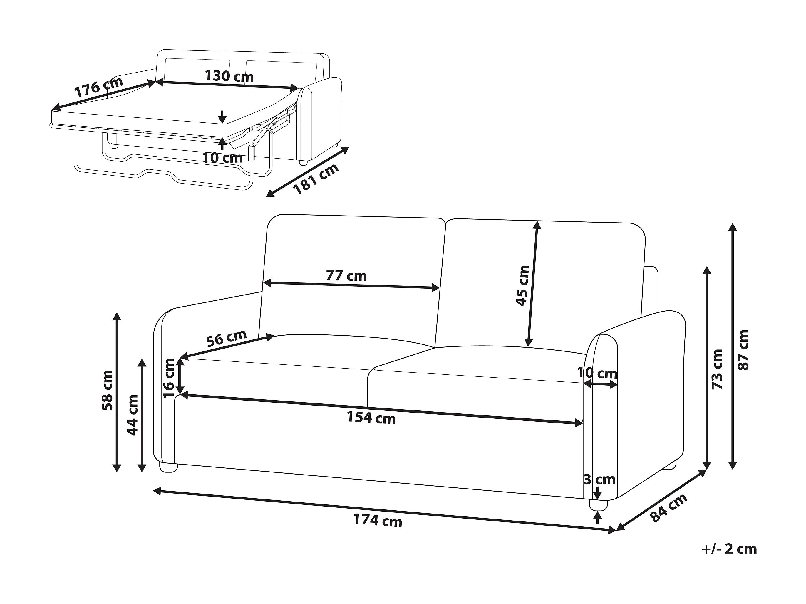 Canapé-lit 3 places BENNAS Tissu Taupe