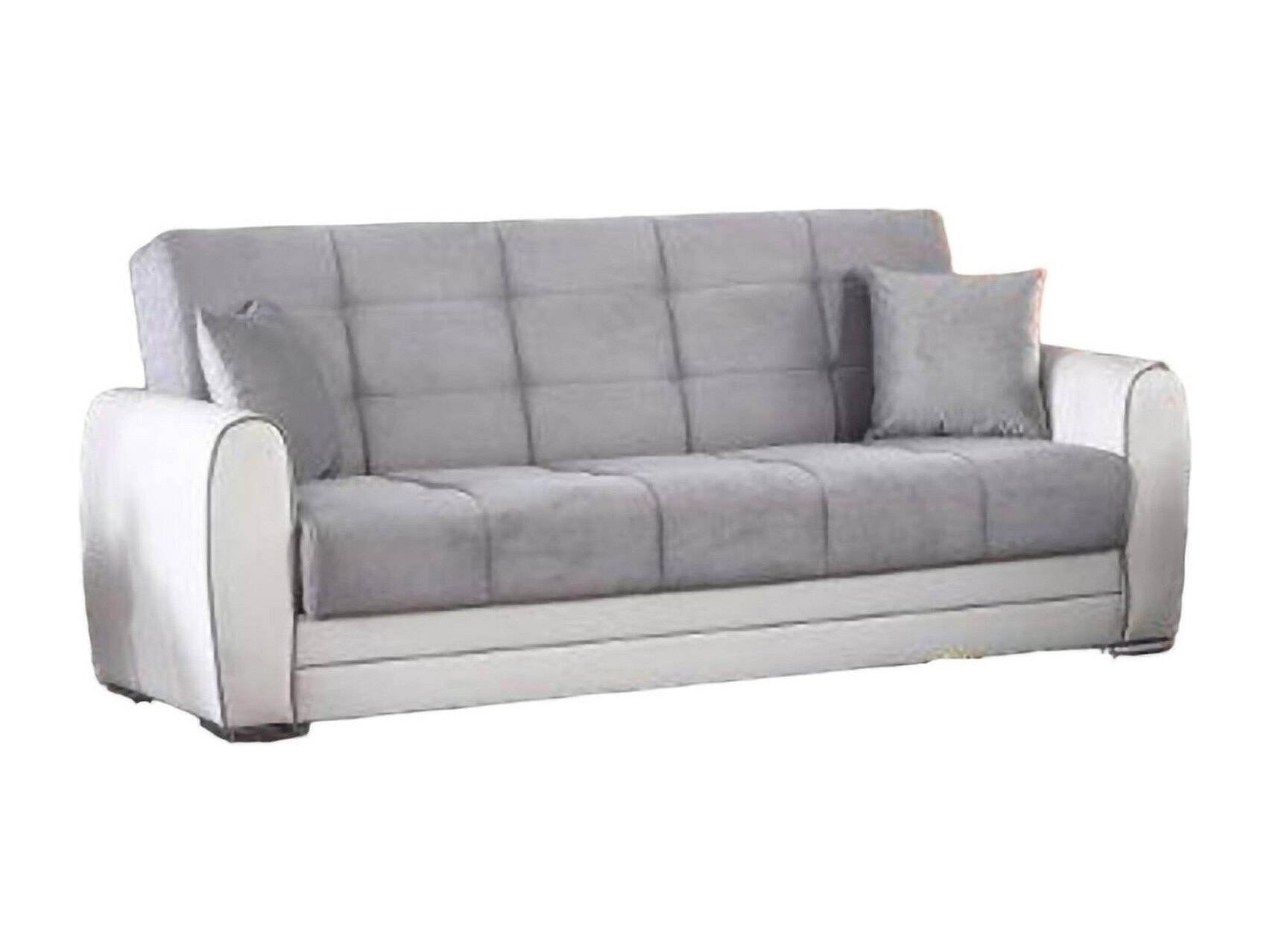 Canapé Ramon, Canapé conteneur 3 places avec 2 coussins inclus, Canapé de salon en tissu rembourré avec ouverture clic-clac, 181x81h88 cm, Gris