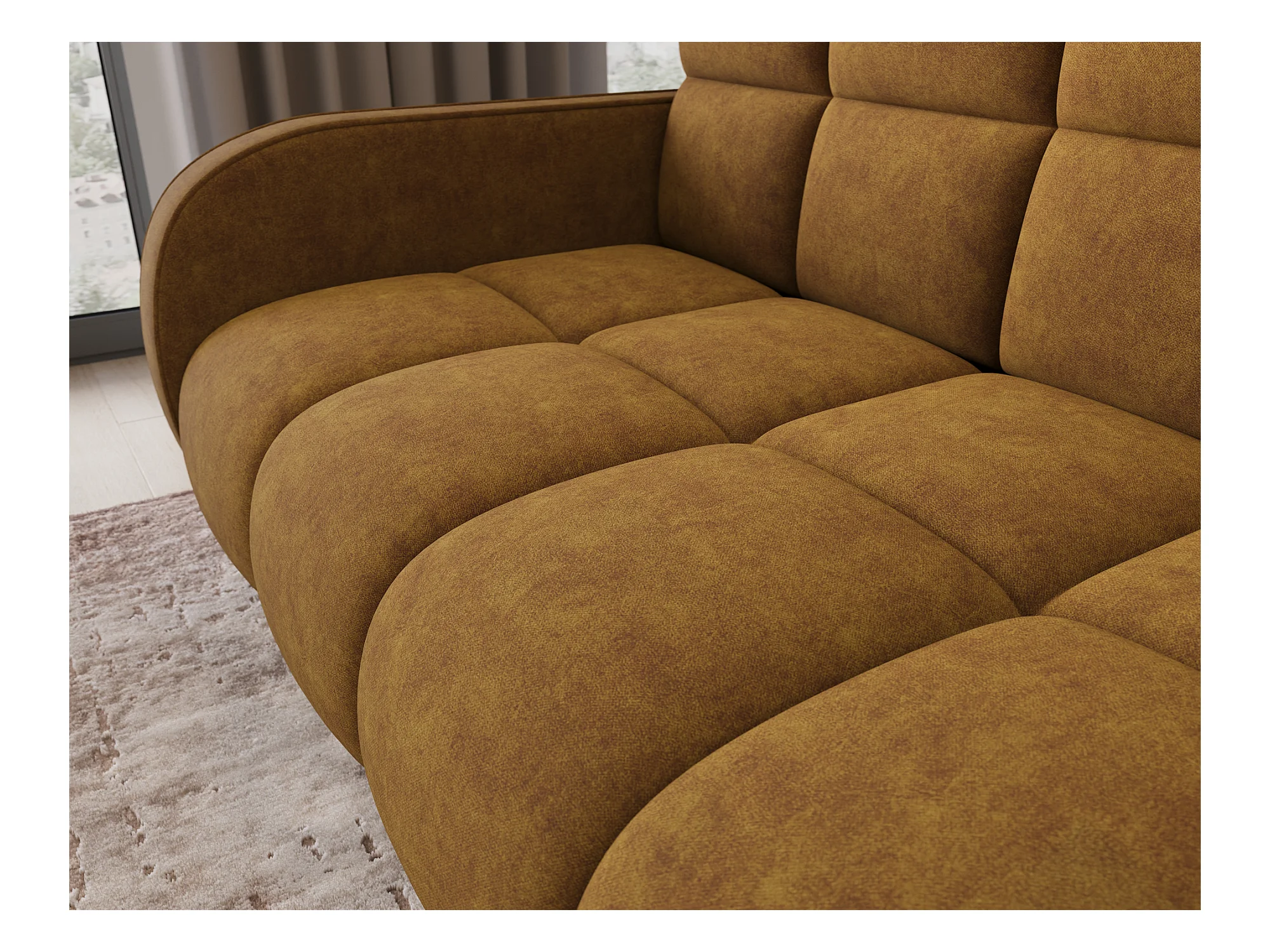 Canapé convertible avec appuis-tête réglables velours jaune moutarde Lozan 261cm