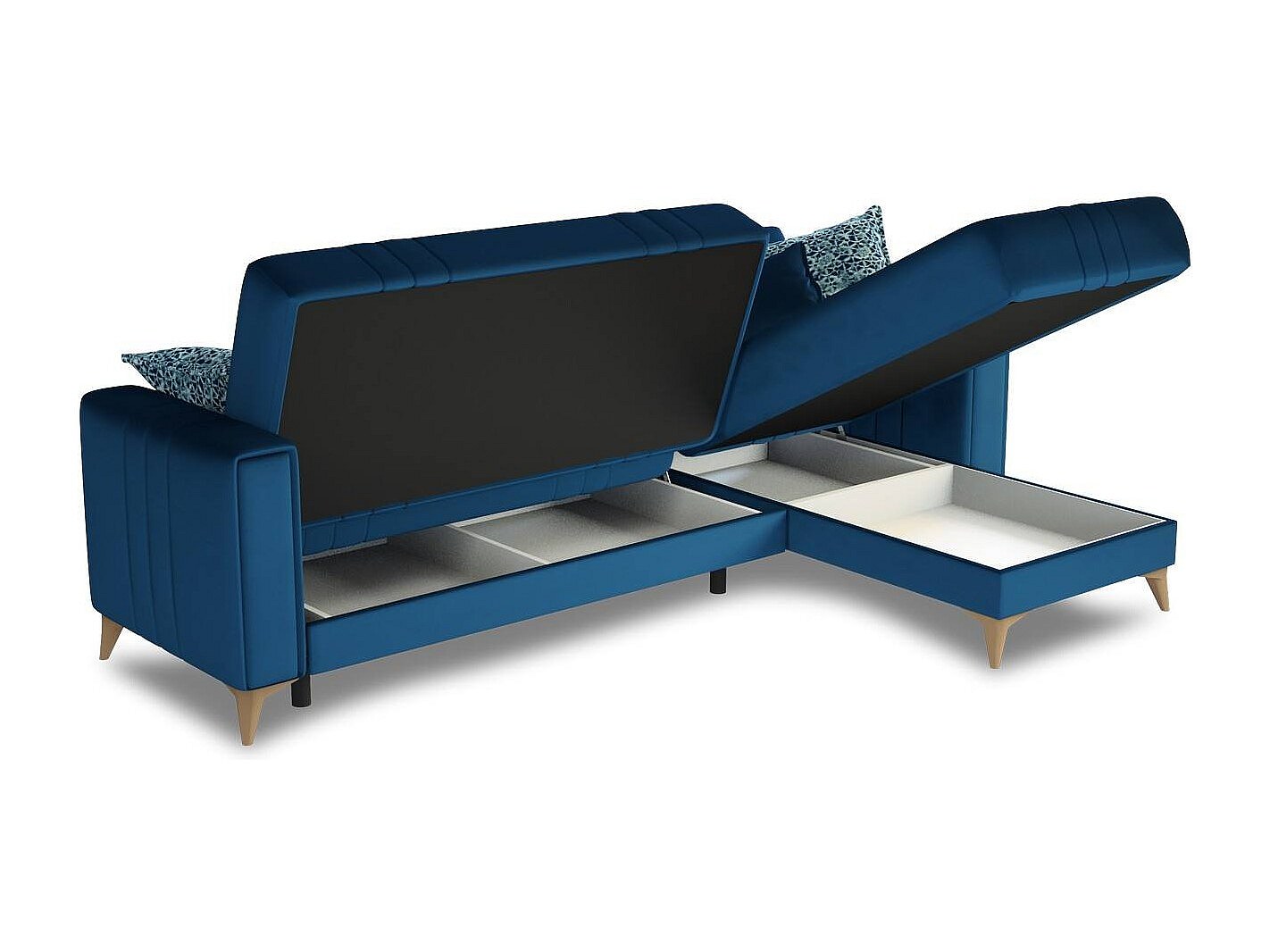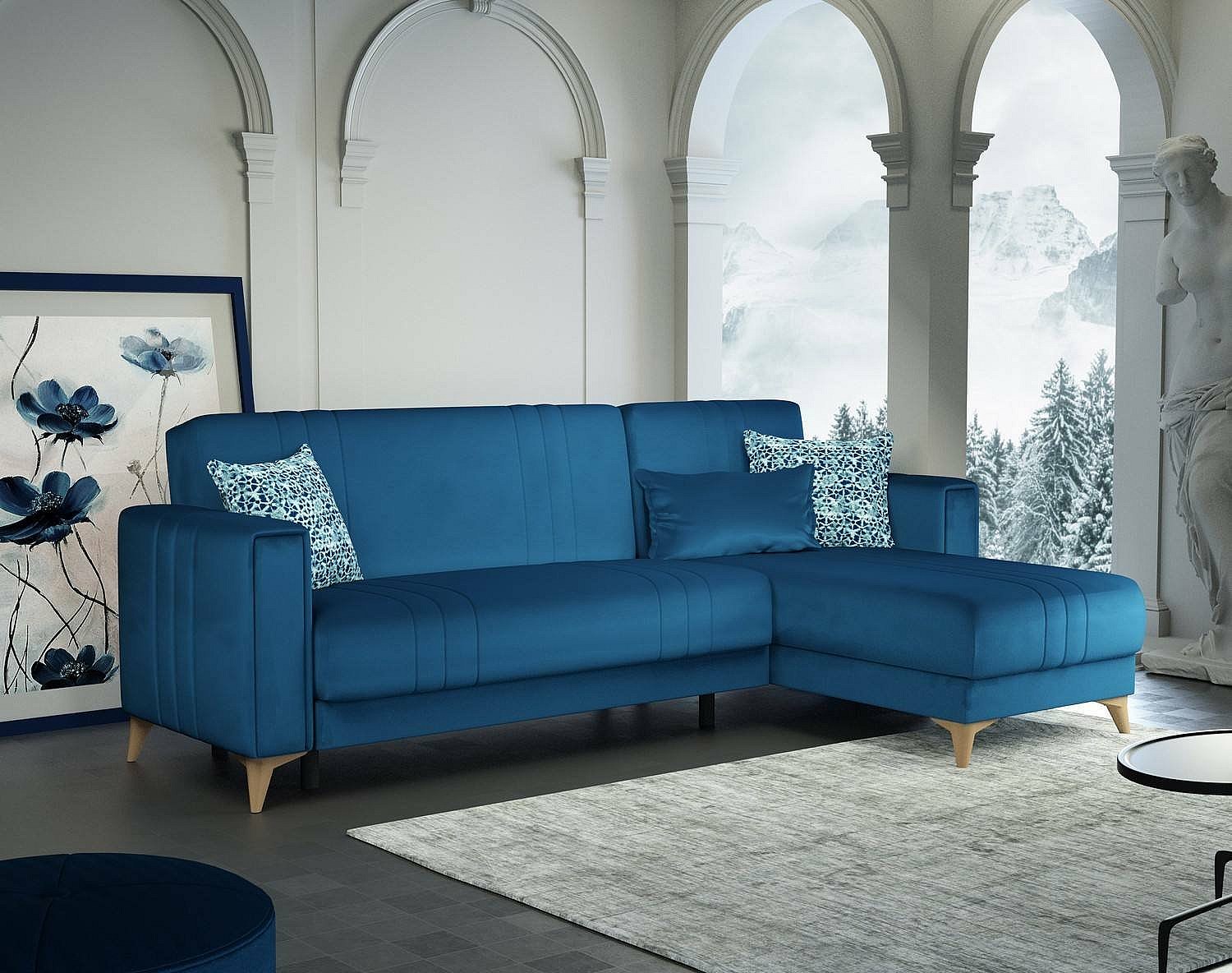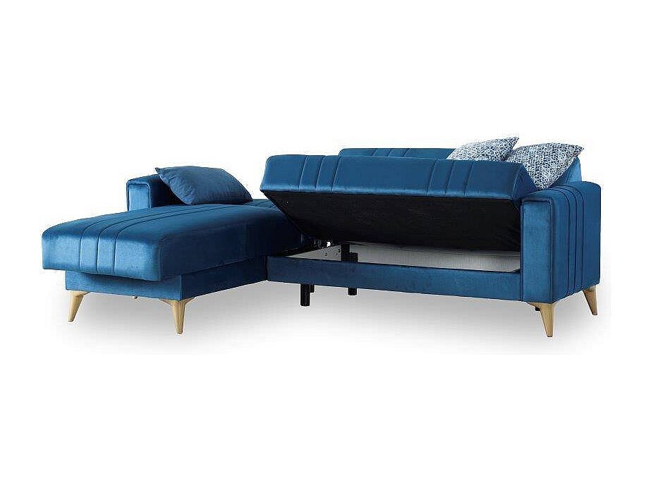 Daalb Canapé-lit, Canapé d'angle, 100% Made in Italy, Canapé avec ouverture pivotante, Péninsule de rangement gauche, avec accoudoirs fins, 260x95h90 cm, Bleu