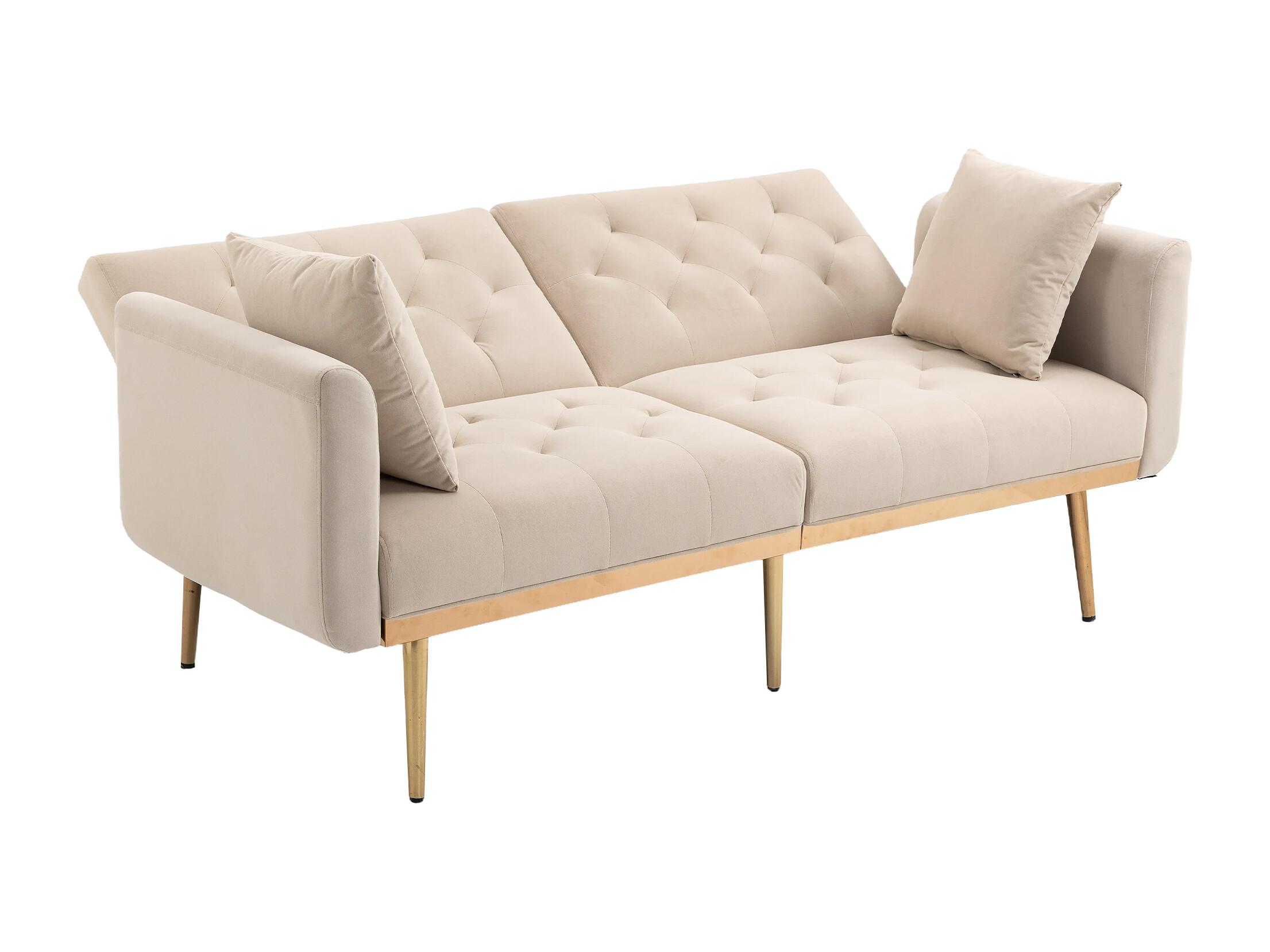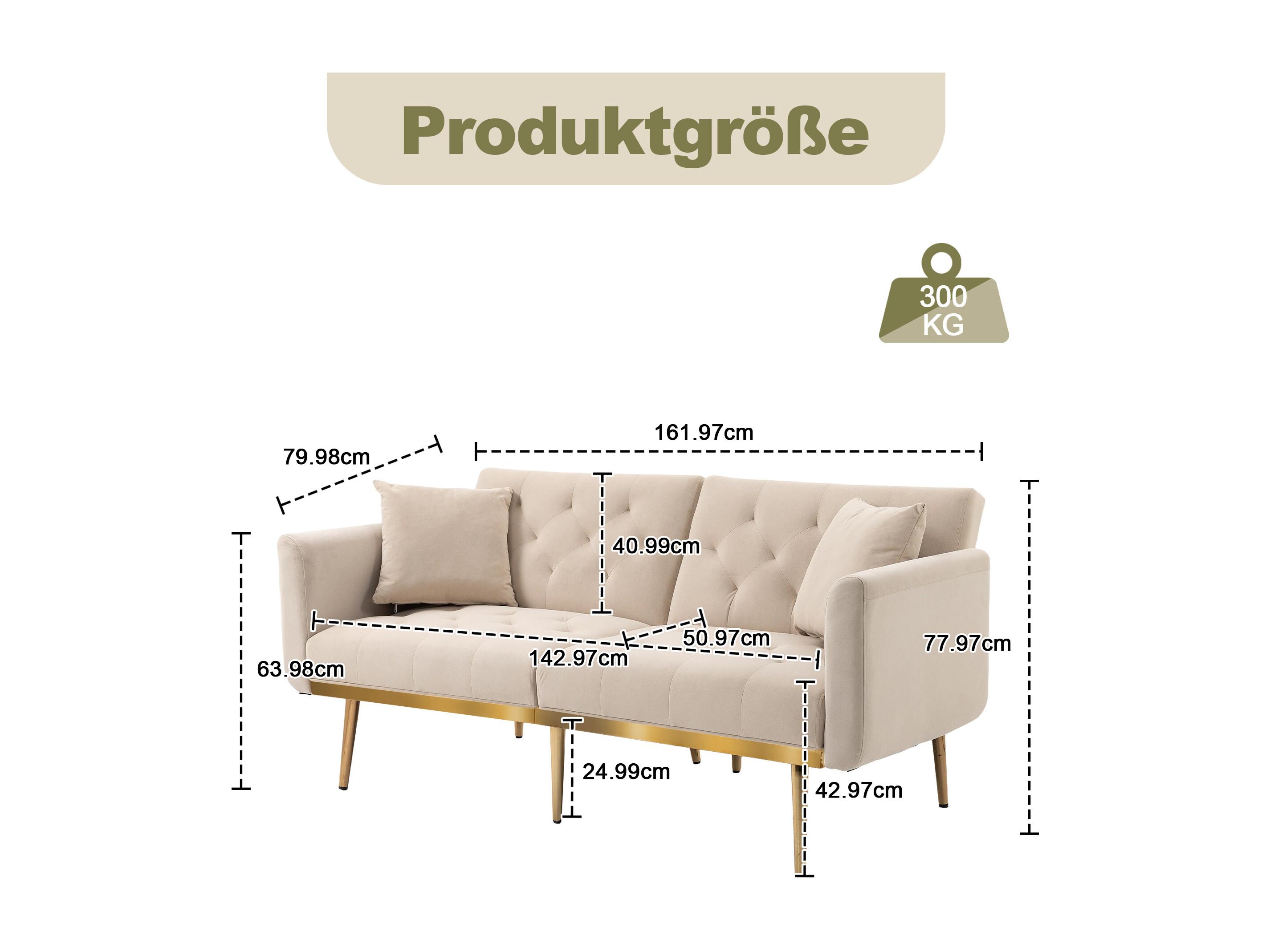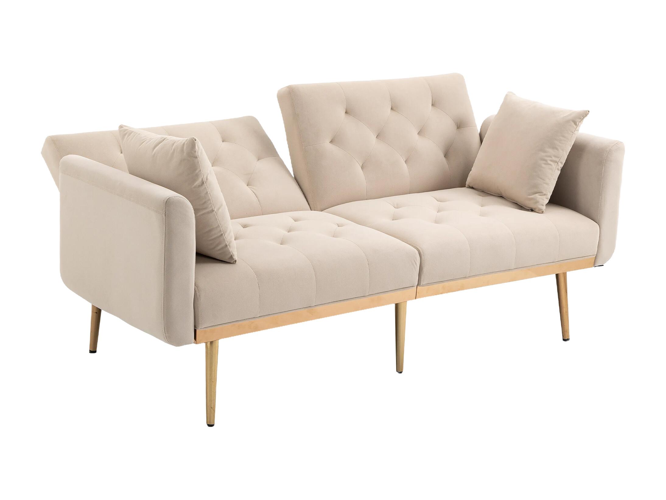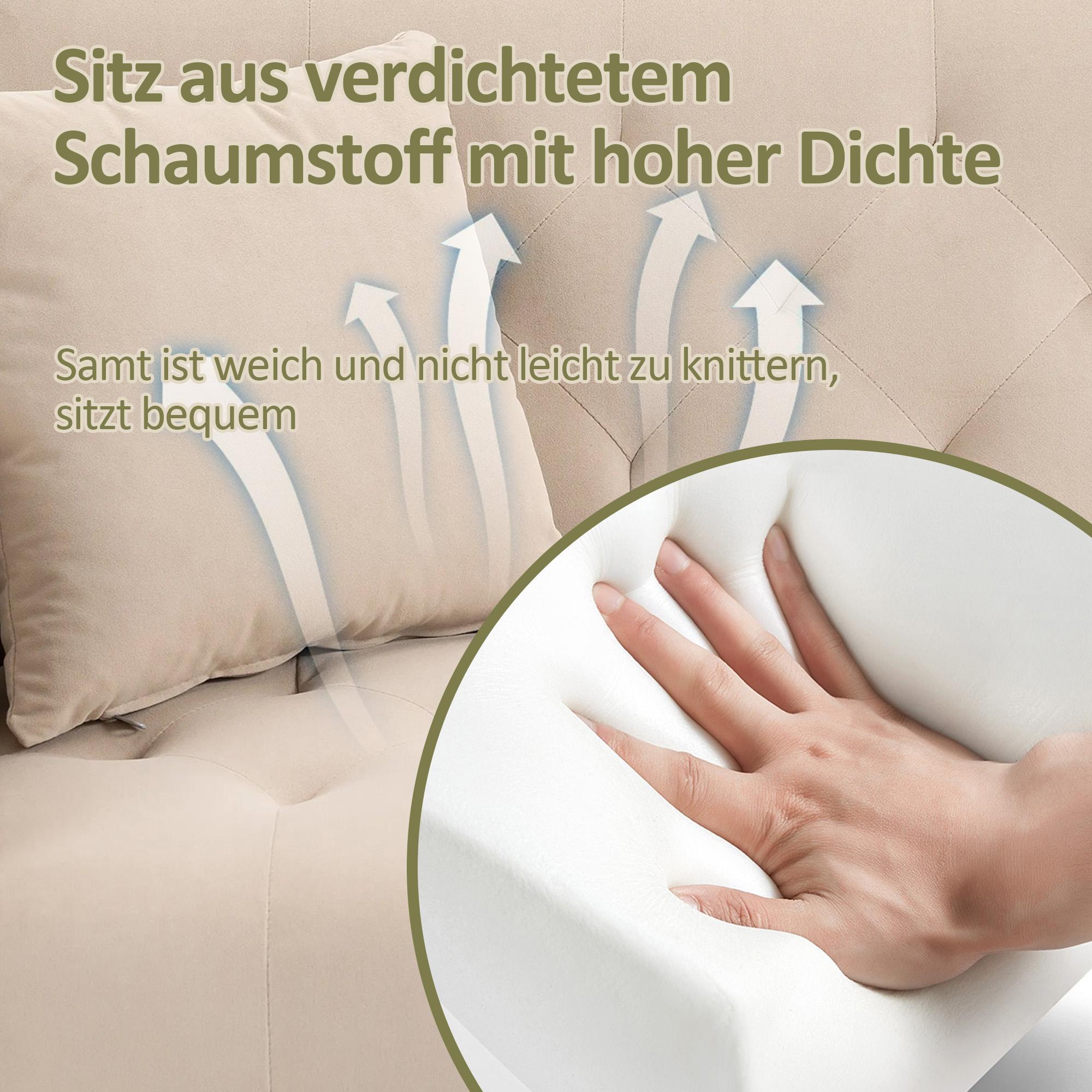Canapé moderne 2 places avec coussins, dossier réglable, velours, beige, (161.97x79.98x77.97 cm)