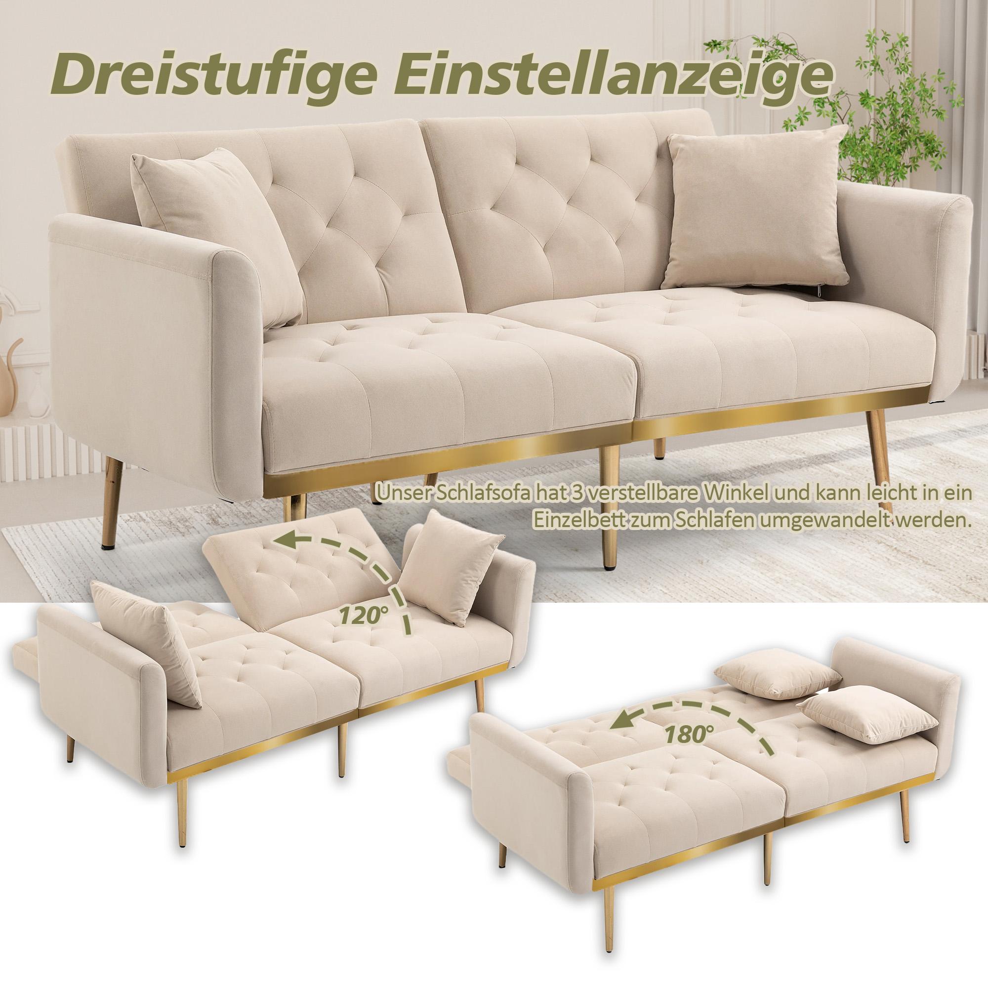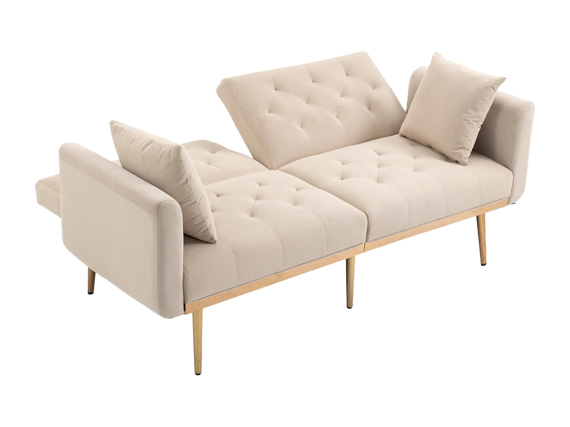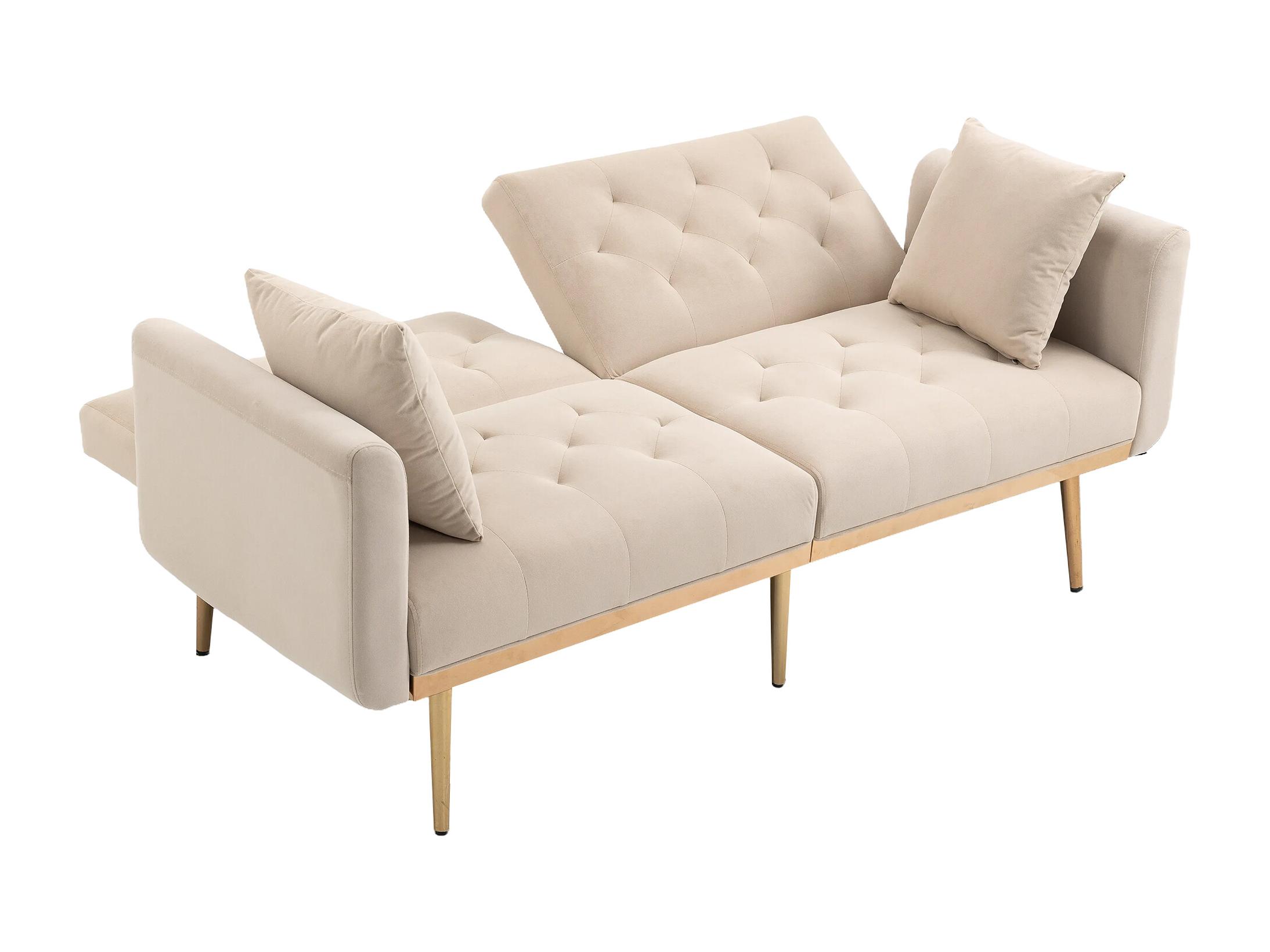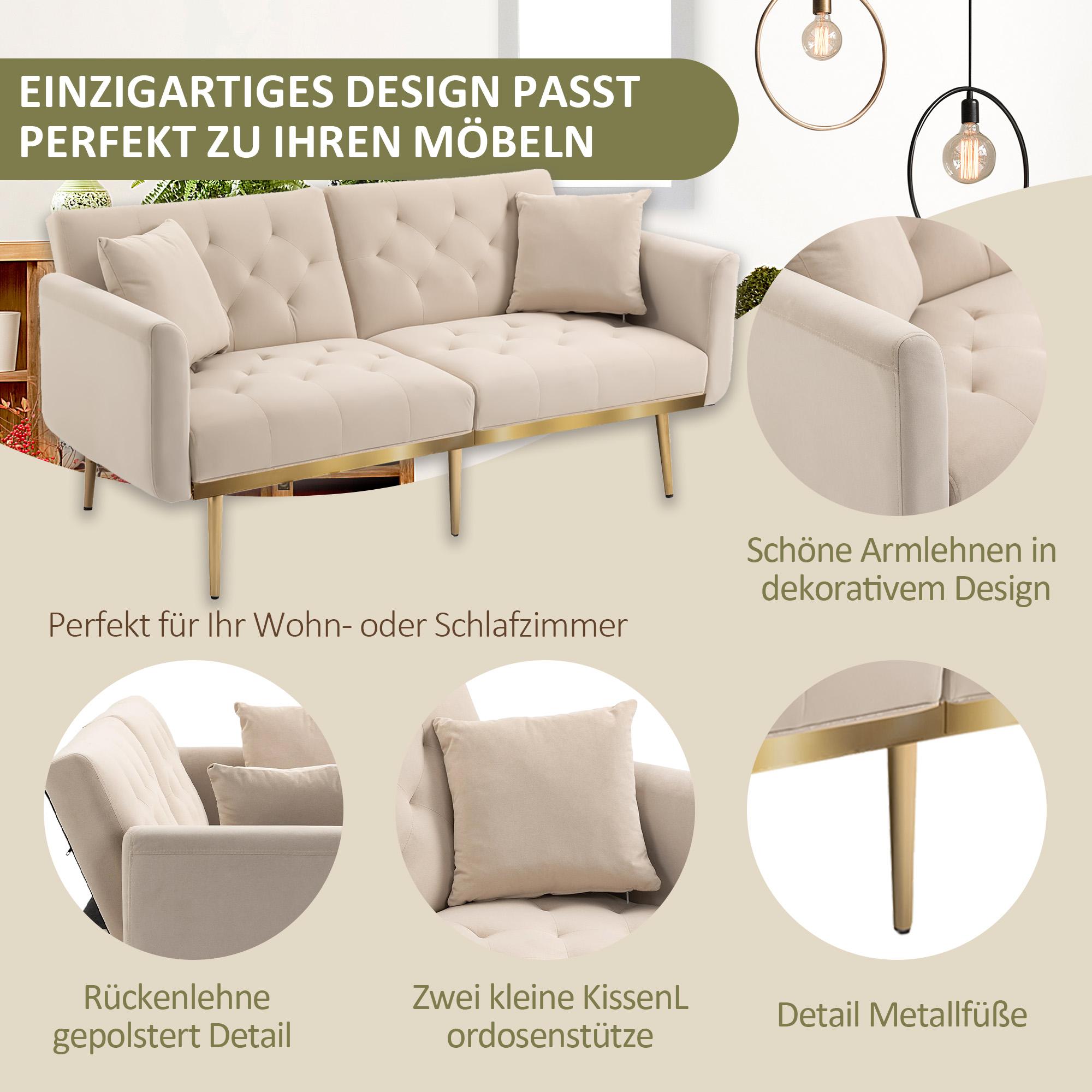 Canapé moderne 2 places avec coussins, dossier réglable, velours, beige, (161.97x79.98x77.97 cm)