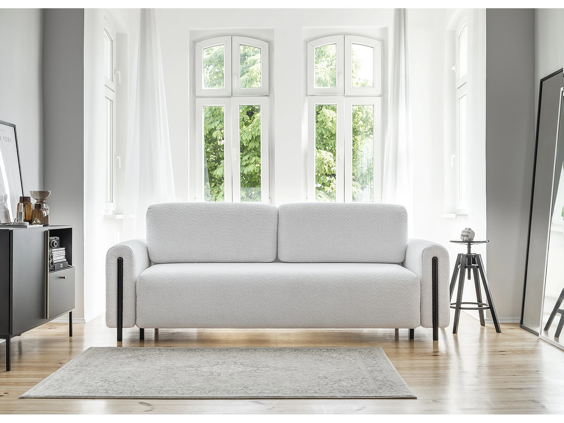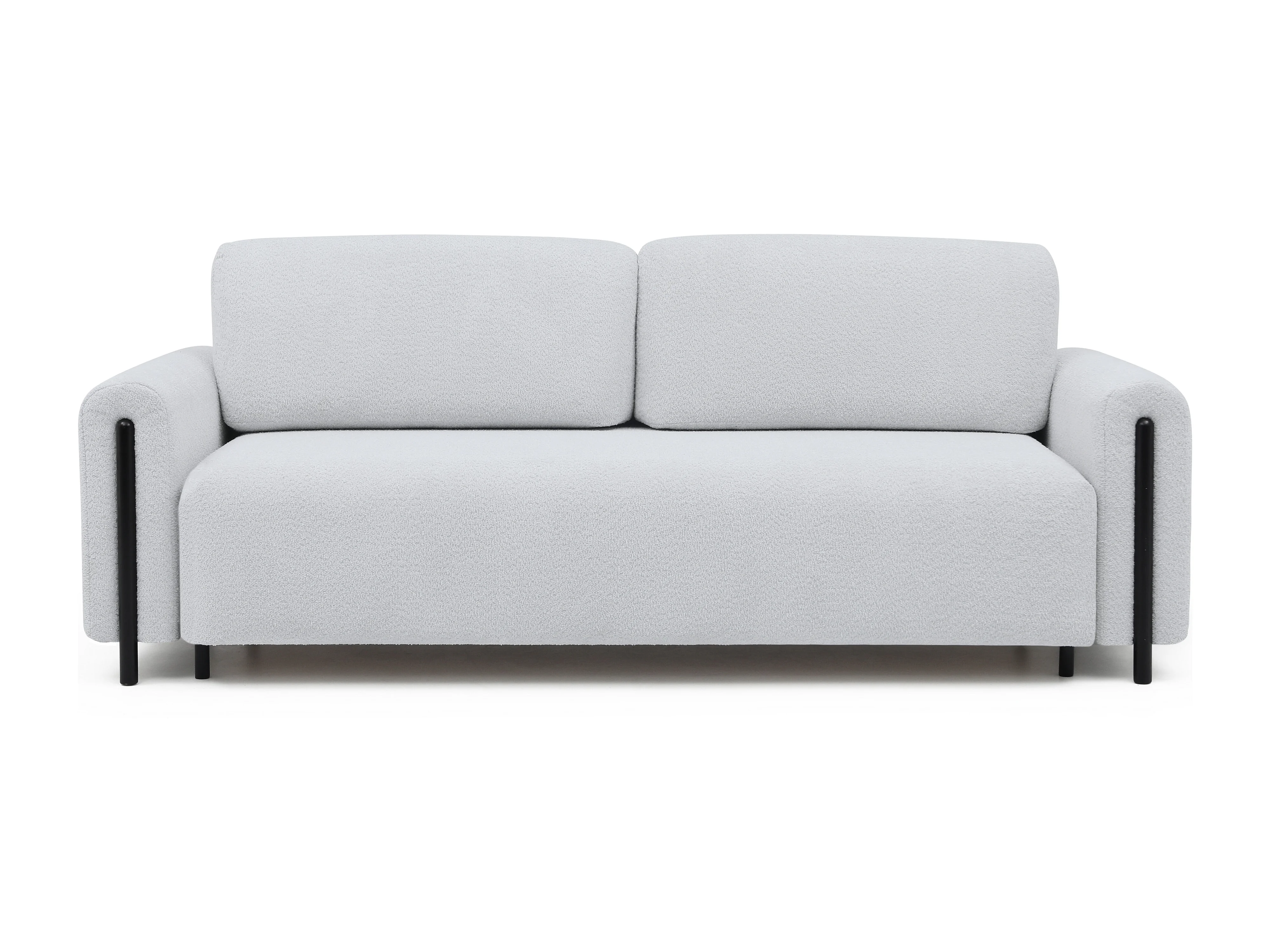 Canapé convertible 4 places en tissu bouclette DOVA - Pieds bois massif noir-Gris souris