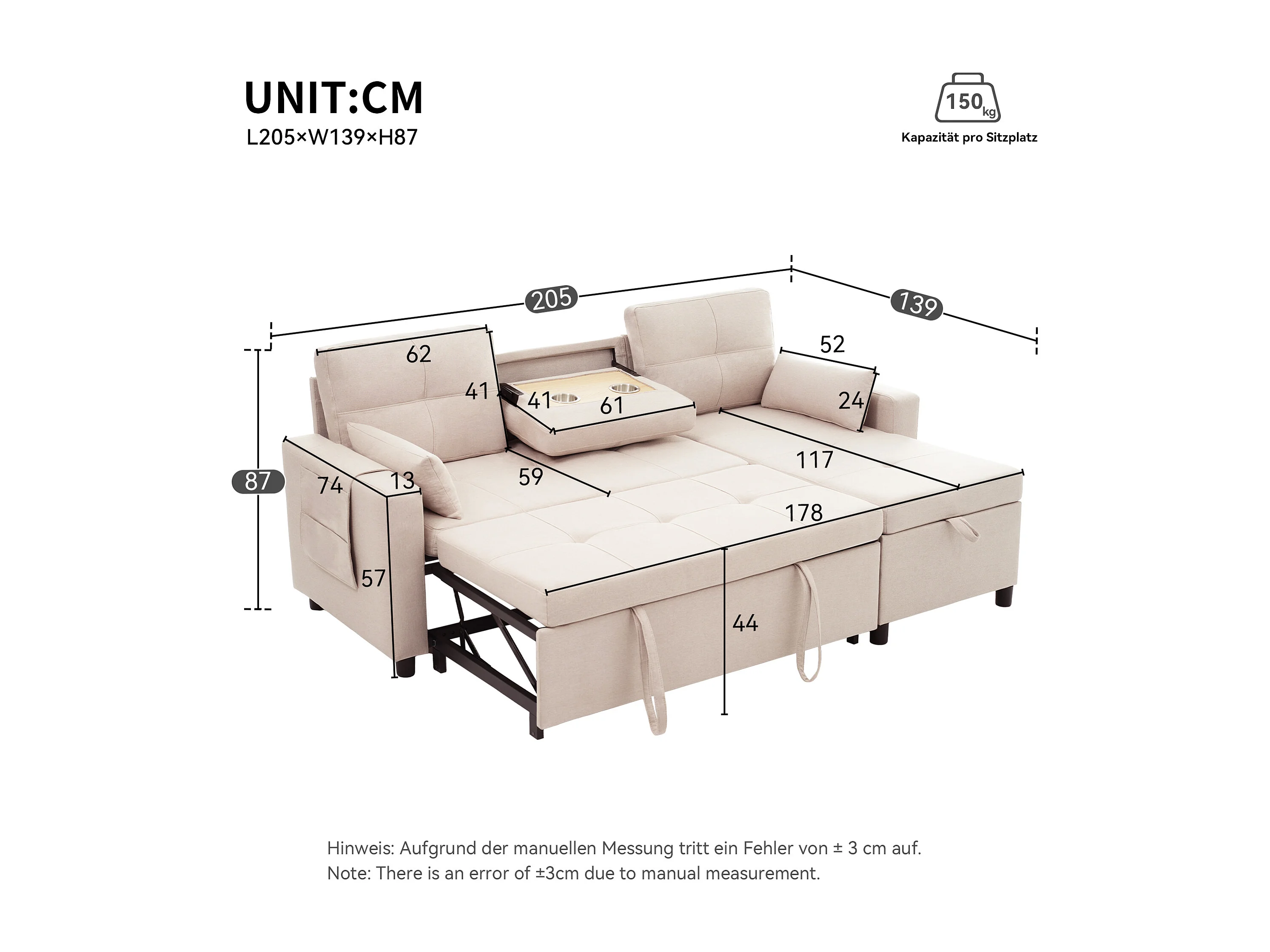 Canapé moderne en L - Canapé-lit modulable - Fonction couchage - Avec rangement - Avec porte-gobelets - Beige