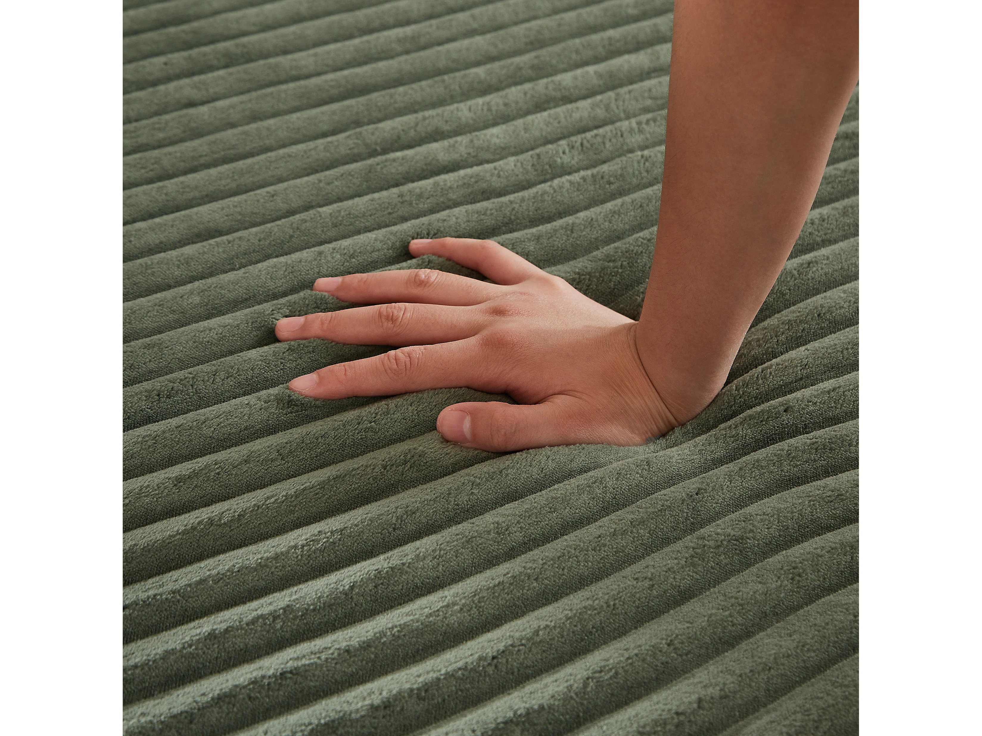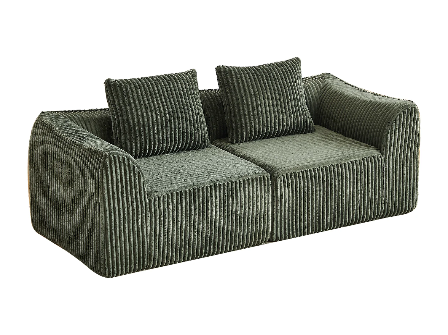 Canapé modulable 2 places en tissu velours côtelé vert avec 2 coussins