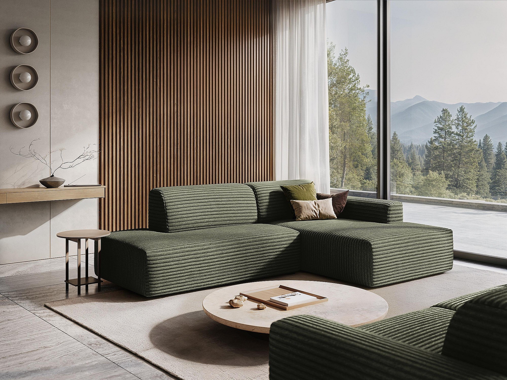 Canapé modulable 2 places en velours côtelé - olive - KELI