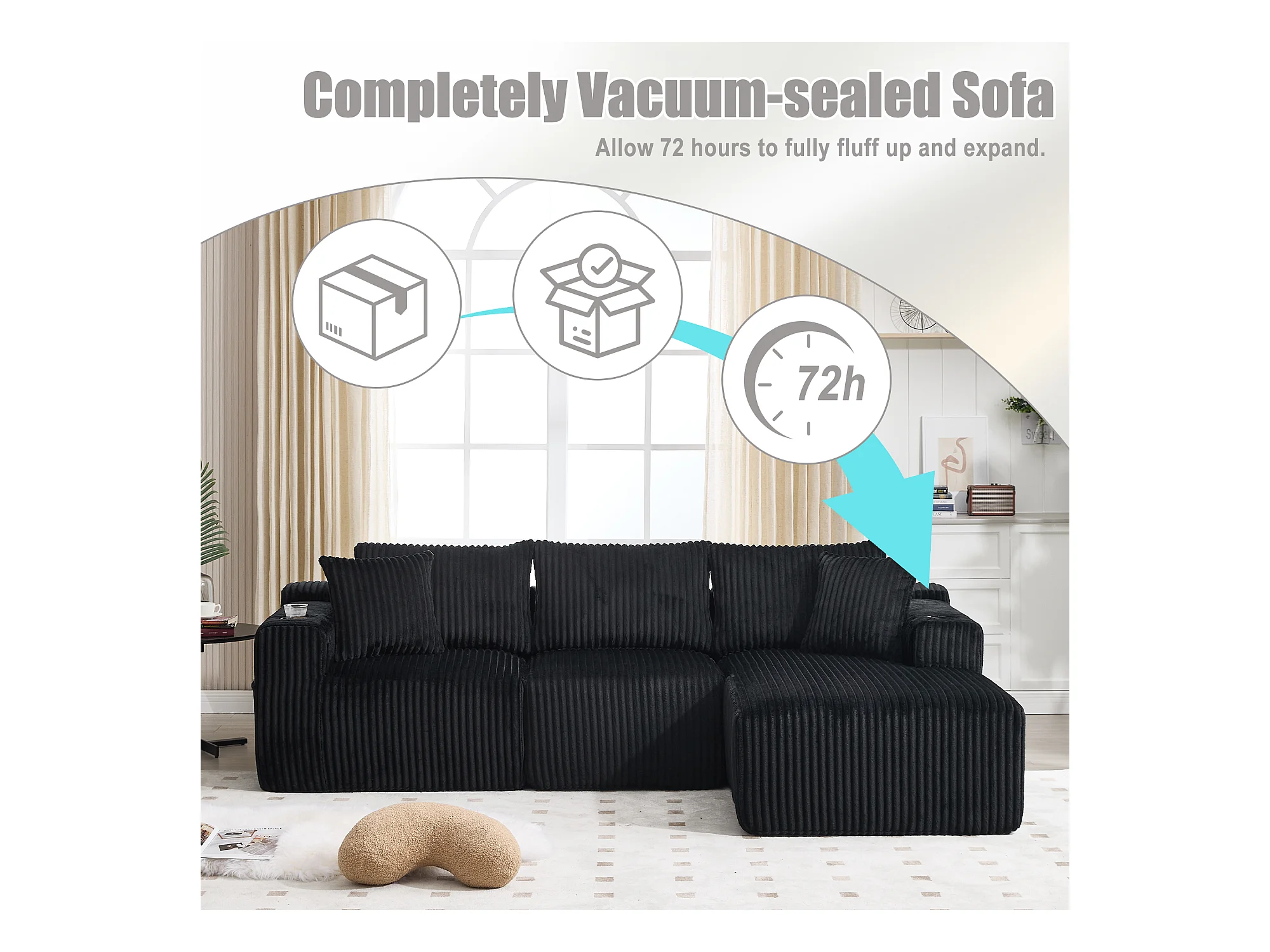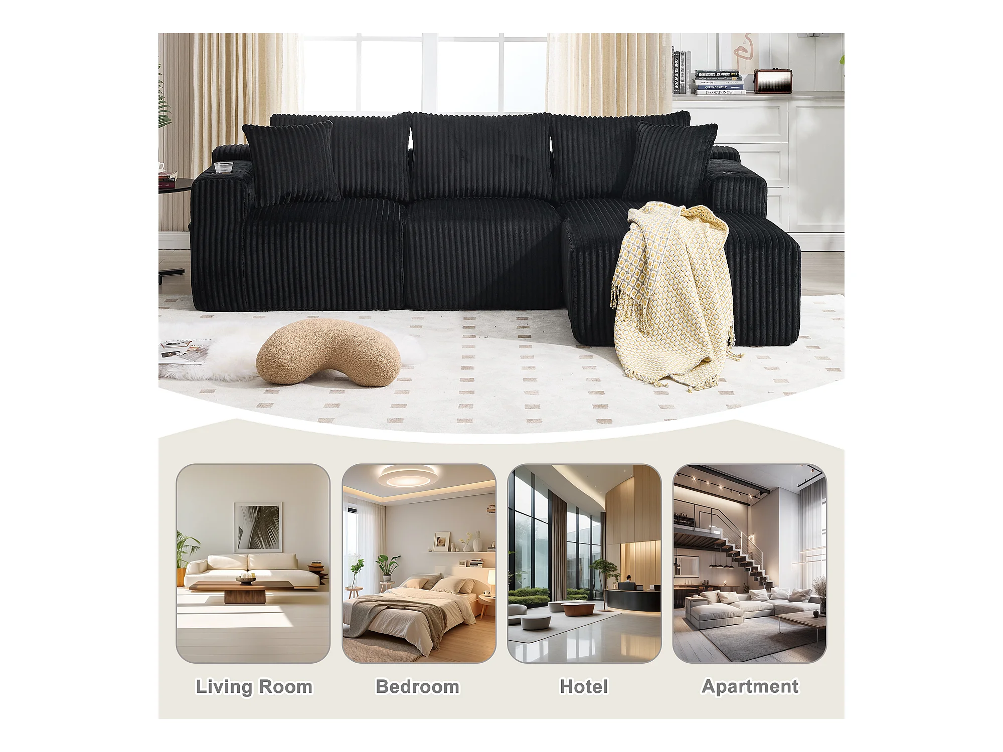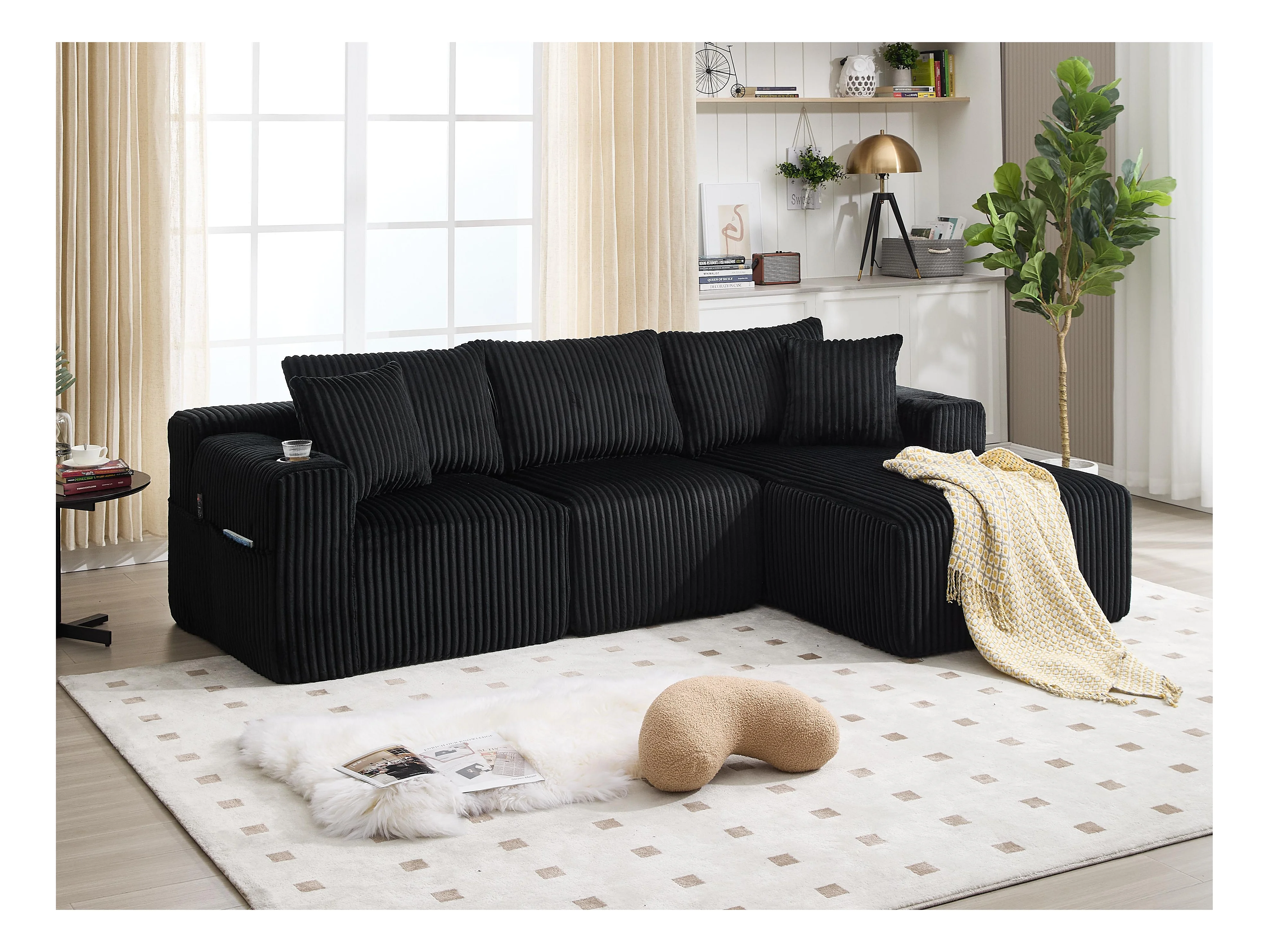 Canapé modulable 3 places - 5 coussins inclus - Porte-gobelets et poches latérales - Convertible en canapé d'angle - Noir - Idéal salon et studio