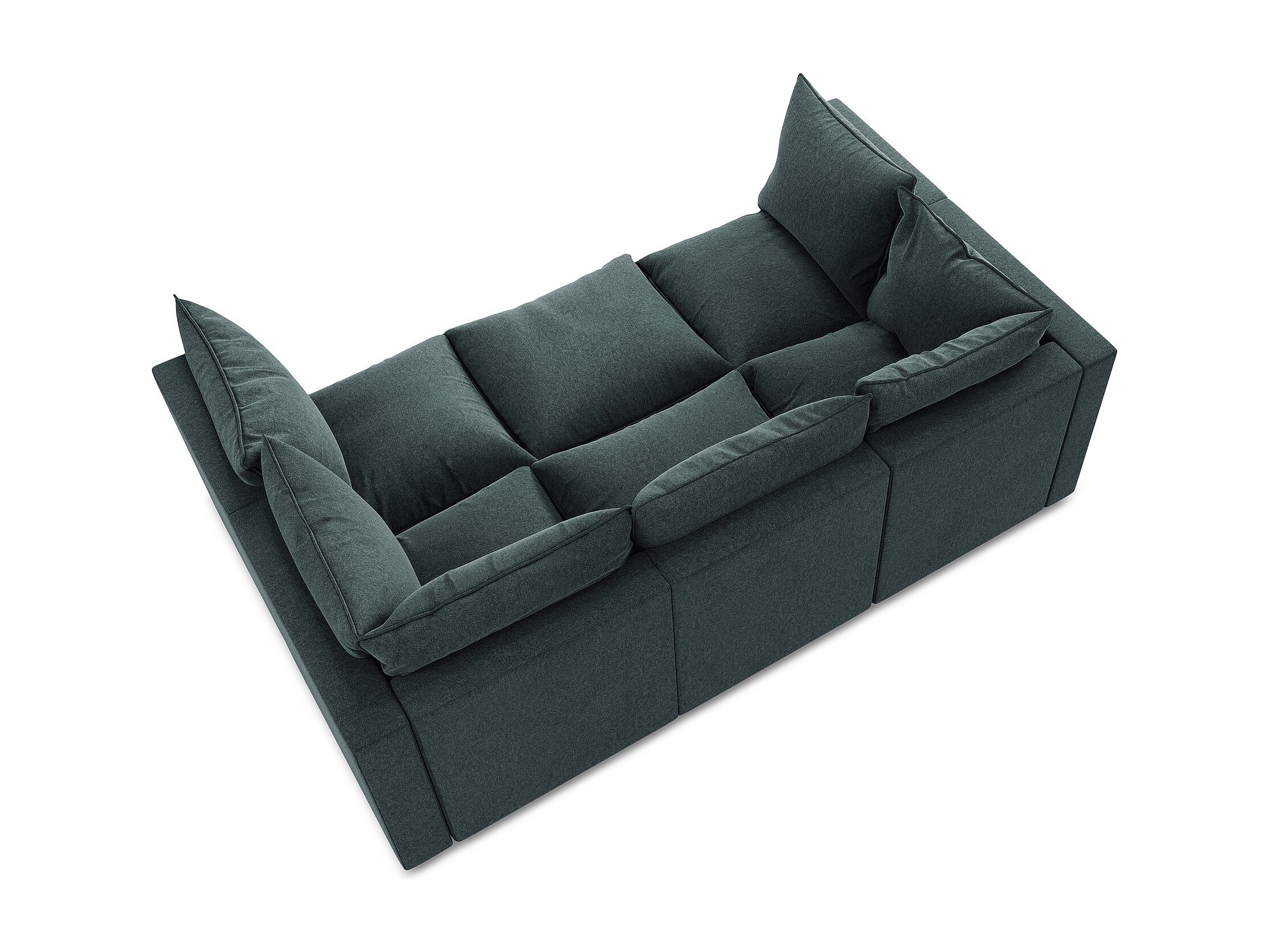 Canapé 3 places contemporain cuir capitonné et bois noyer Kila-Couleur Aqua 10 Orange