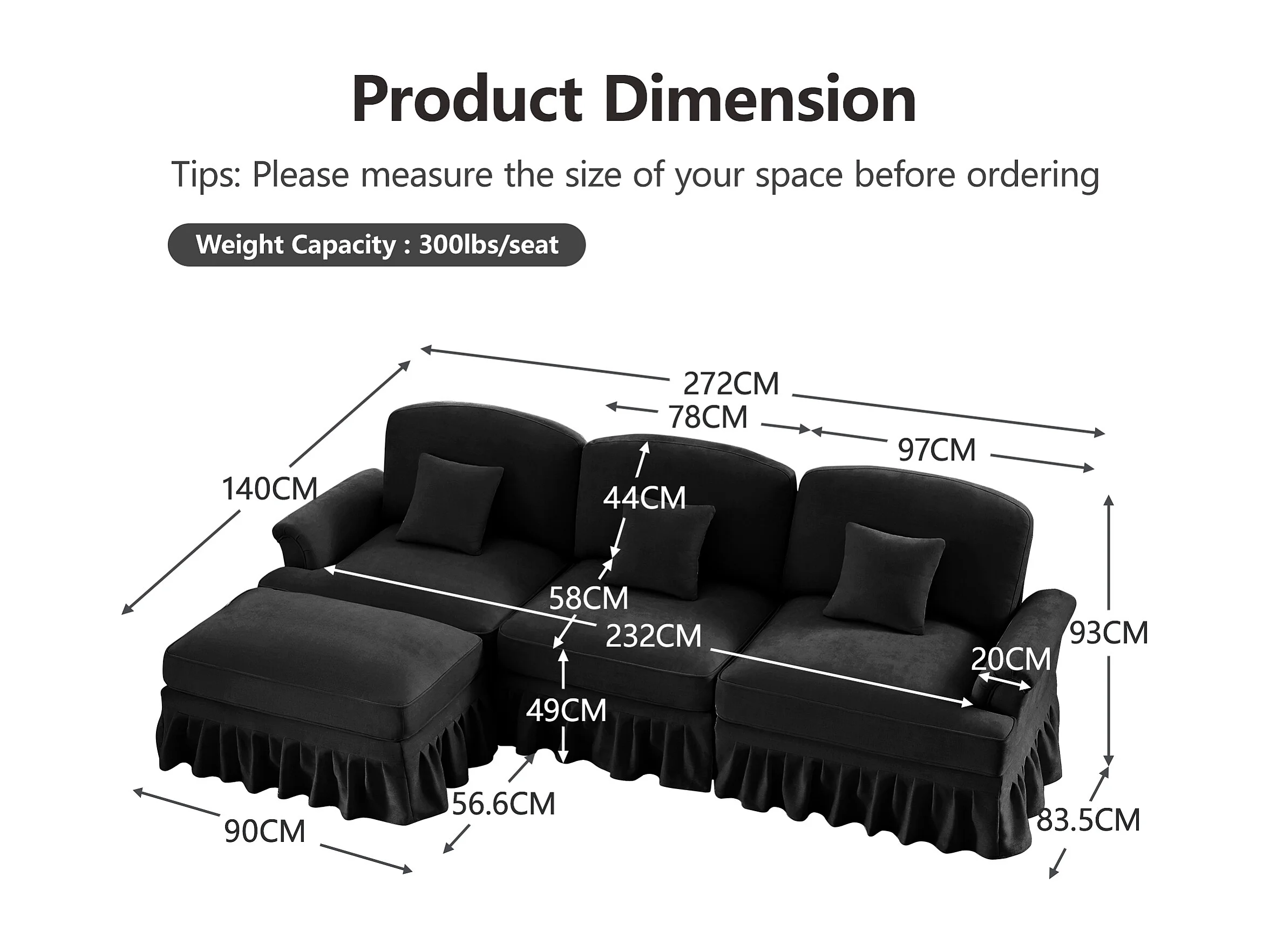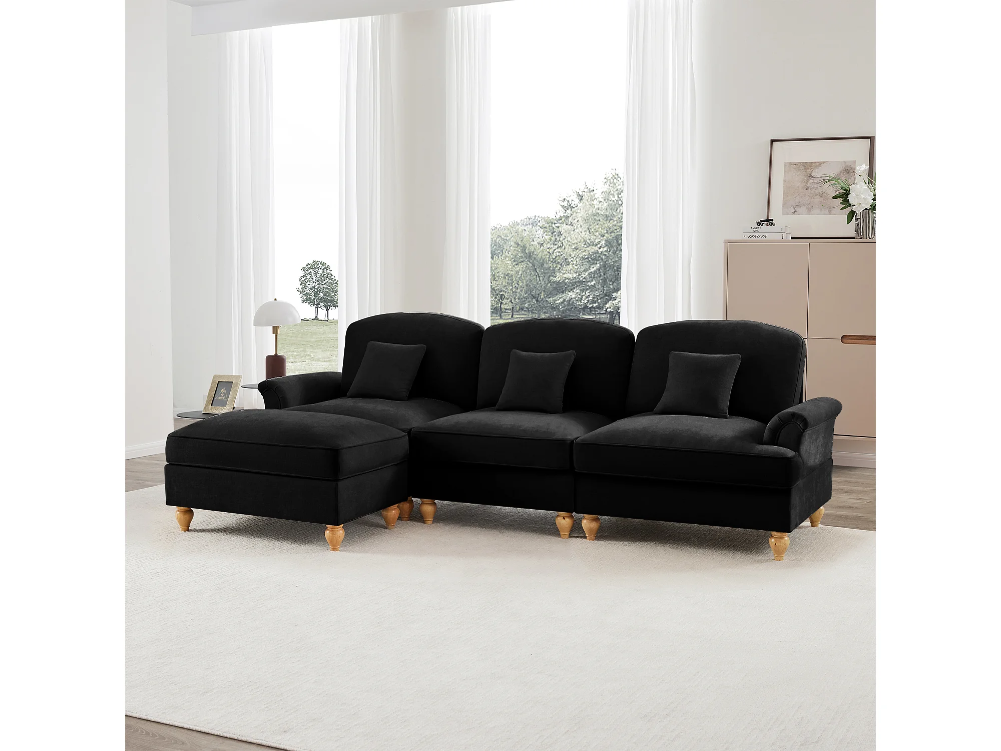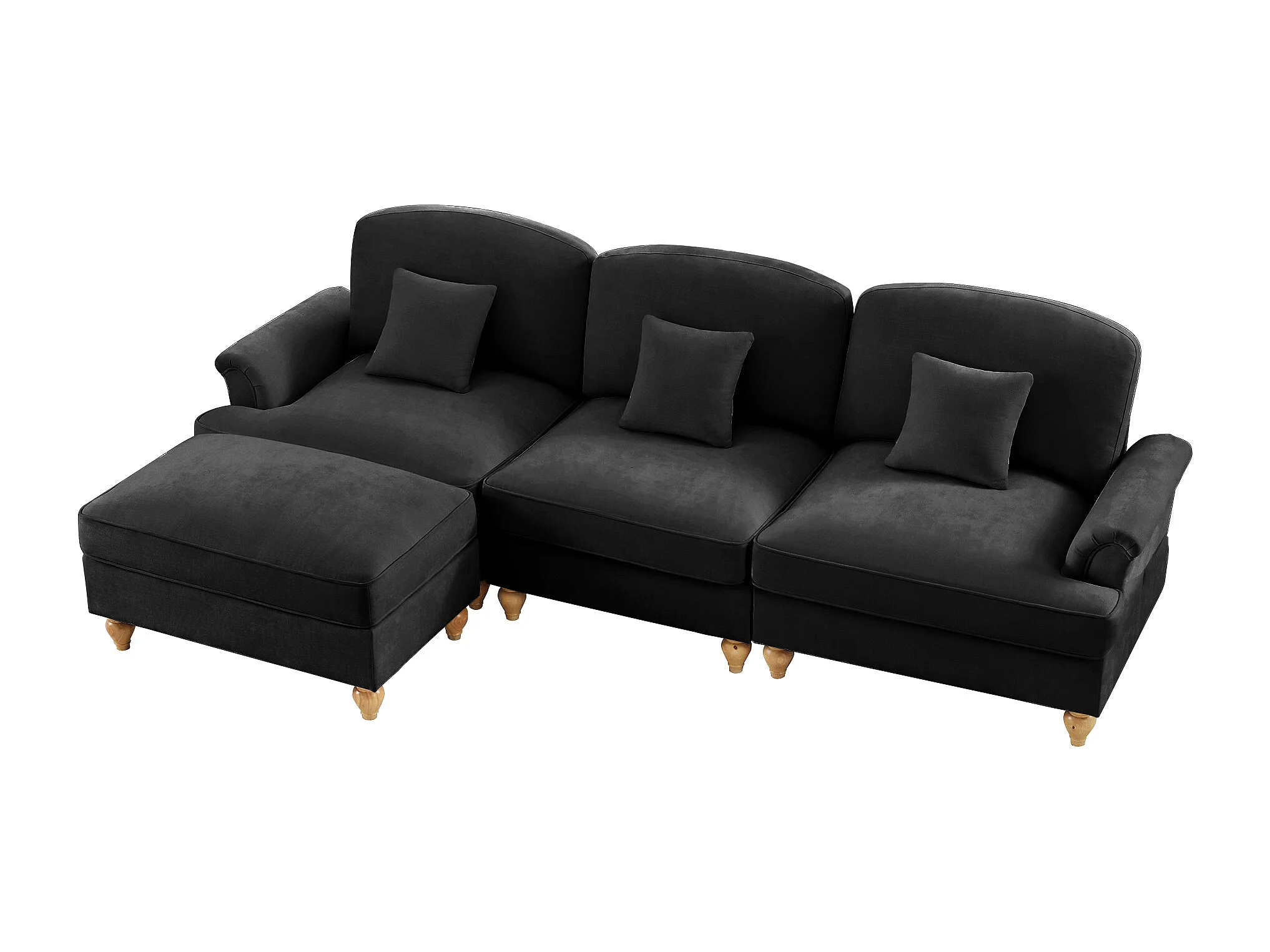 Canapé Modulable 3 places Style Mid Century Fonction convertible Chenille Noir