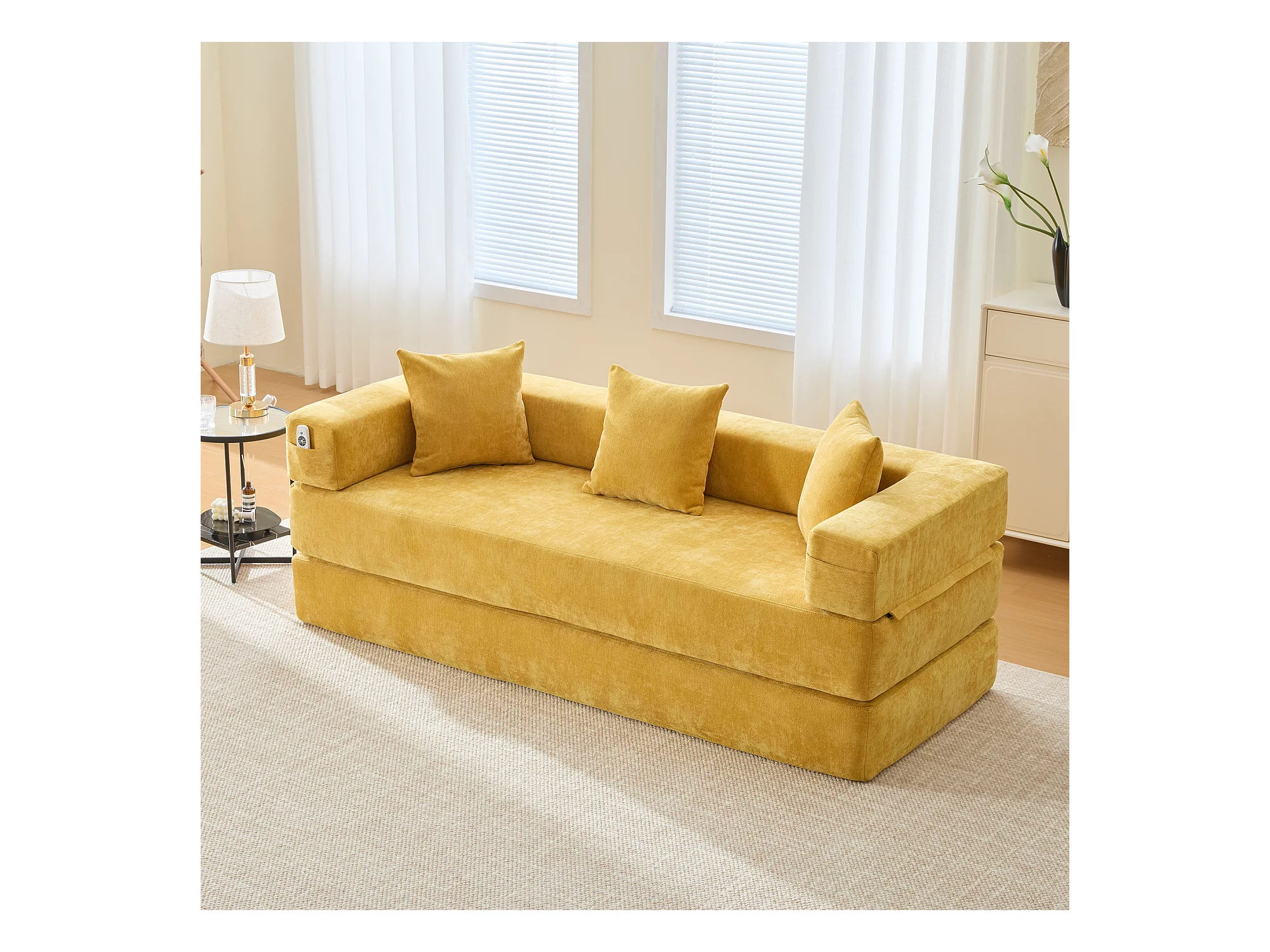 Canapé-lit à 2 places avec deux oreillers jaune tissu