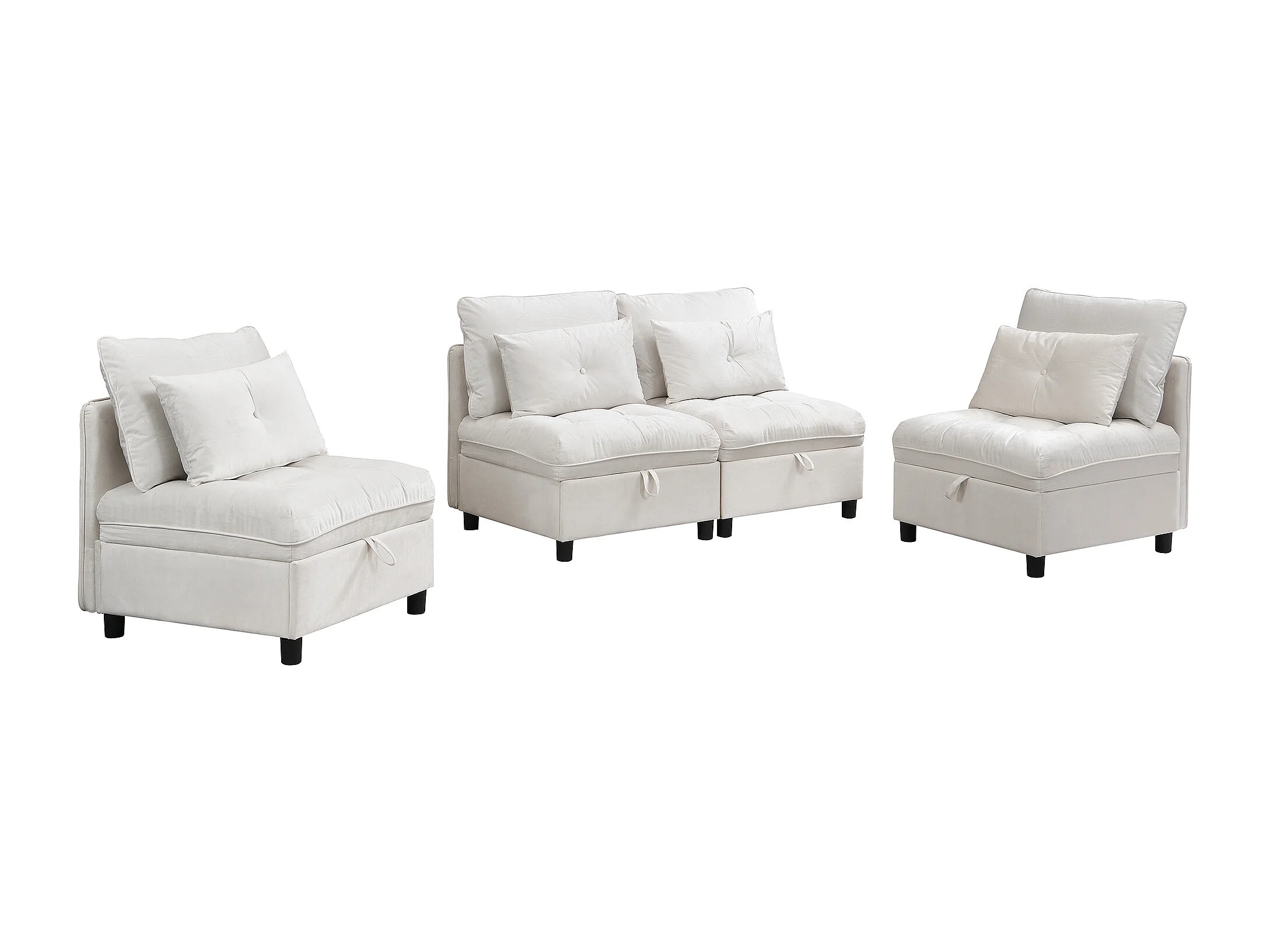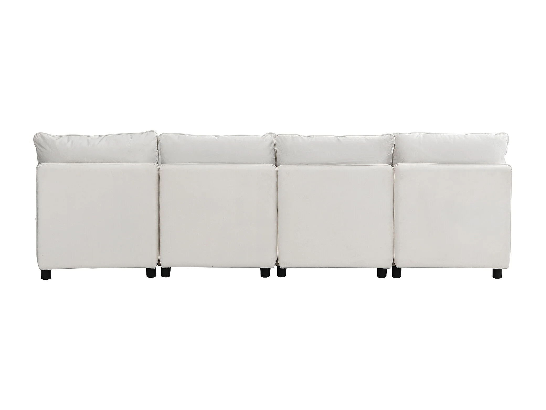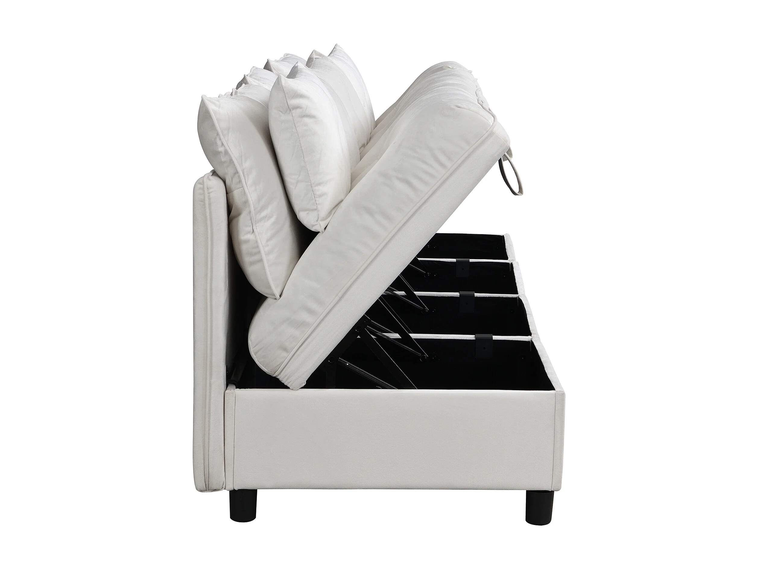 Canapé modulaire 4 places, convertible en couchage, rangement sous assise, mousse, beige