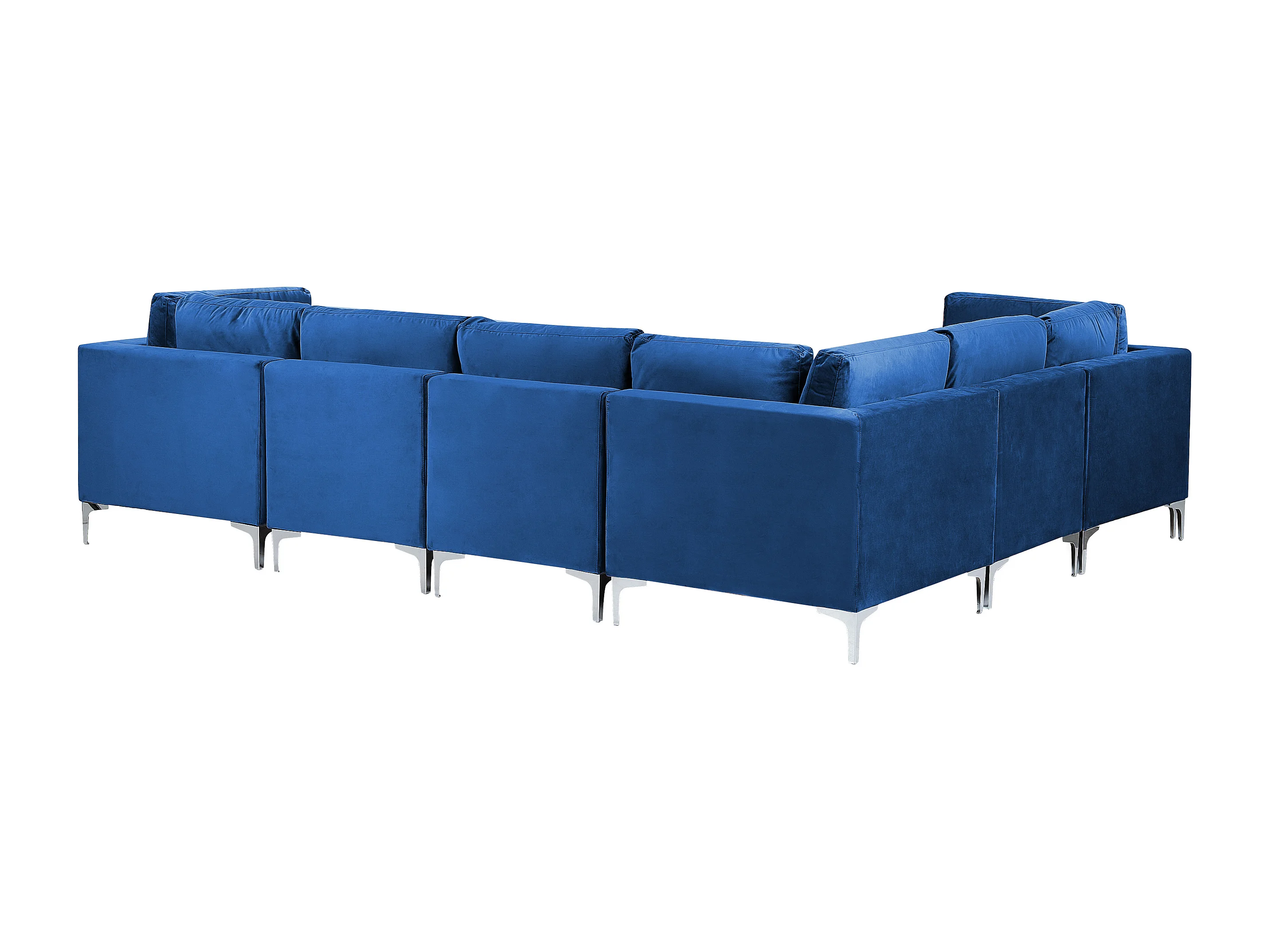 Canapé Modulable Droit Bleu Marine et Argenté en Velours 6 Places Glamour Evja