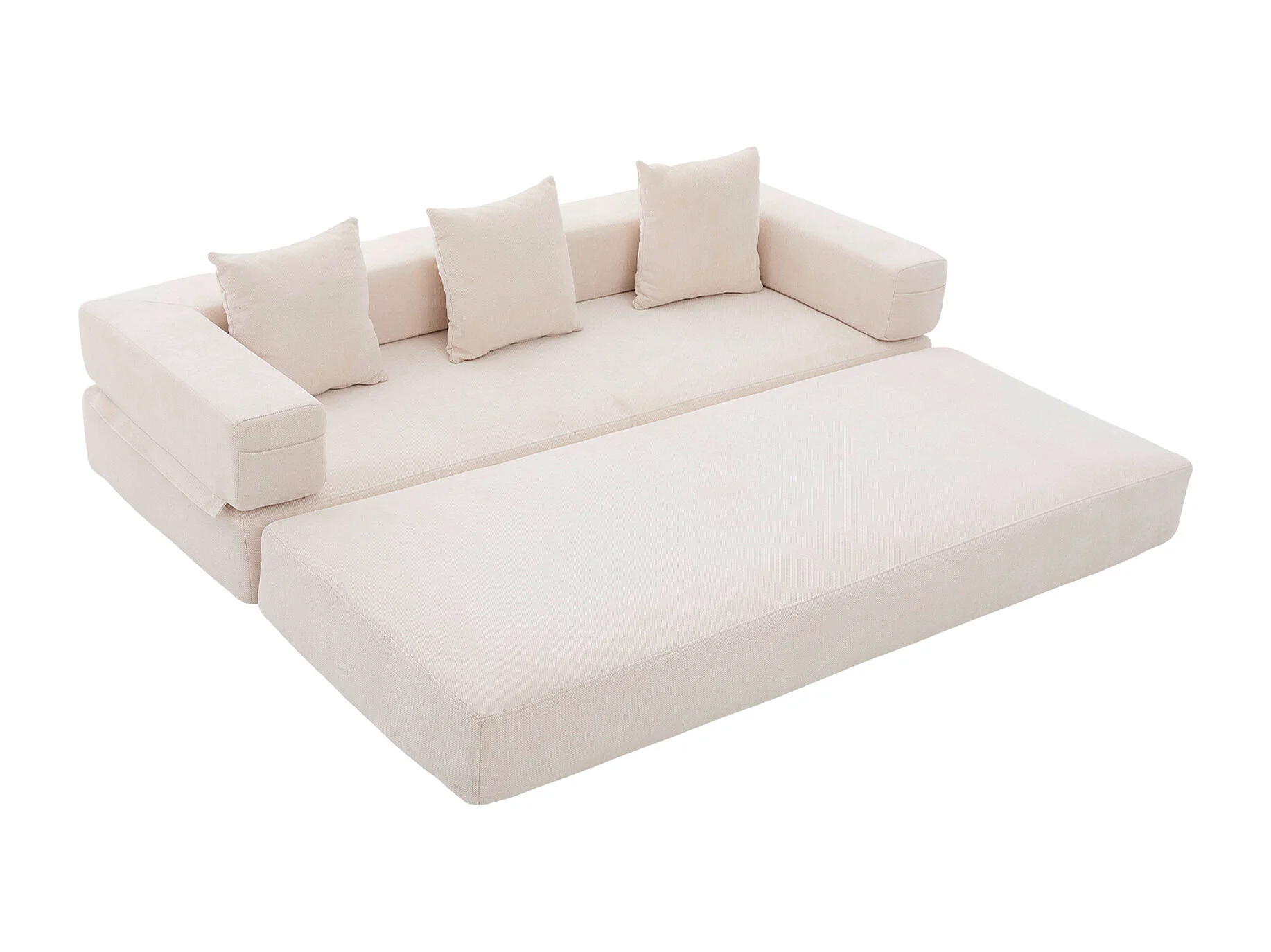 Kaleido 1.0 - Canapé modulable en chenille beige - Canapé convertible en plusieurs formes - 3 coussins inclus - Parfait pour salon, chambre et bureau