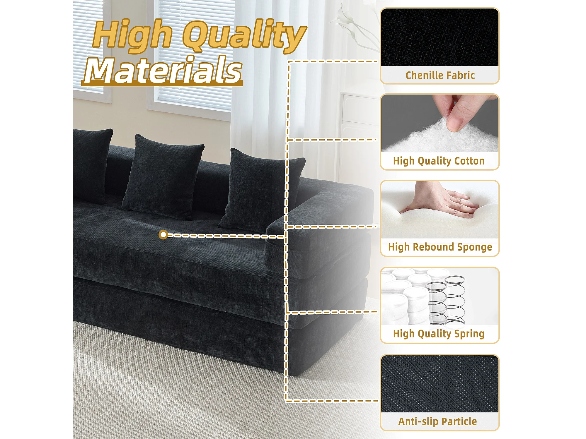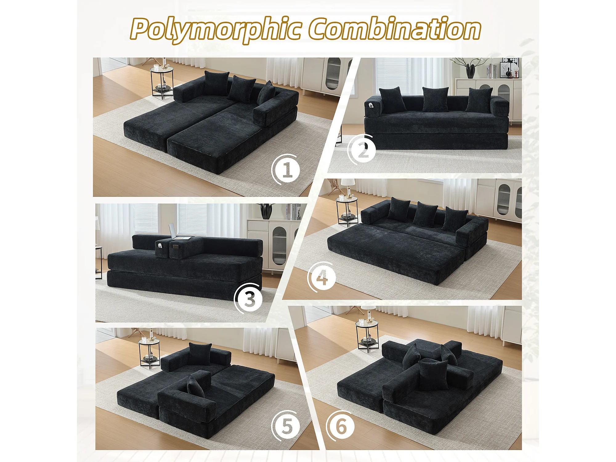Kaleido 1.0 - Canapé modulable en chenille noir - Canapé convertible en plusieurs formes - 3 coussins inclus - Parfait pour salon, chambre et bureau