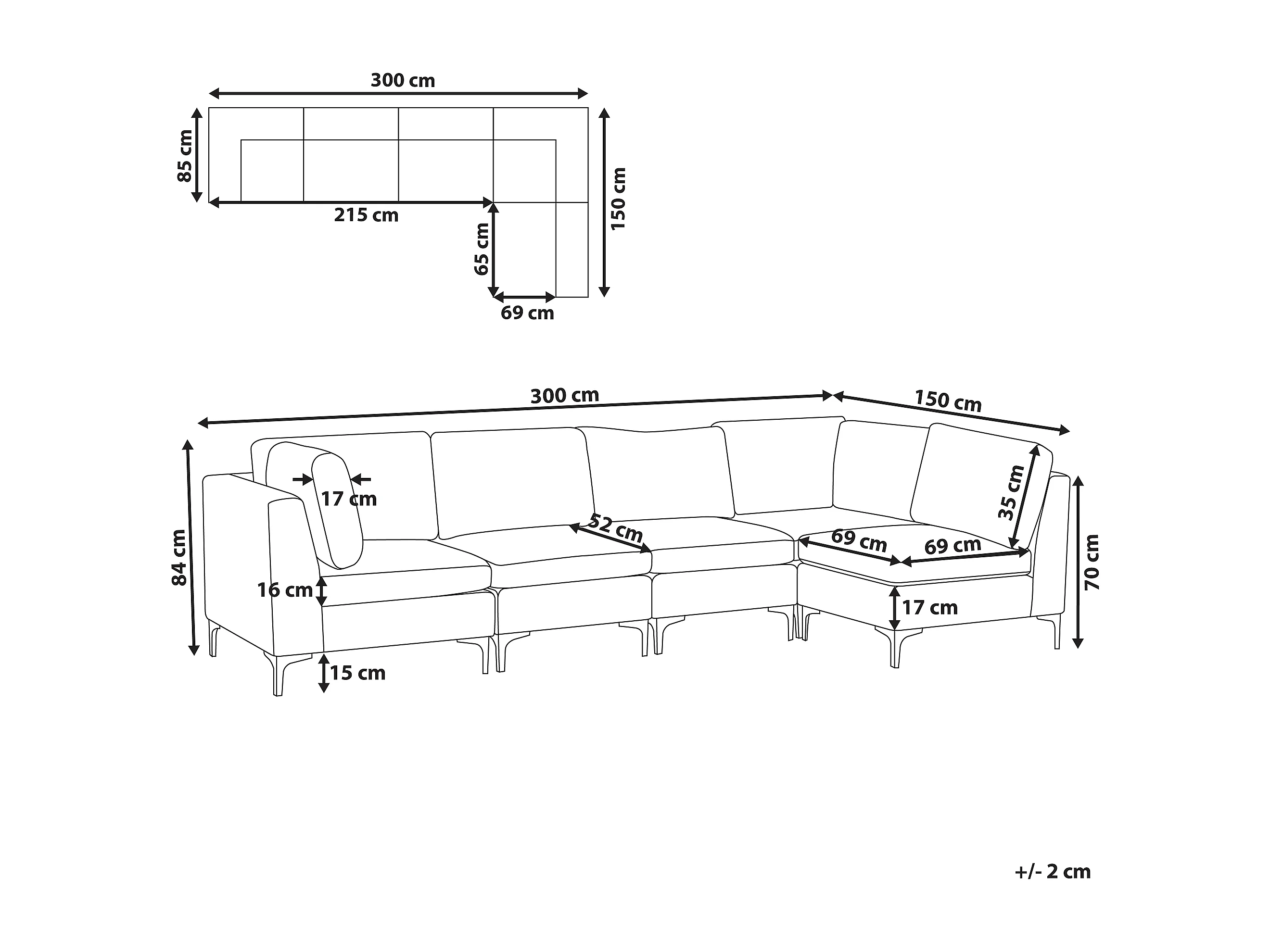 Canapé Modulable droite Bleu Marine et Argenté en Velours 5 Places Glamour Evja