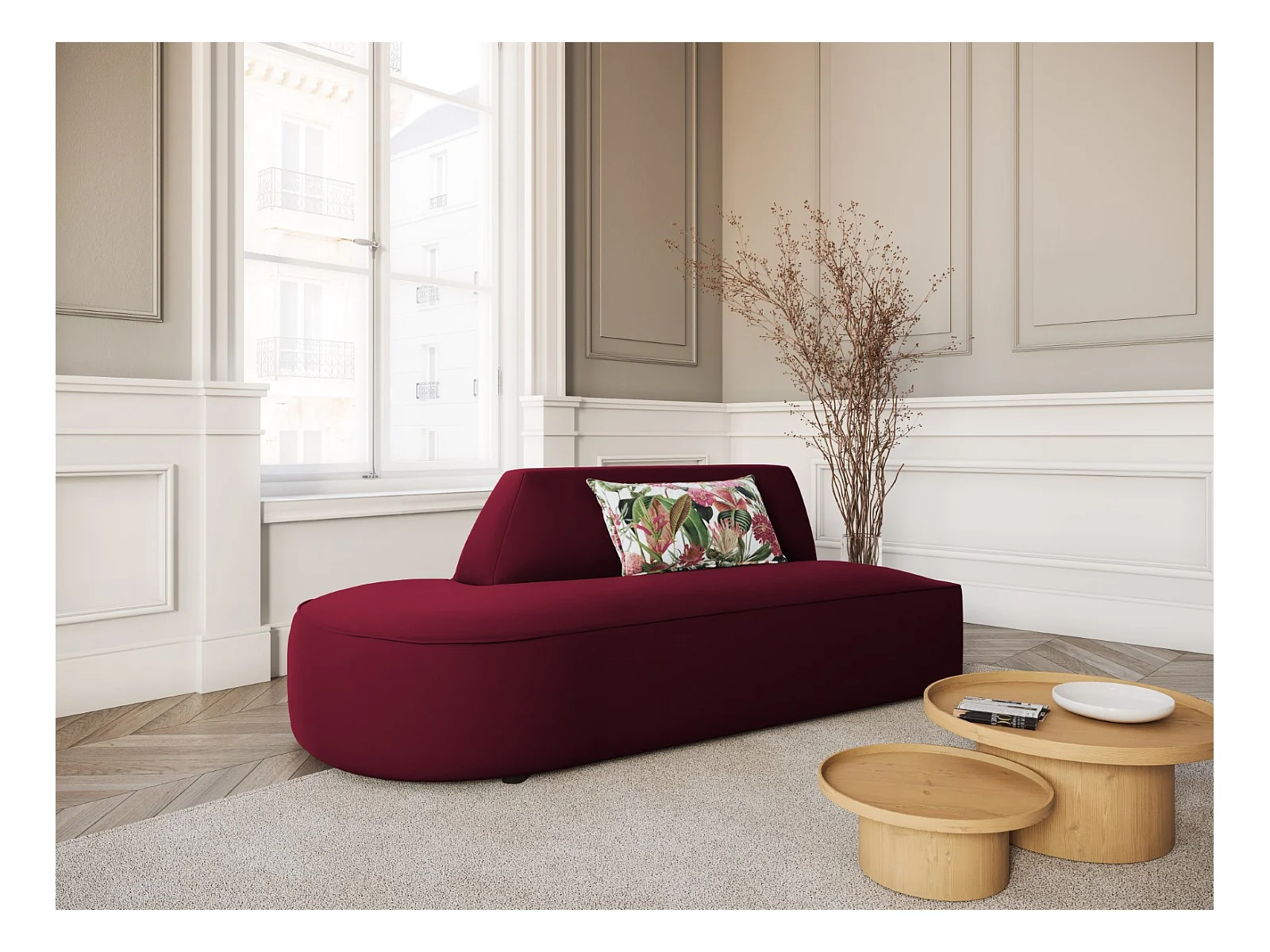 CXL by Christian Lacroix - Canapé modulable gauche "Charles" 2 places en velours rouge - 181x93x69cm