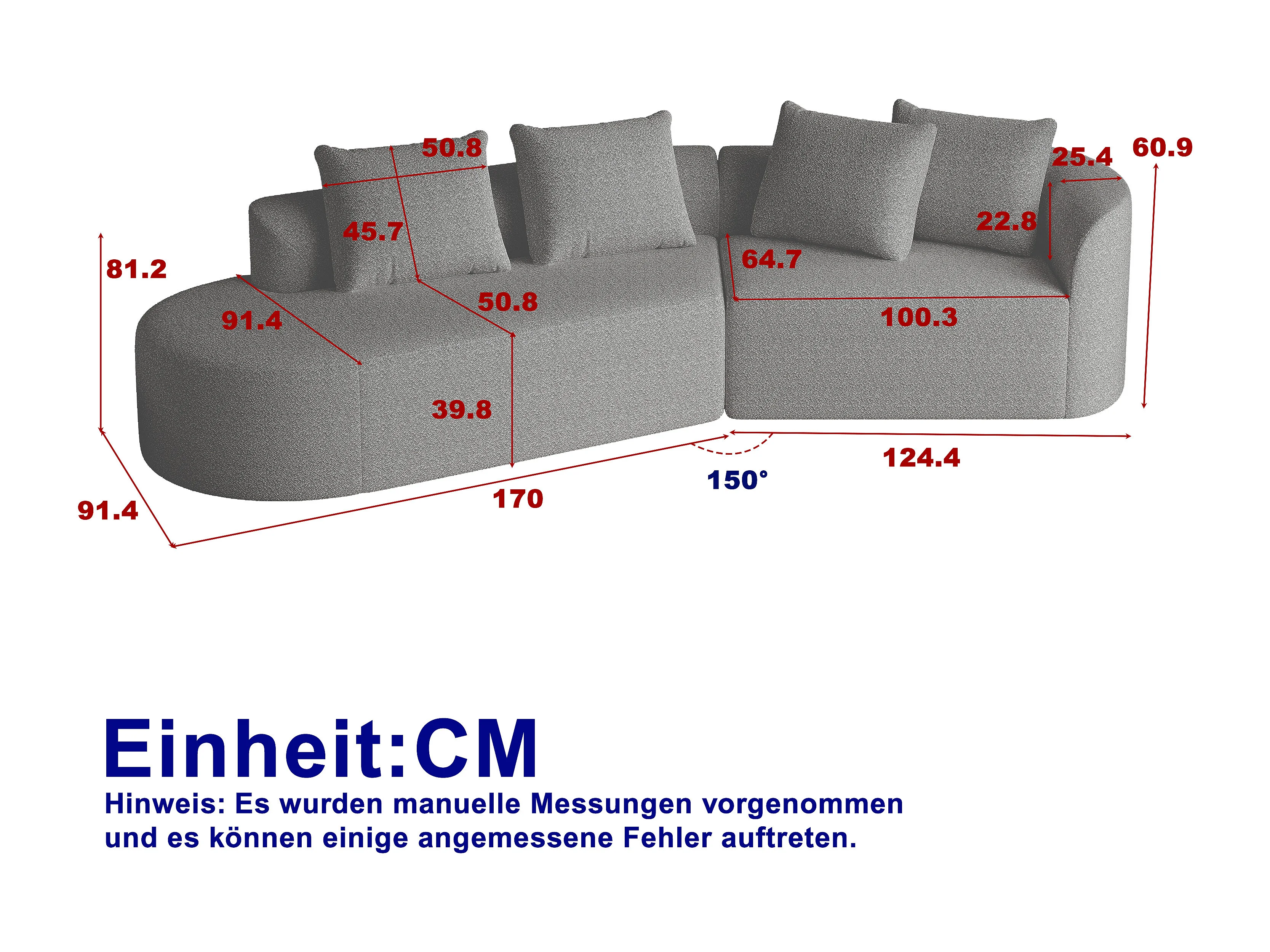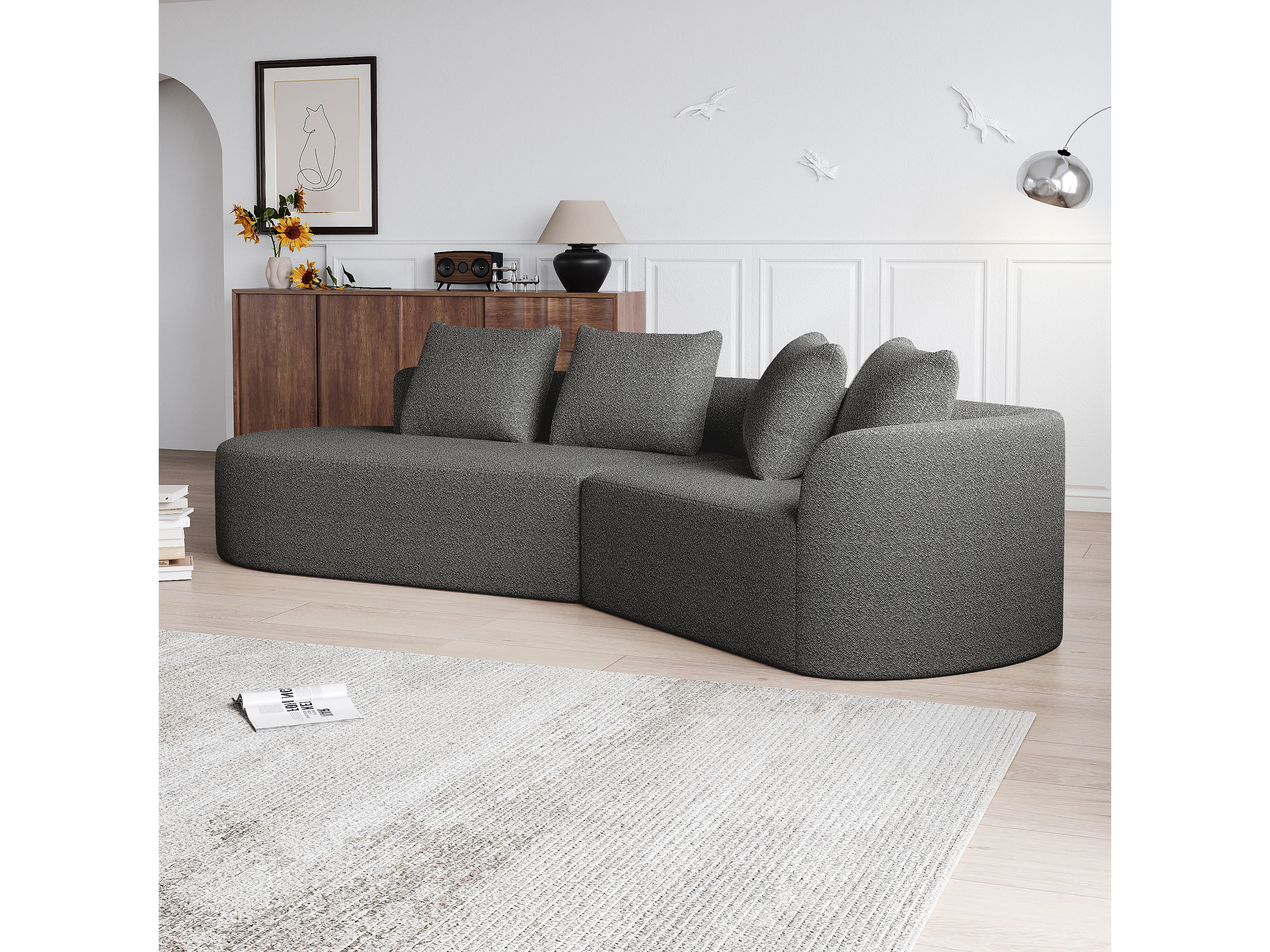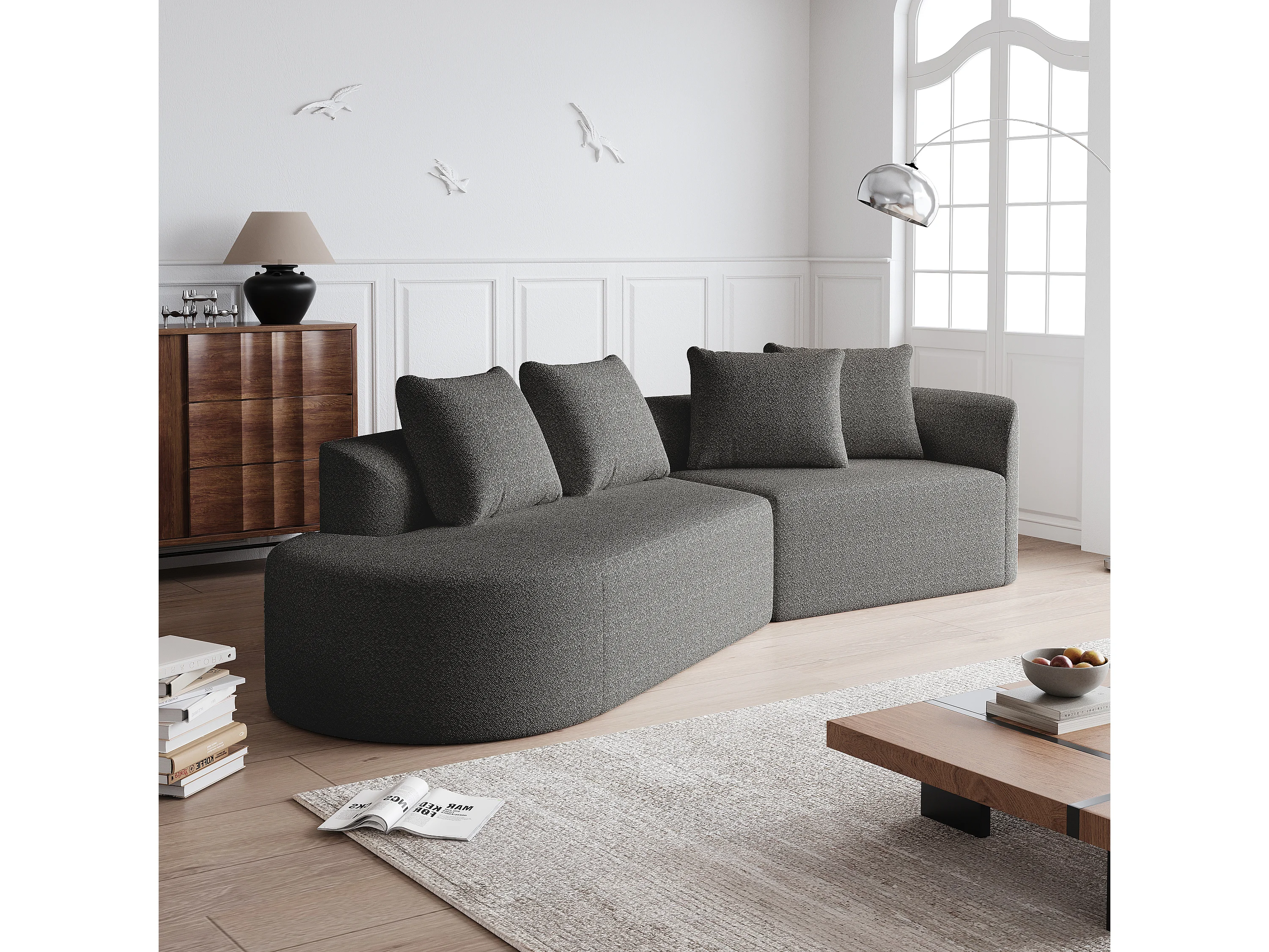 Canapé 4 places, assise extra profonde et large, dossier ergonomique incurvé, sans montage, chenille gris foncé