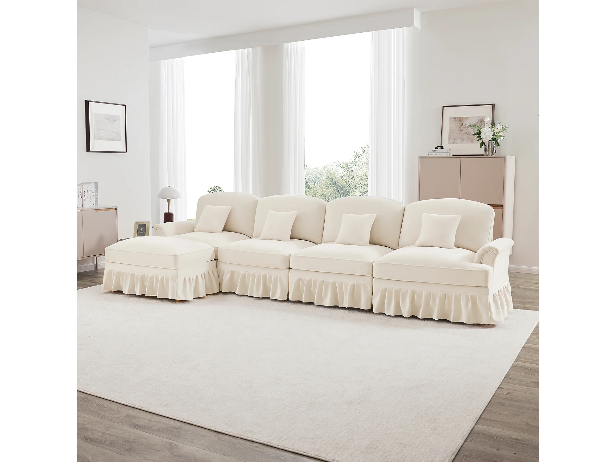 Canapé modulable style midcentury convertible modules interchangeables chenille blanc