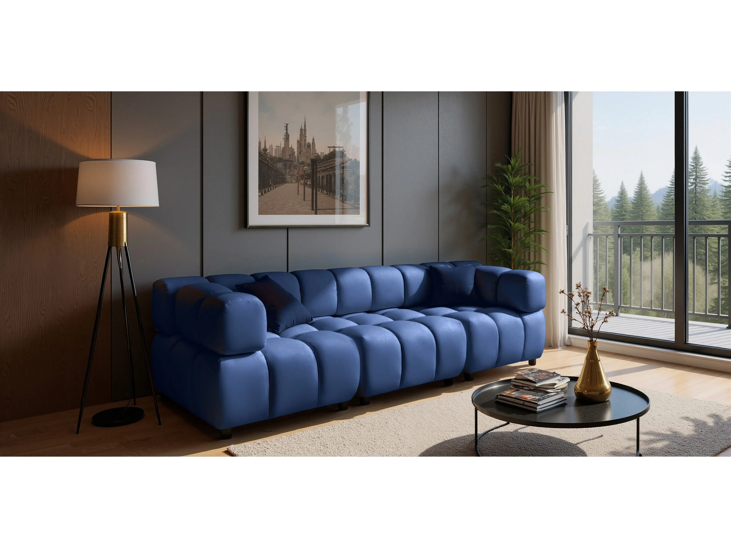 Canapé modulaire 4 places, Velours Bluvel, Bleu encre, Bolla
