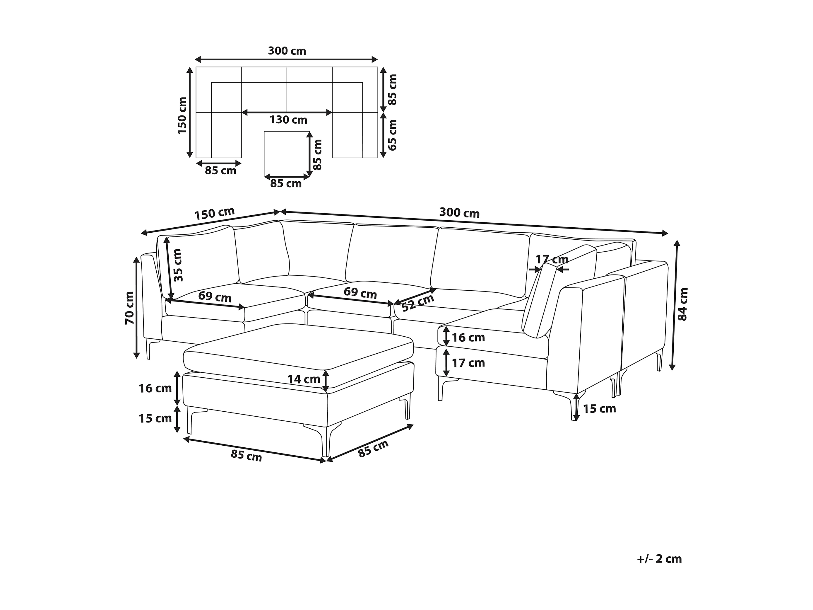 Canapé modulable en forme de U 6 places EVJA Velours Rose avec ottoman