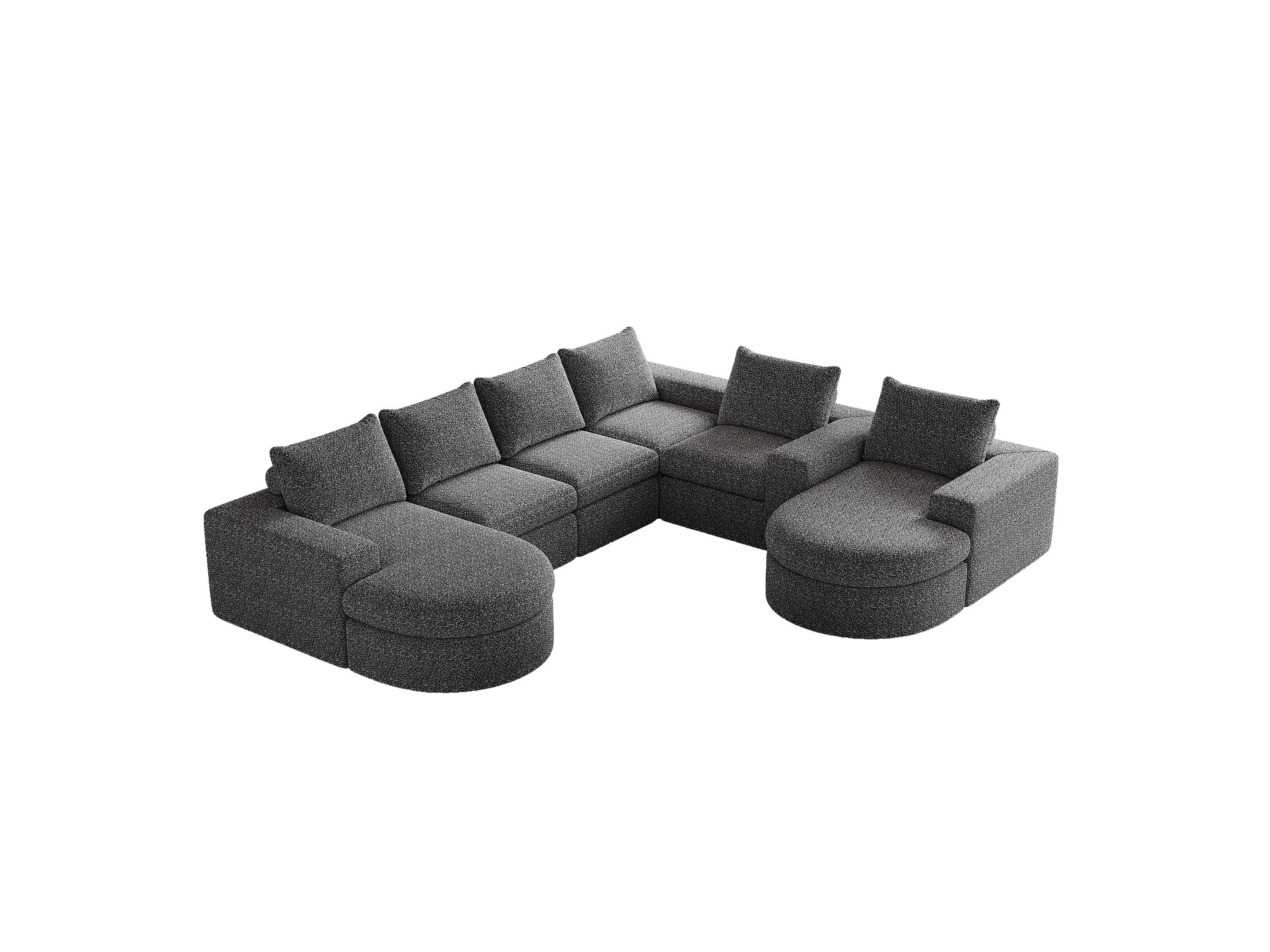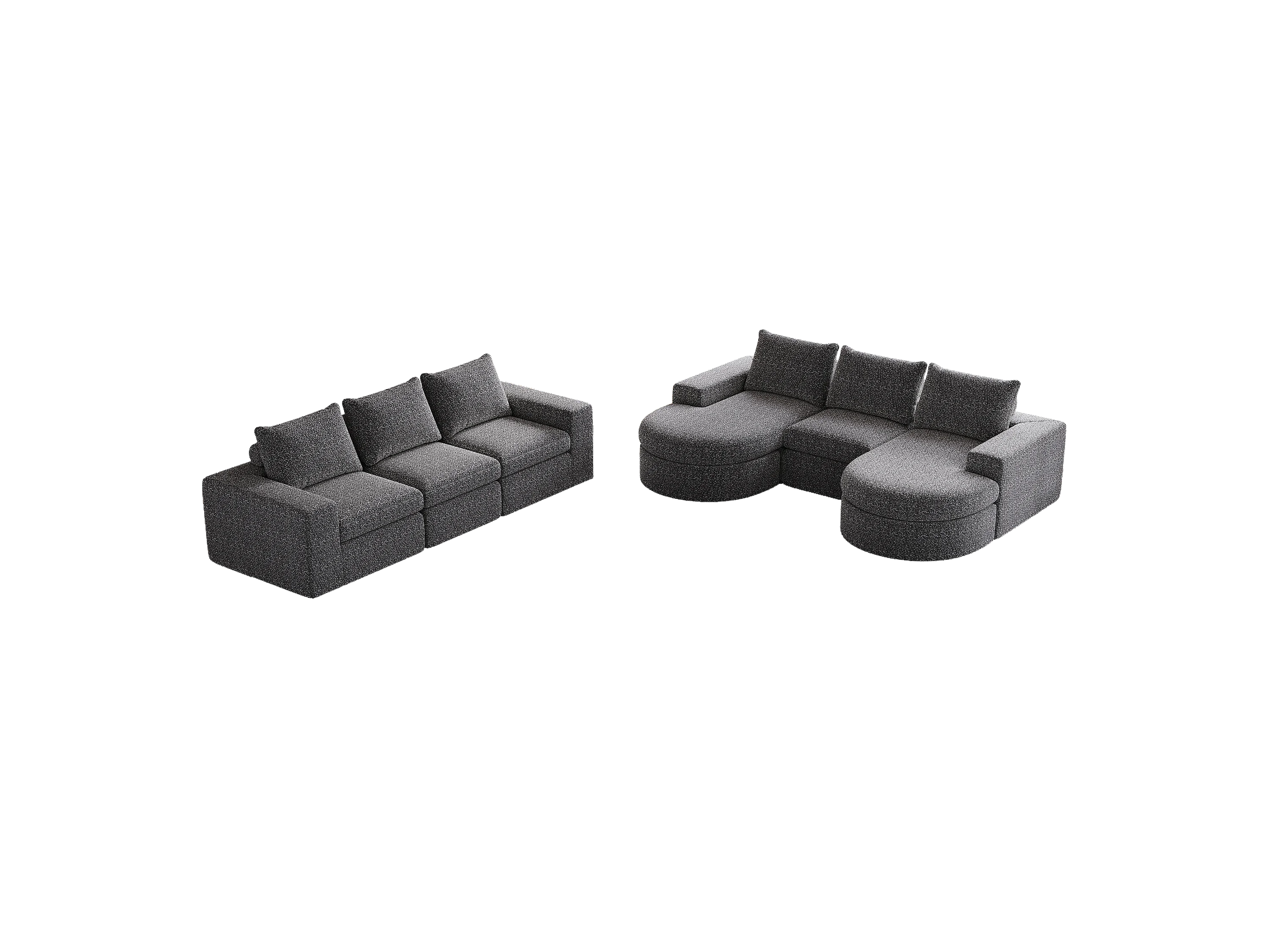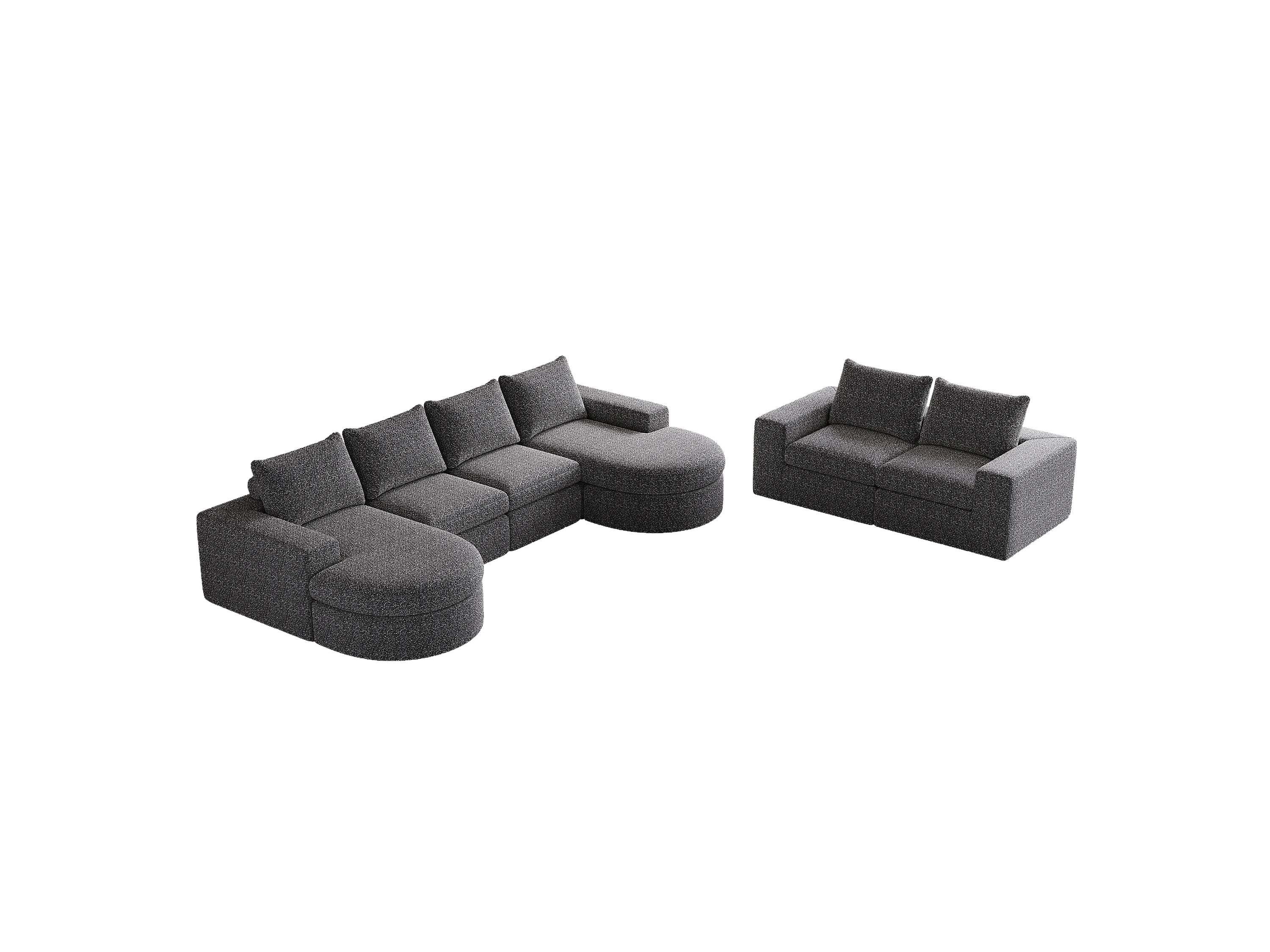 Canapé modulaire en chenille avec éléments incurvés et repose-pied, design compressé, mousse haute densité, gris (114x43x43 cm)