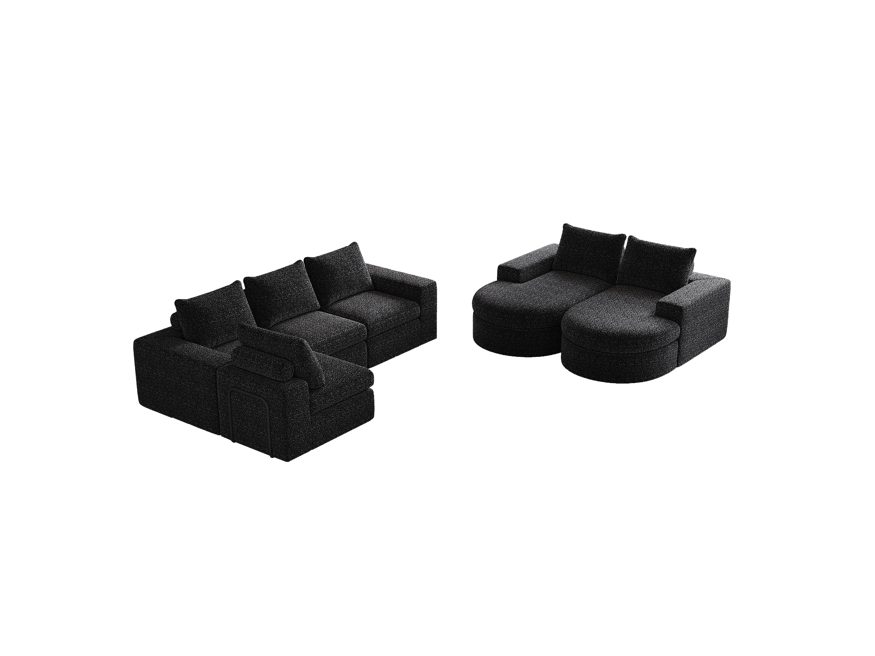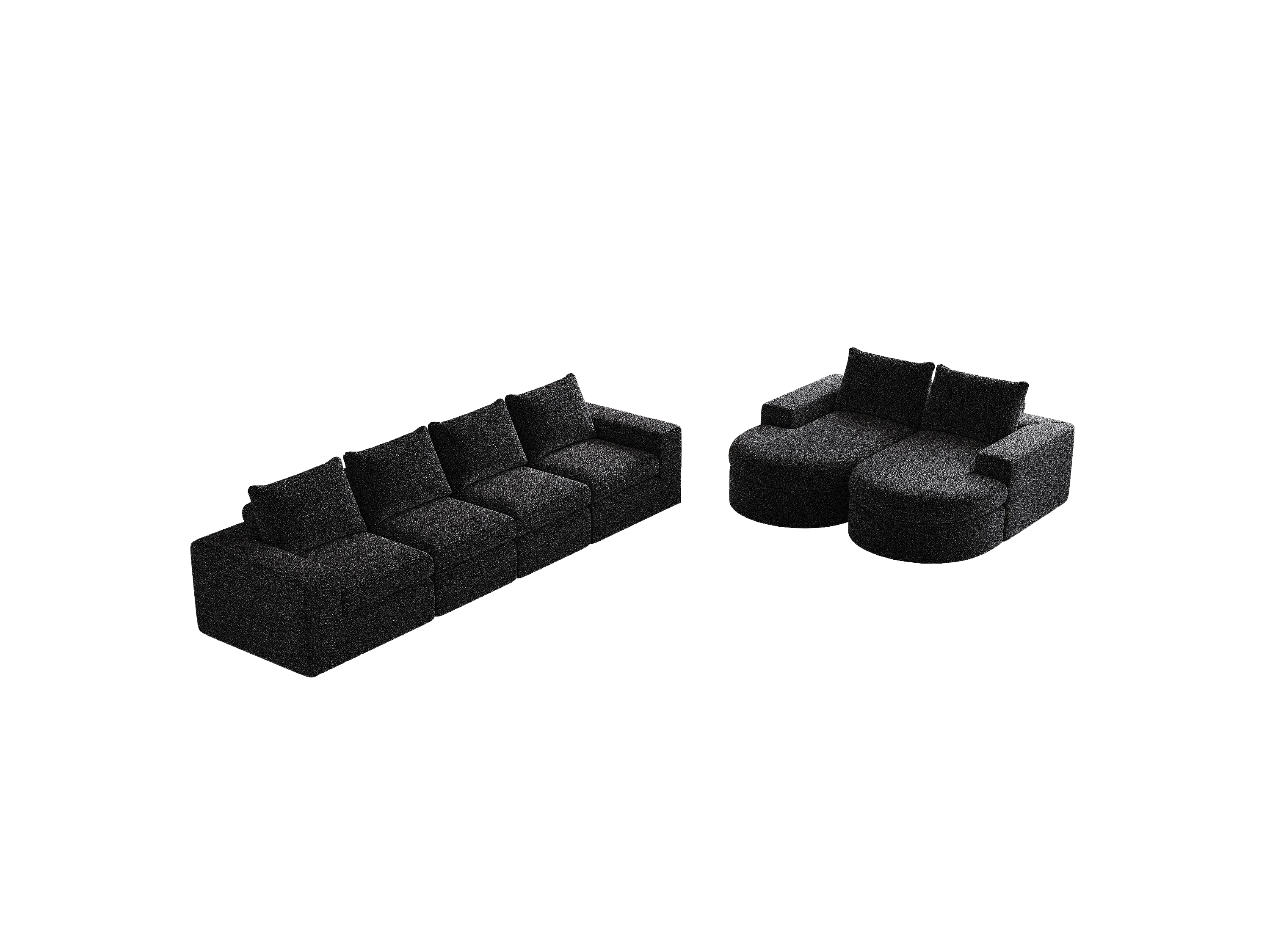 Canapé modulaire en chenille avec éléments incurvés et repose-pied, design compressé, mousse haute densité, noir (114x43x43 cm)