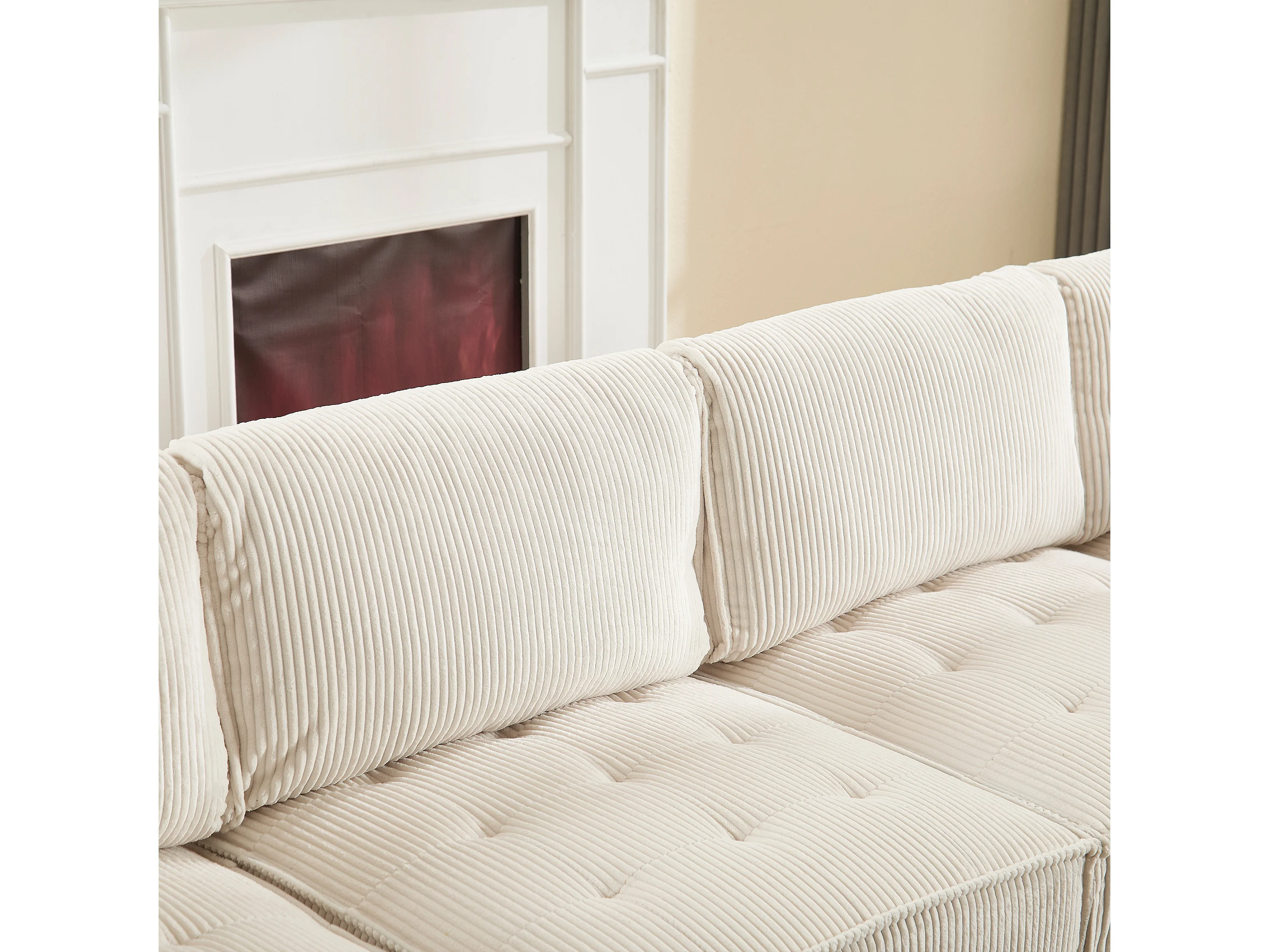 Canapé d'Angle Modulable 6 Places en Velours Beige - Modulable à Volonté - Design contemporain