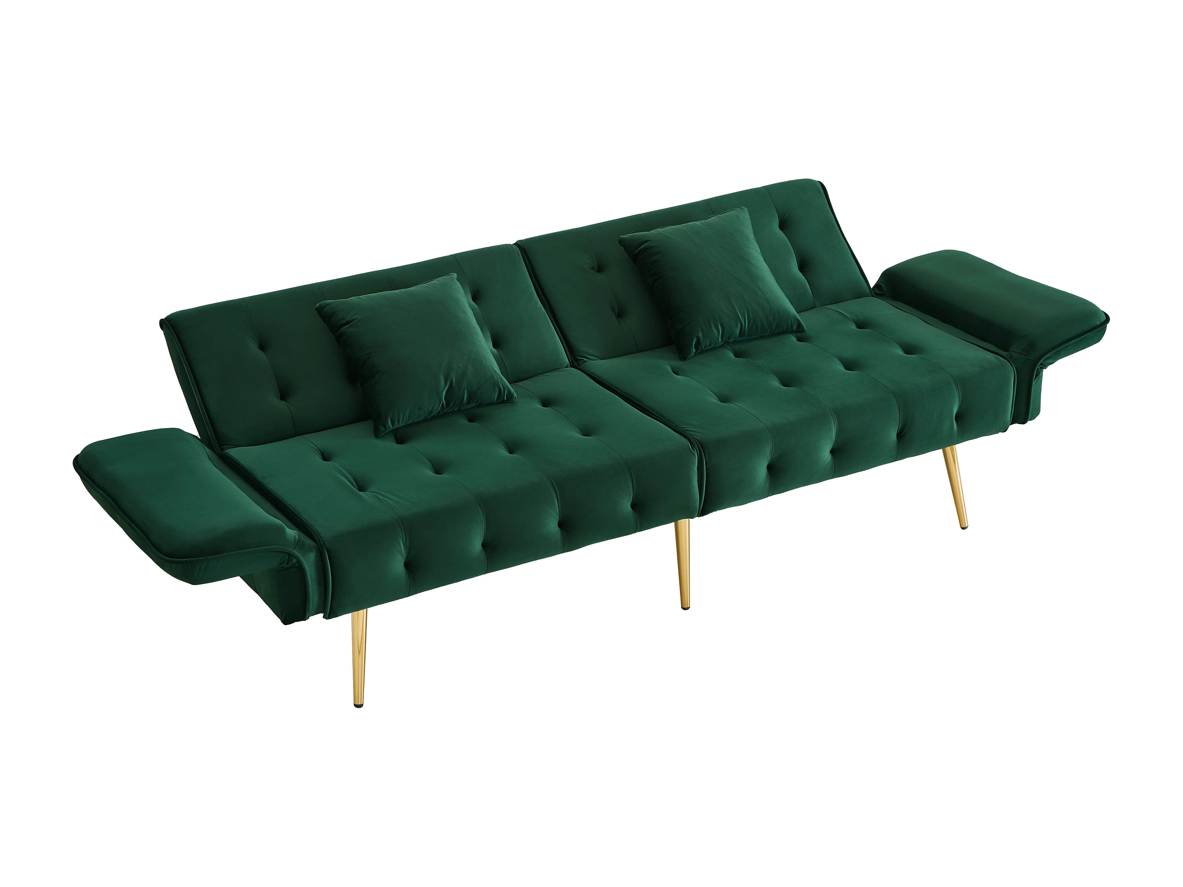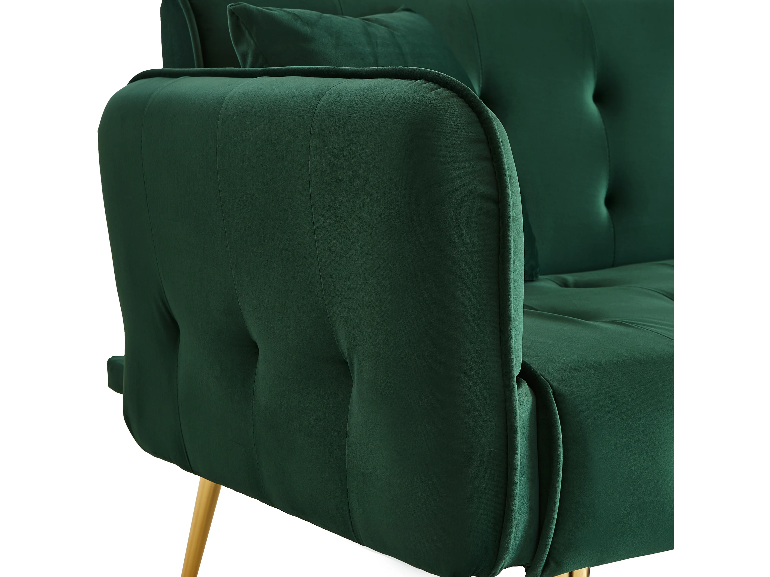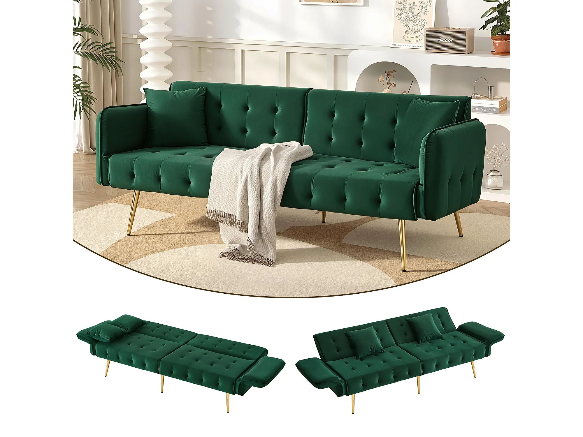 Canapé multifonctionnel 2 places - Dossier réglable - Accoudoirs réglables - Velours - Vert