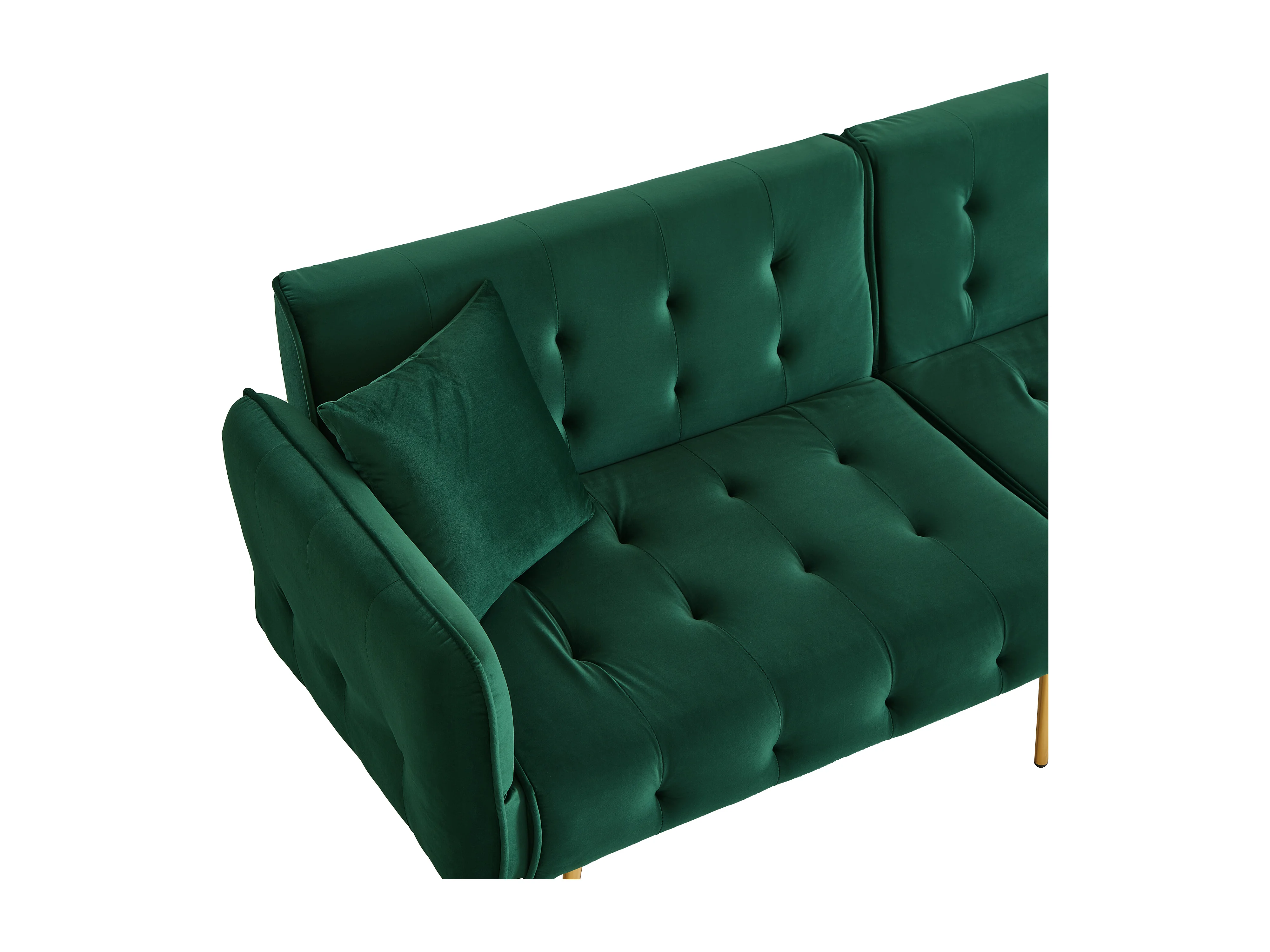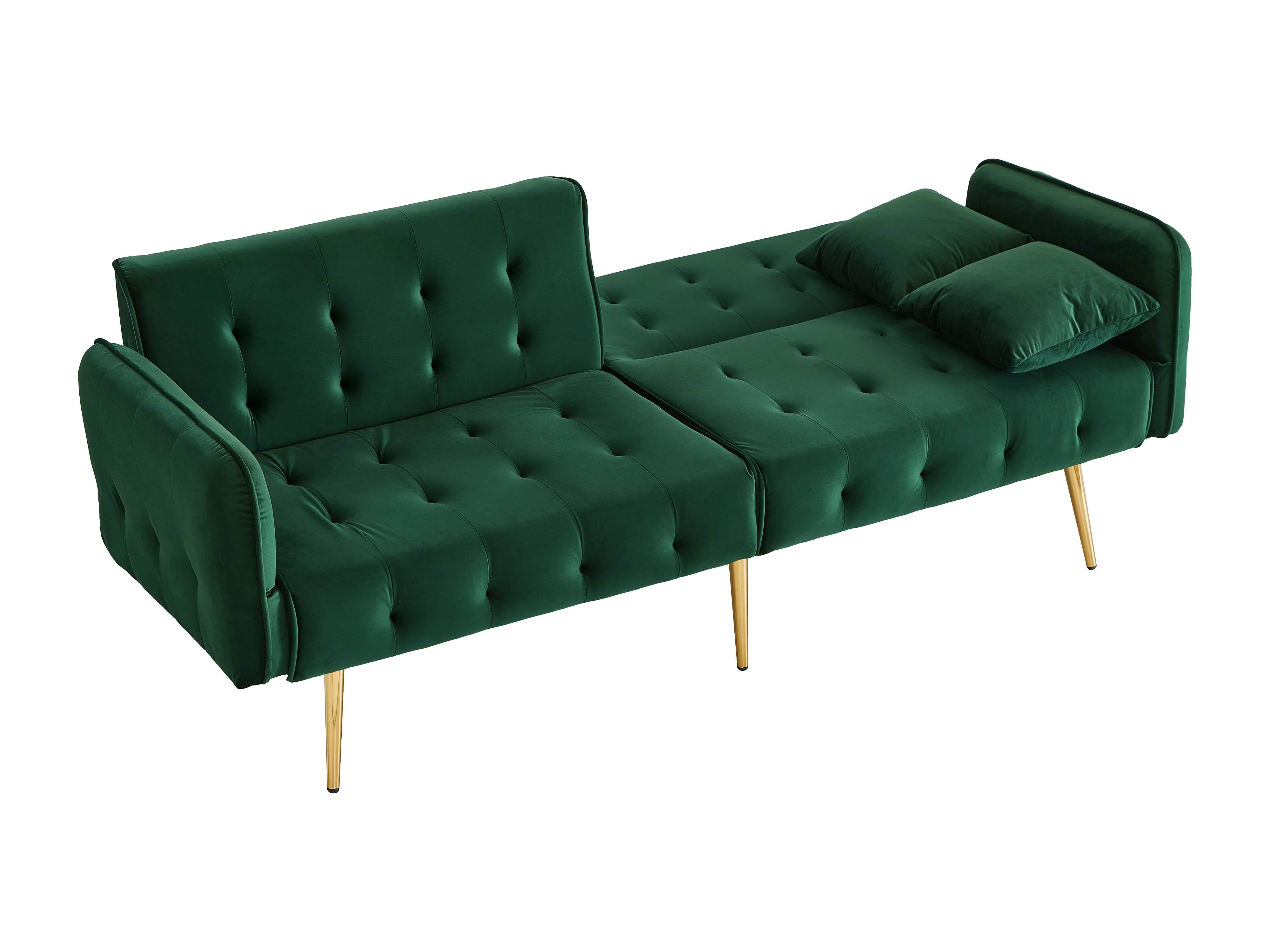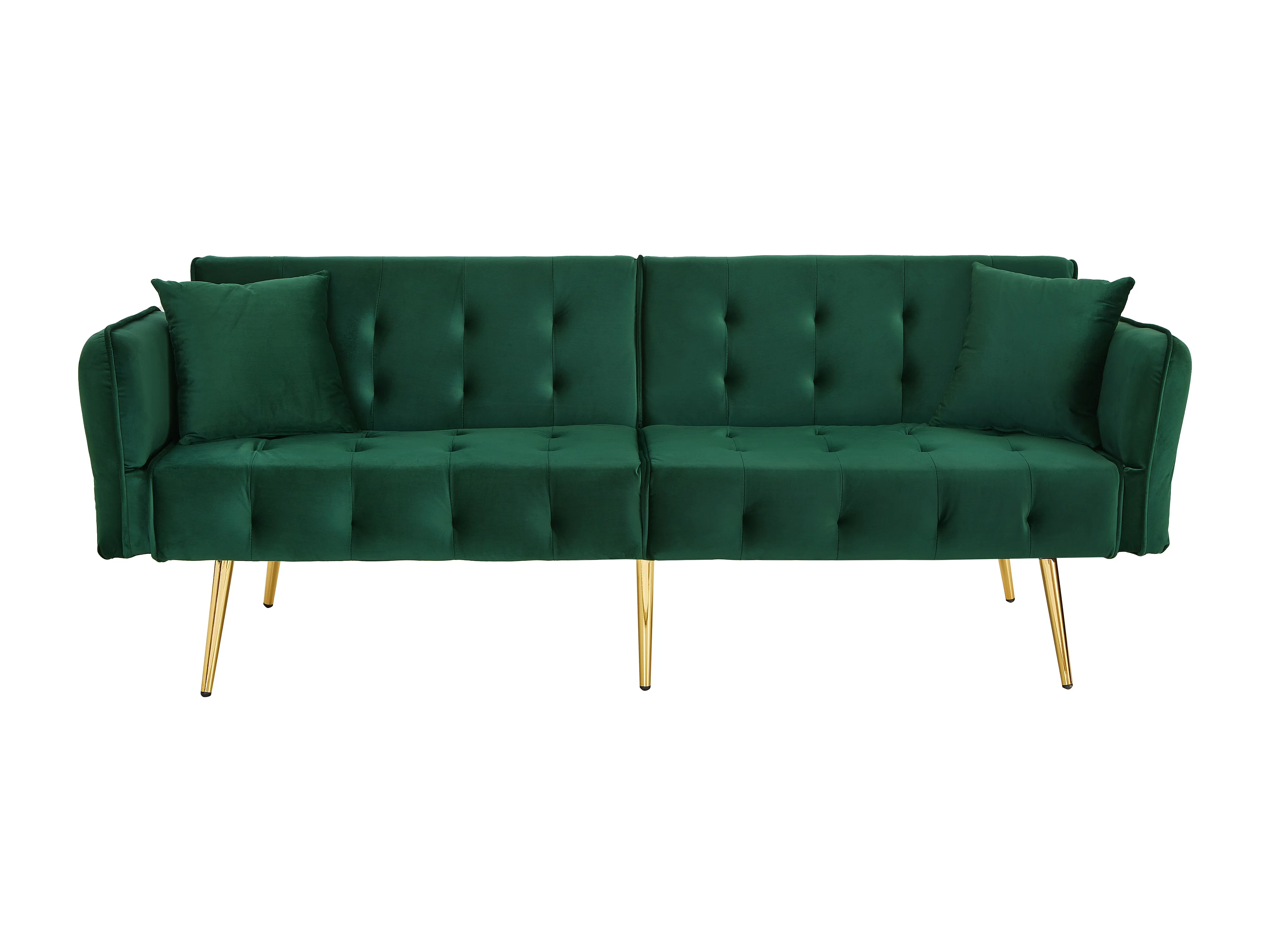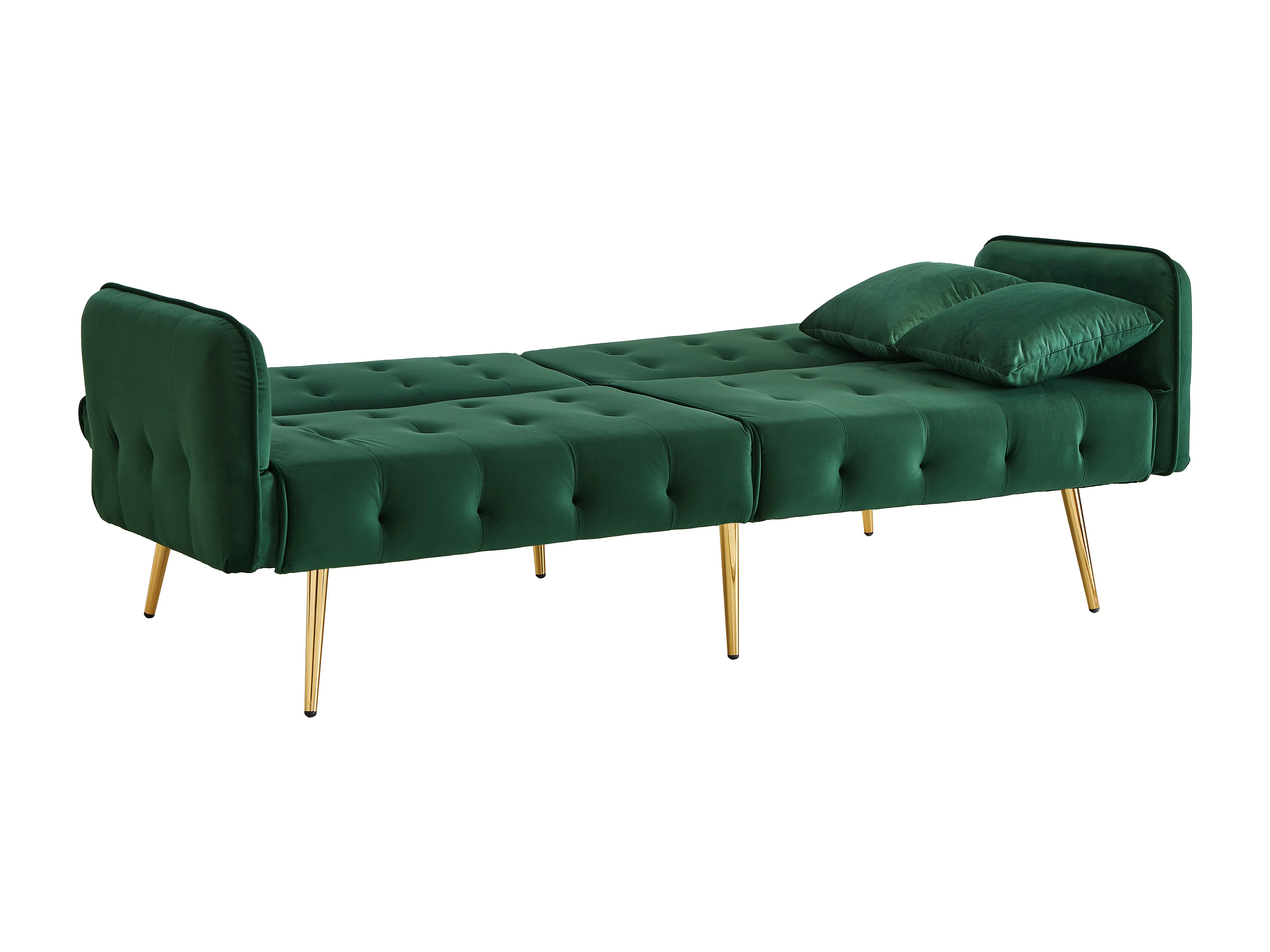Canapé multifonctionnel 2 places - Dossier réglable - Accoudoirs réglables - Velours - Vert