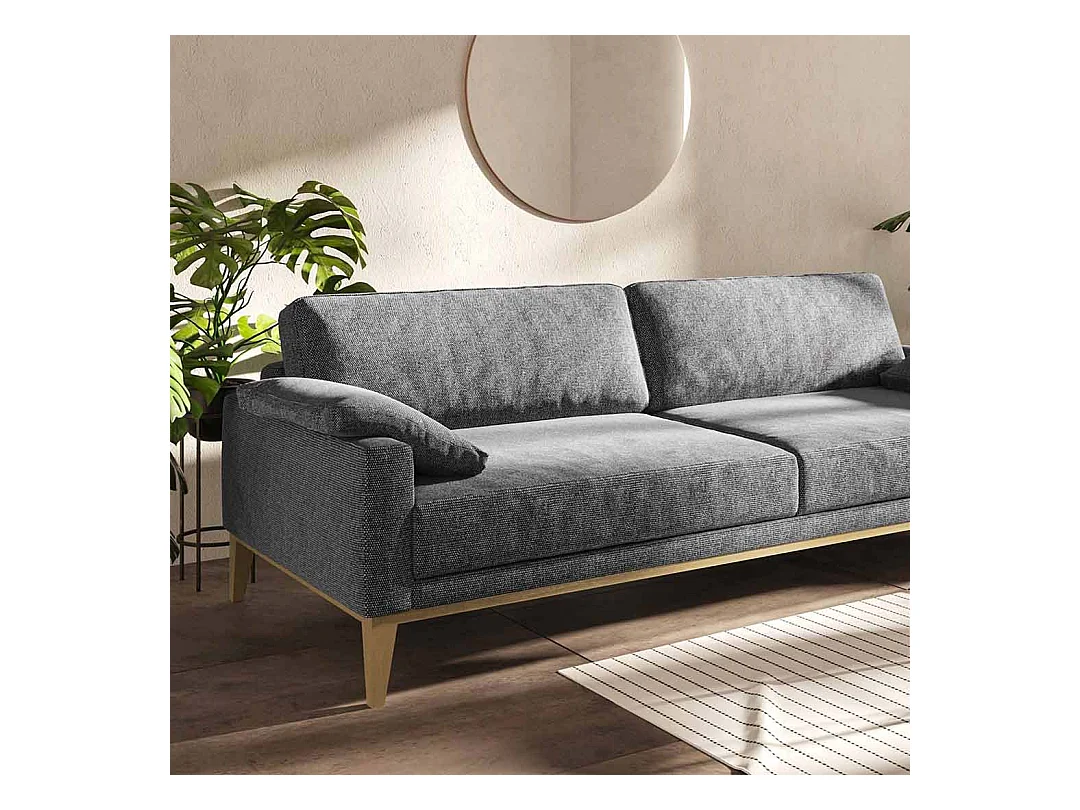 Canapé polyester gris foncé et pieds en acier 3 places Avi