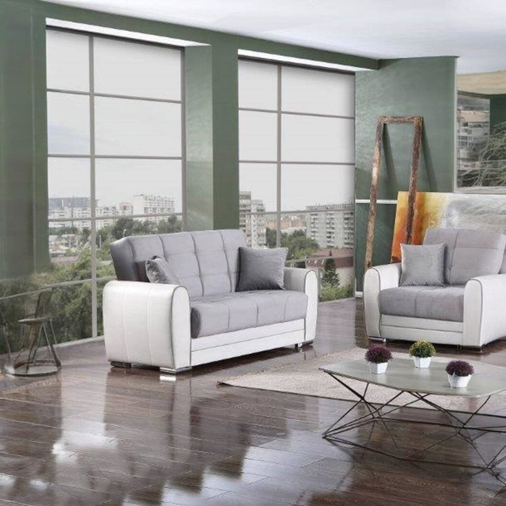 Canapé Dlobuon, Canapé d'angle conteneur en éco-cuir et tissu, Canapé de salon avec ouverture clic-clac et péninsule réversible, 163x84h91 cm, Blanc et Gris