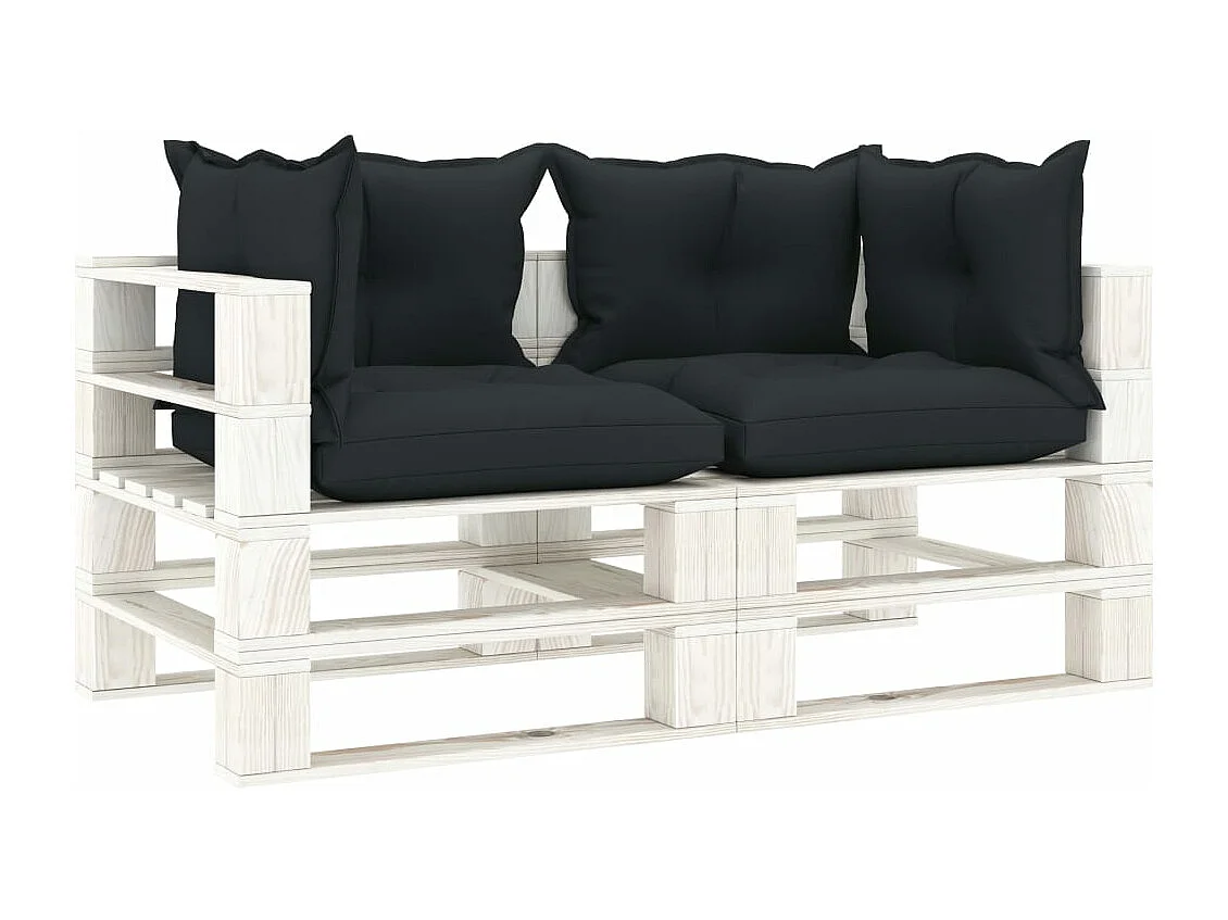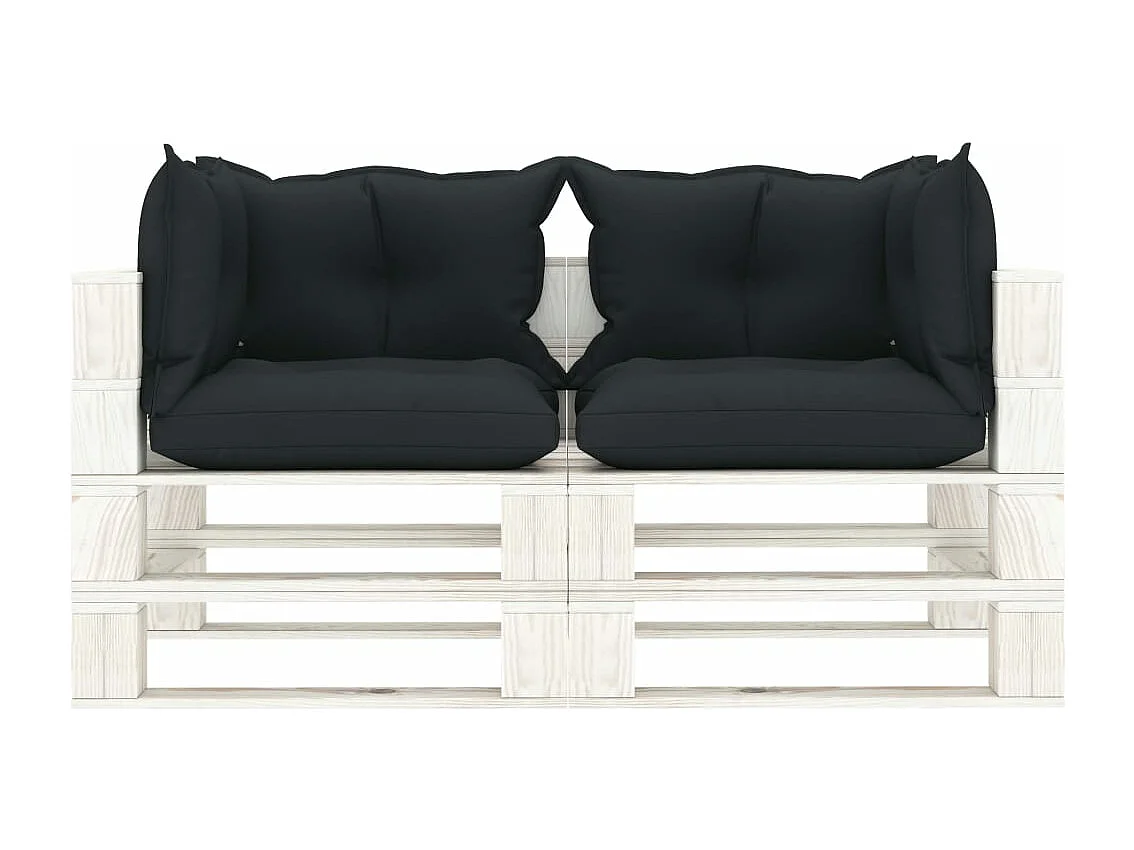 Canapé palette 2 places de jardin et coussins anthracite Bois