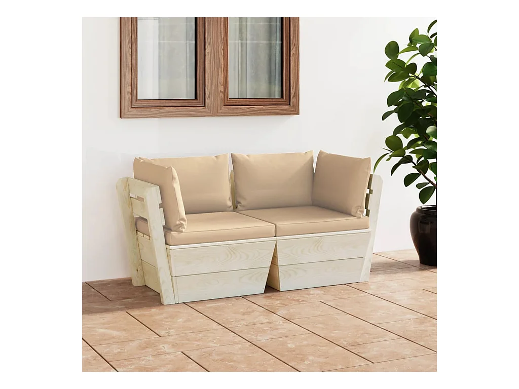 Canapé palette à 2 places de jardin avec coussins Bois d'épicéa REO30444