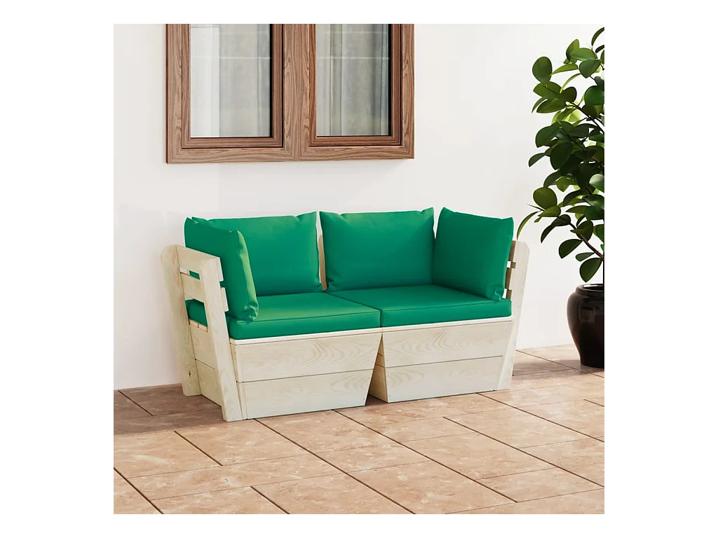 Canapé palette à 2 places de jardin avec coussins Bois d'épicéa REO32323