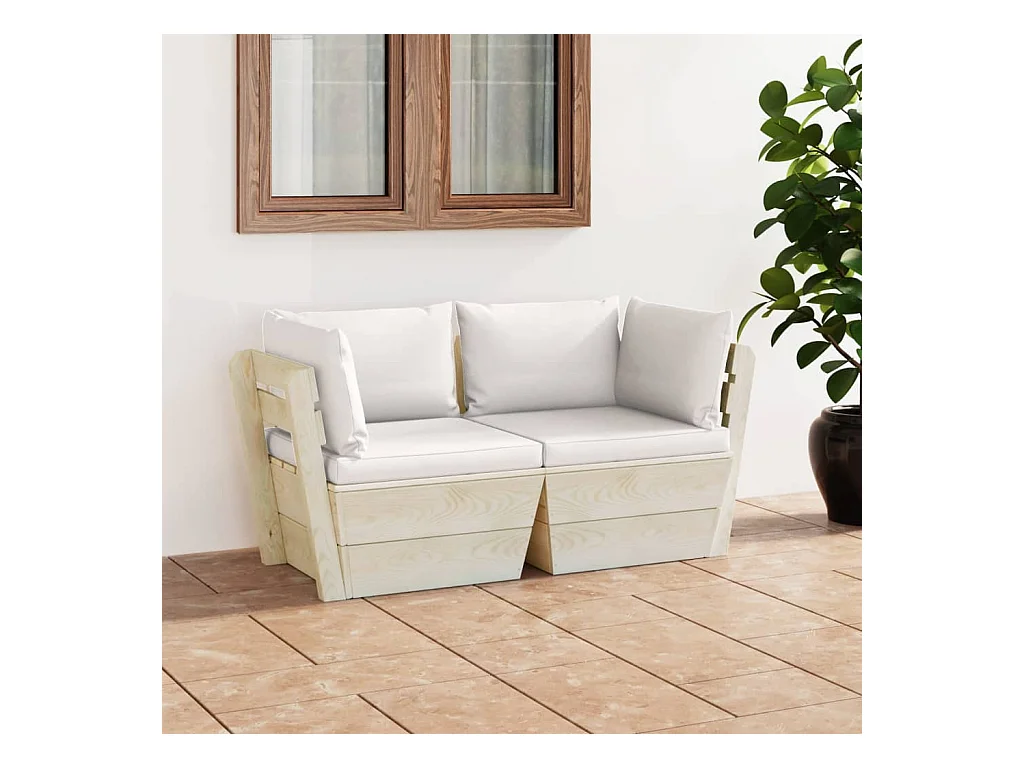Canapé palette à 2 places de jardin avec coussins Bois d'épicéa REO30444
