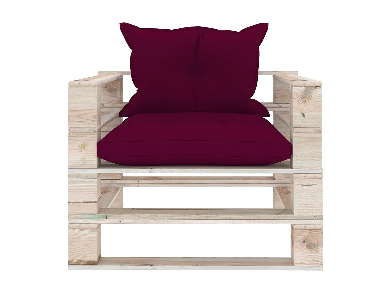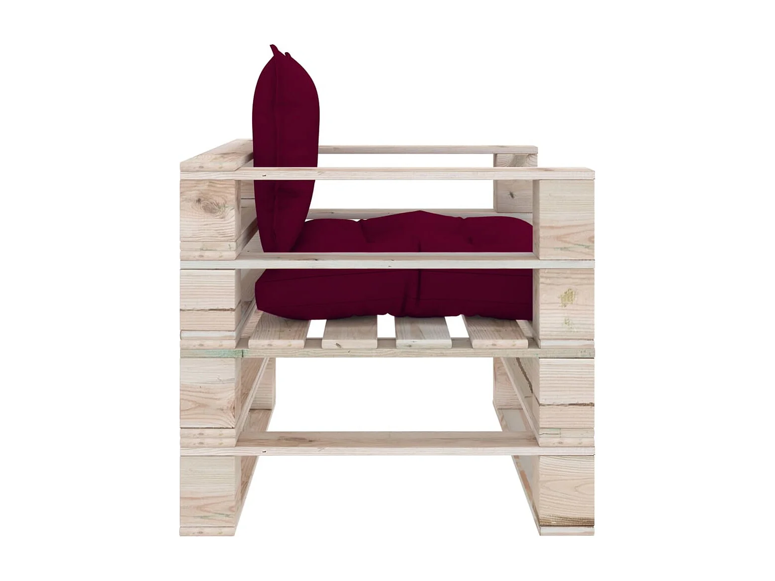 Canapé palette de jardin et coussins rouge bordeaux Bois de pin