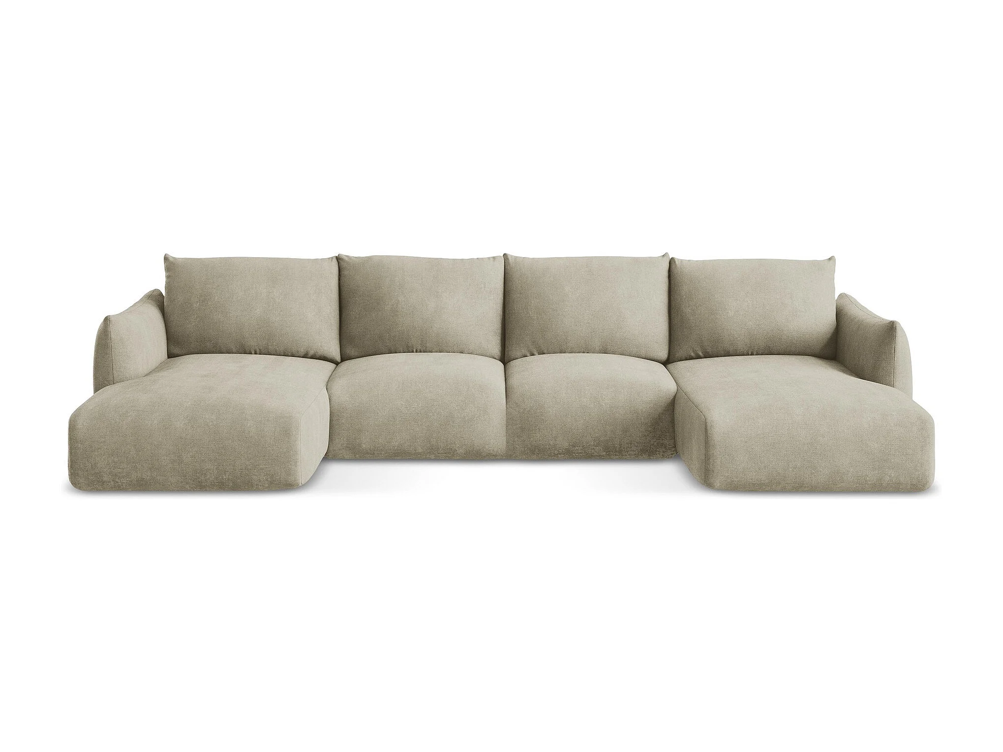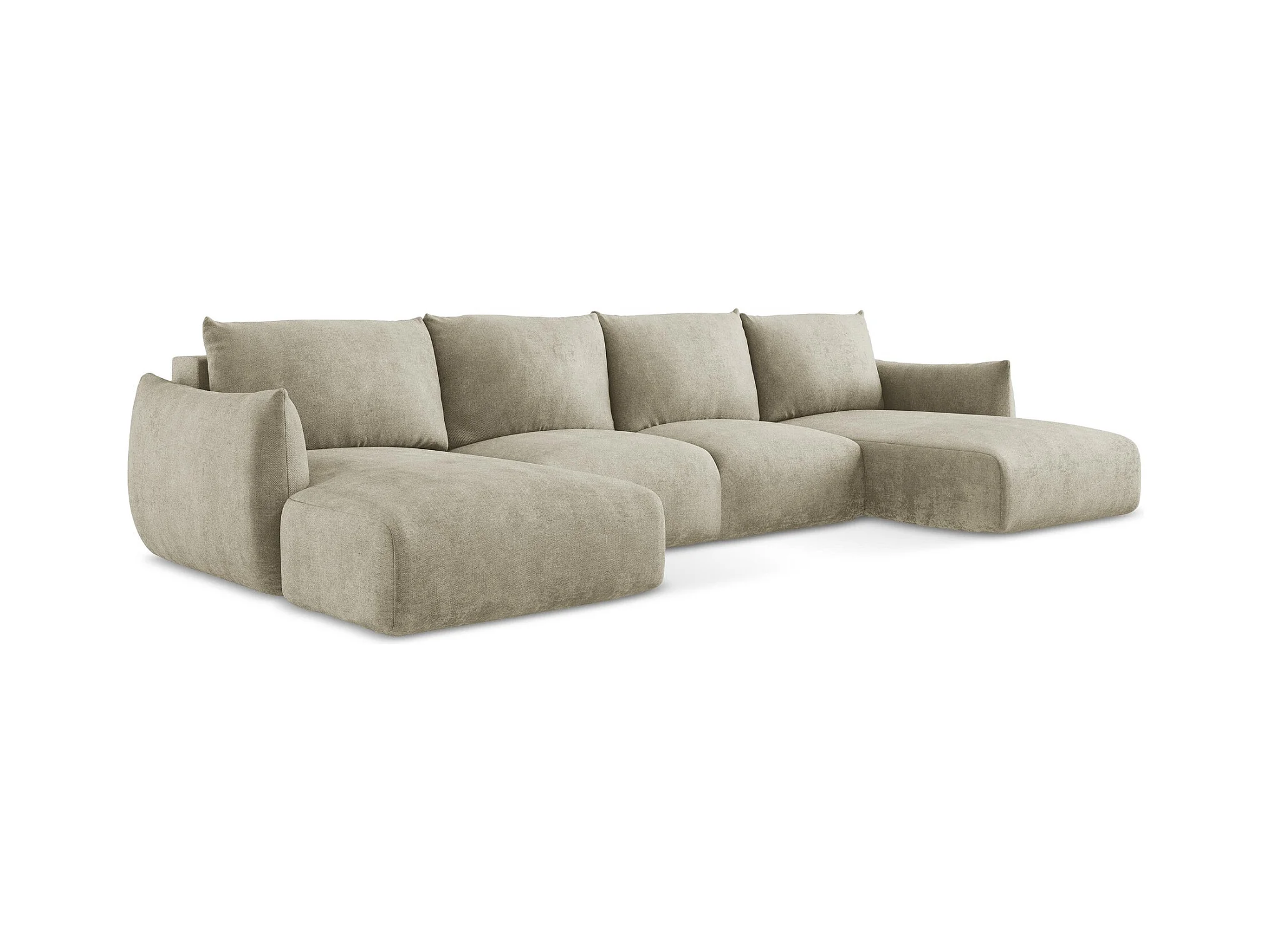 Canapé panoramique 4 places convertible en tissu chenille - beige - LEILA