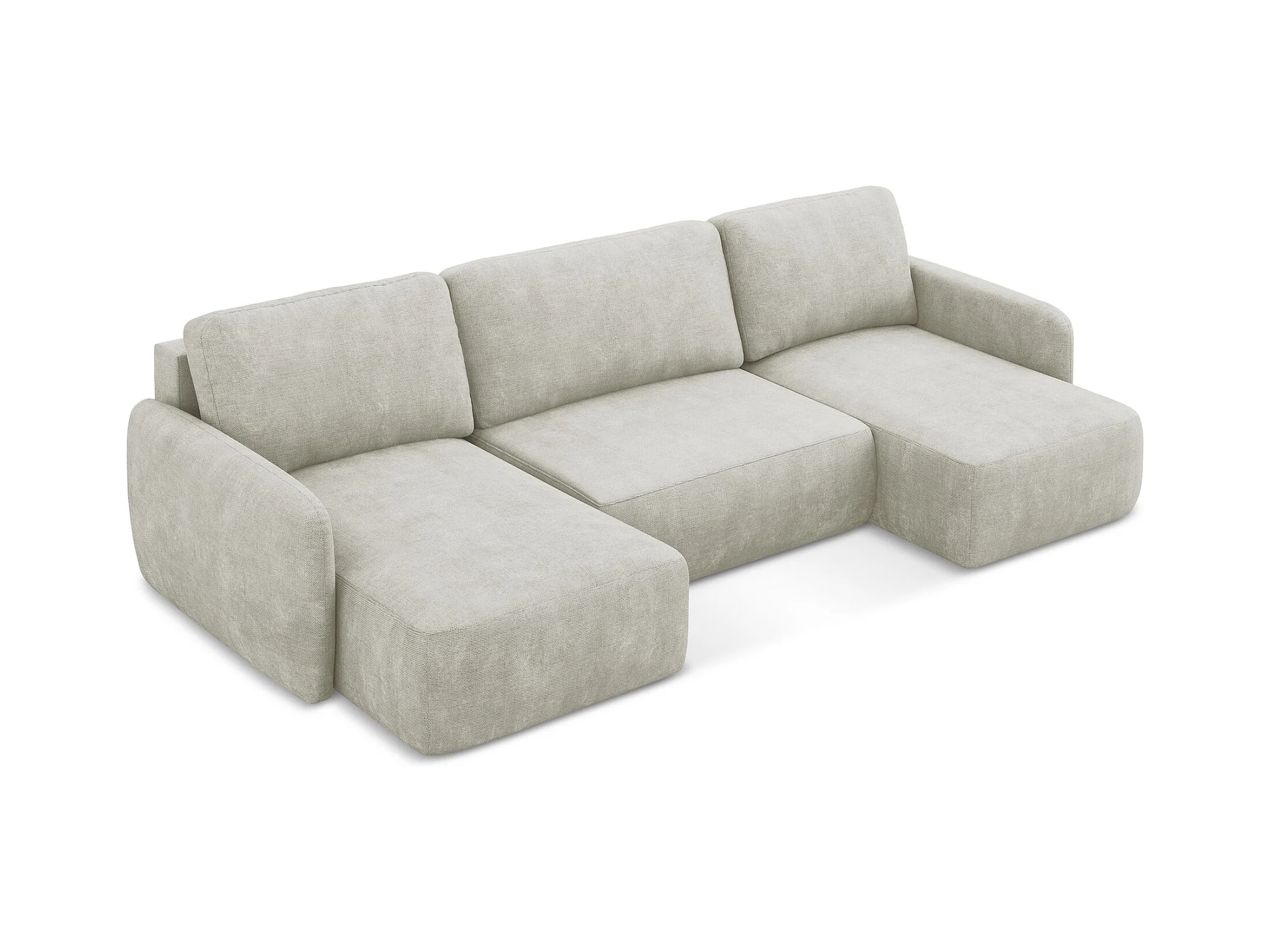 Canapé panoramique 4 places convertible en tissu chenille - perle - LILO