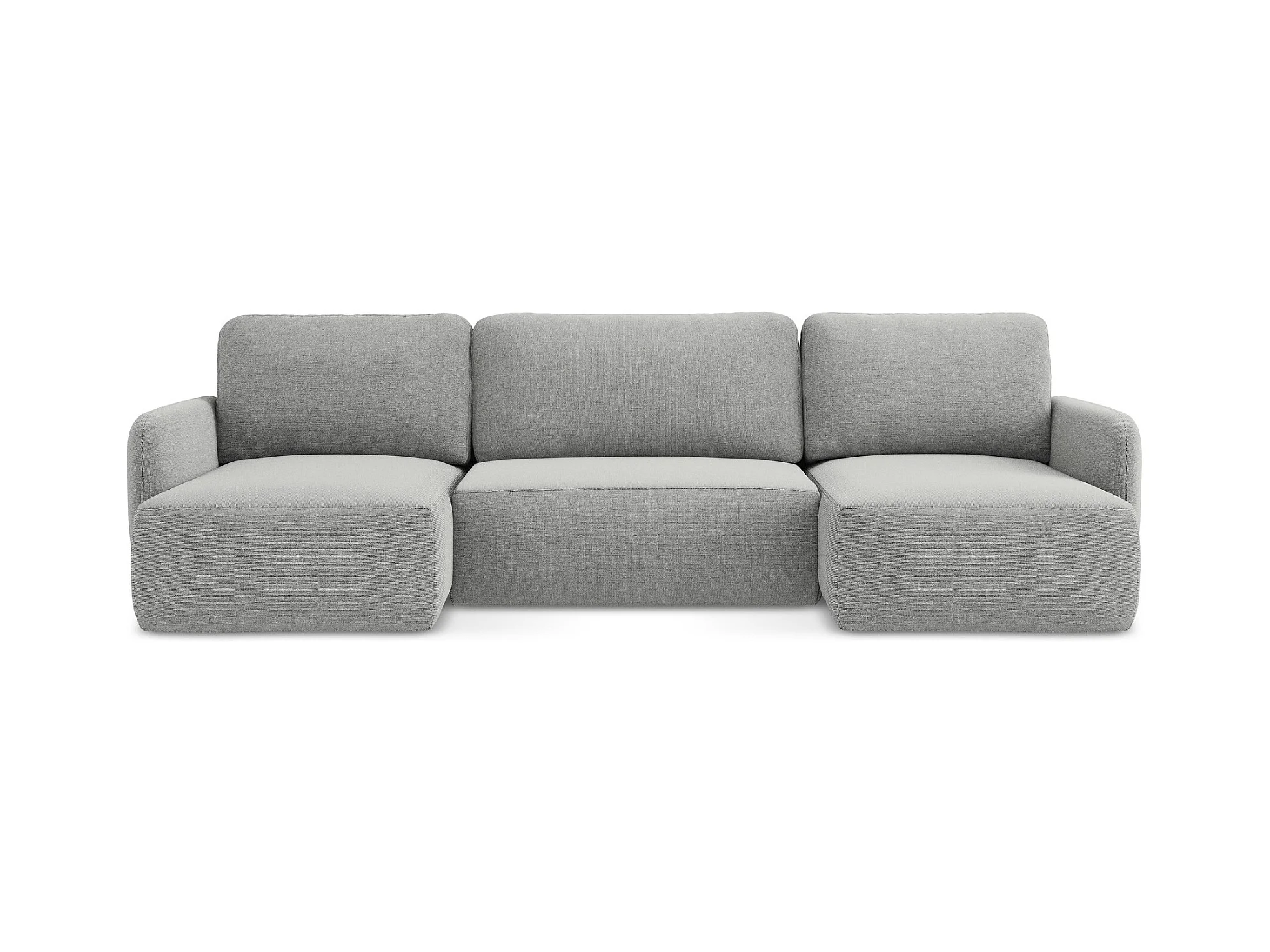 Canapé panoramique 4 places convertible en tissu texturé - gris clair - LILO