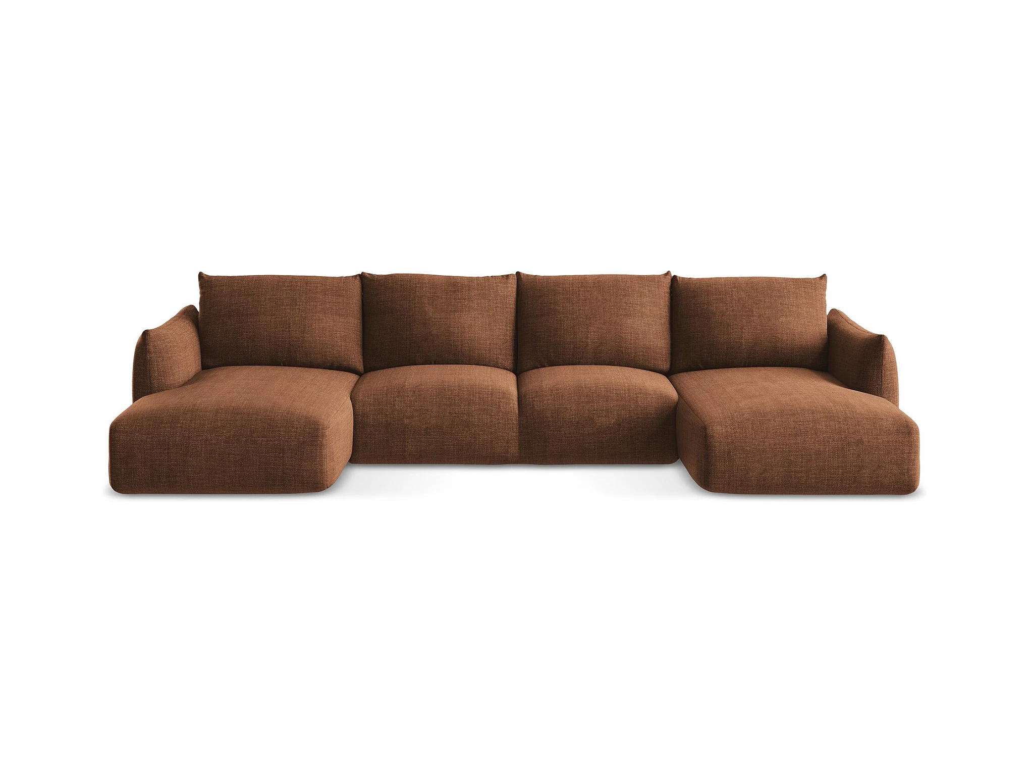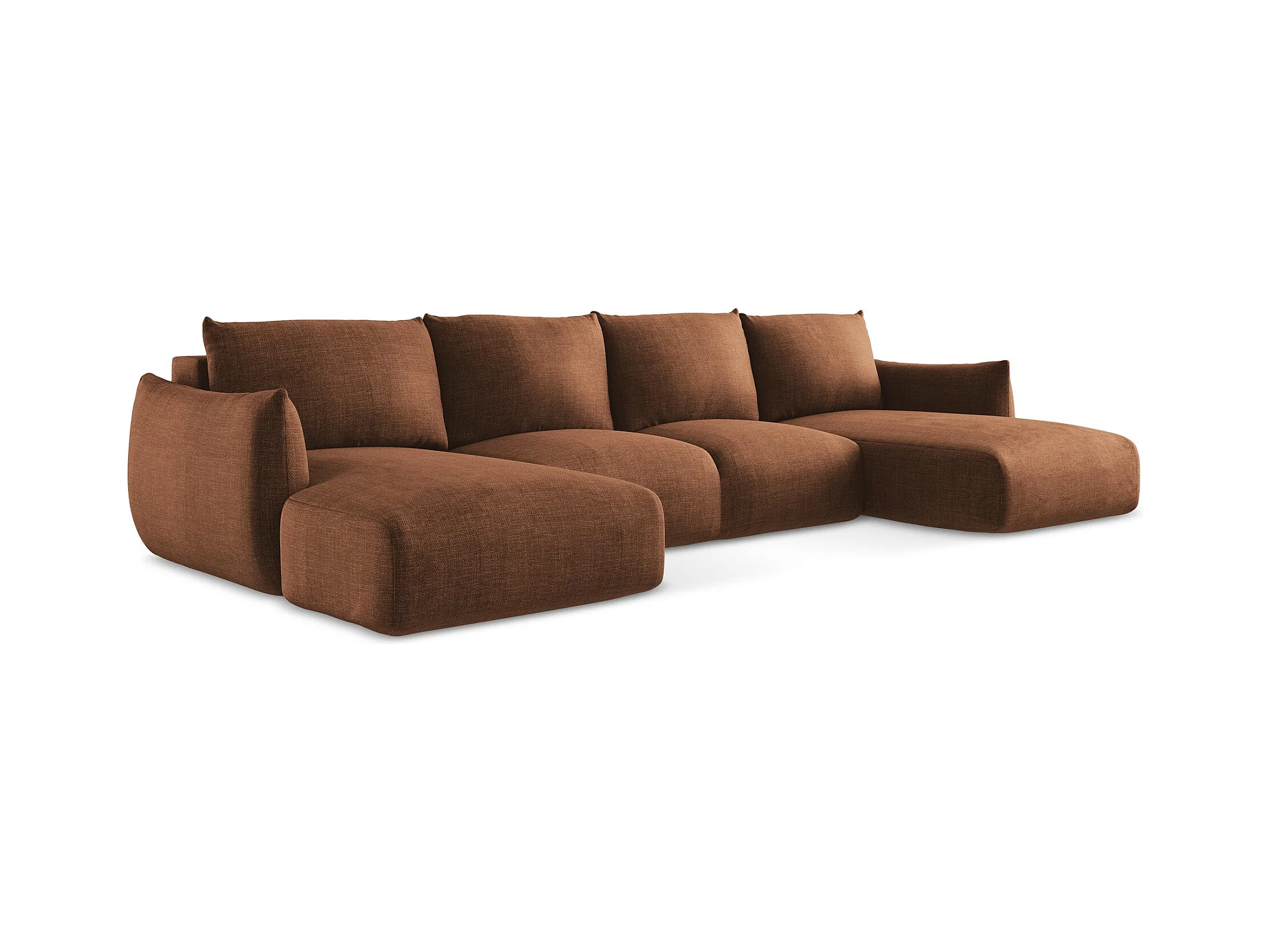 Canapé panoramique 4 places convertible en tissu chenille - terre cuite - LILO