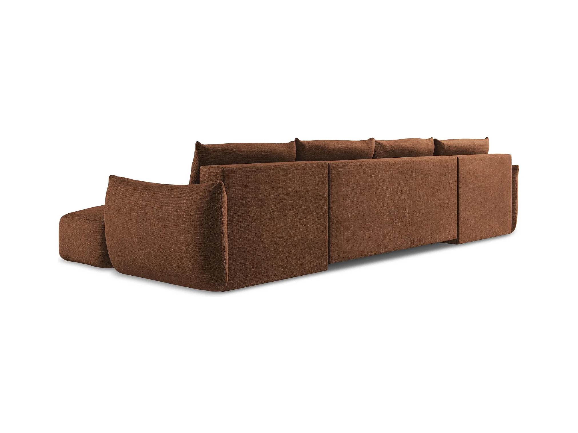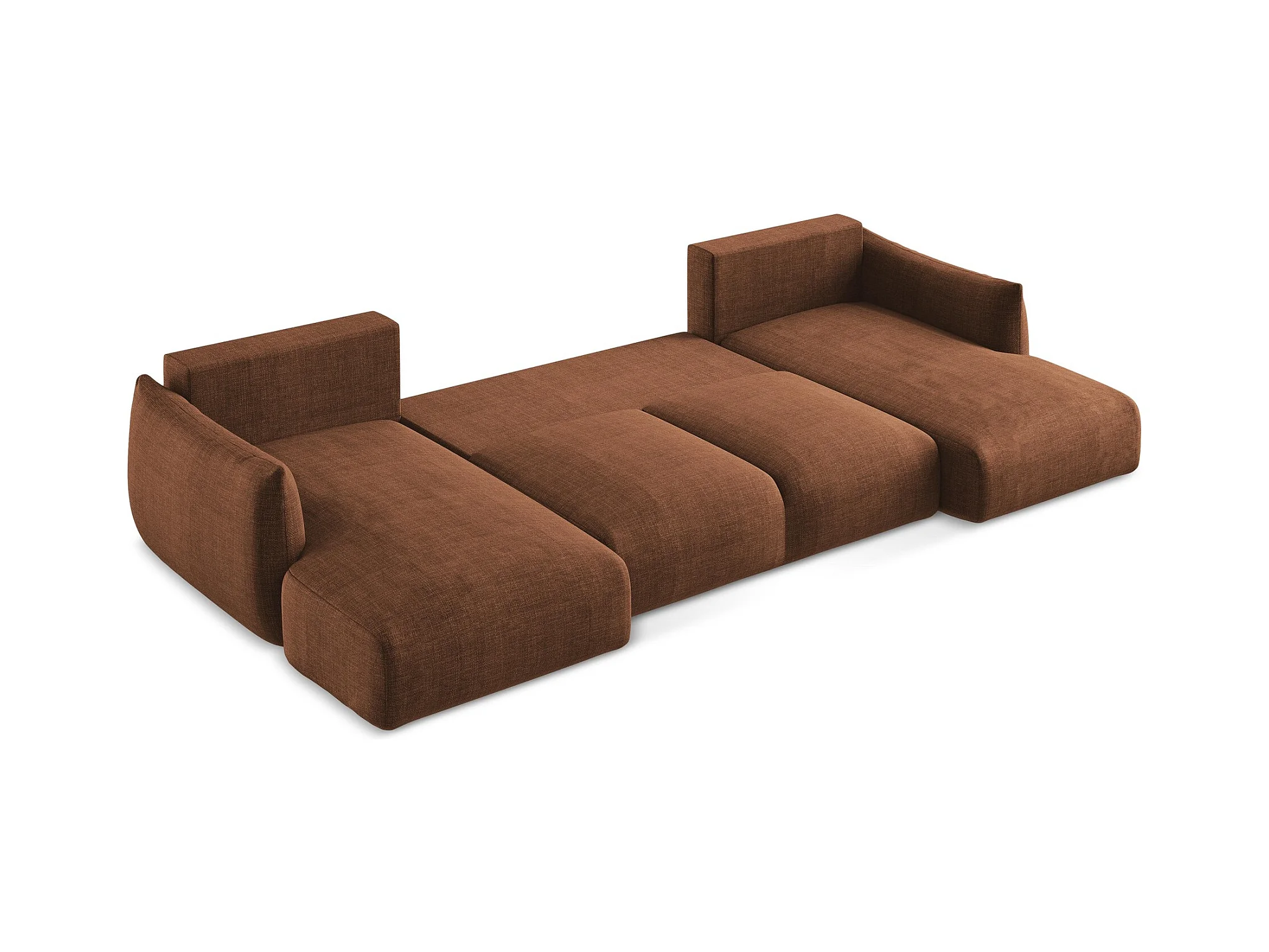 Canapé panoramique 4 places convertible en tissu chenille - terre cuite - LEILA