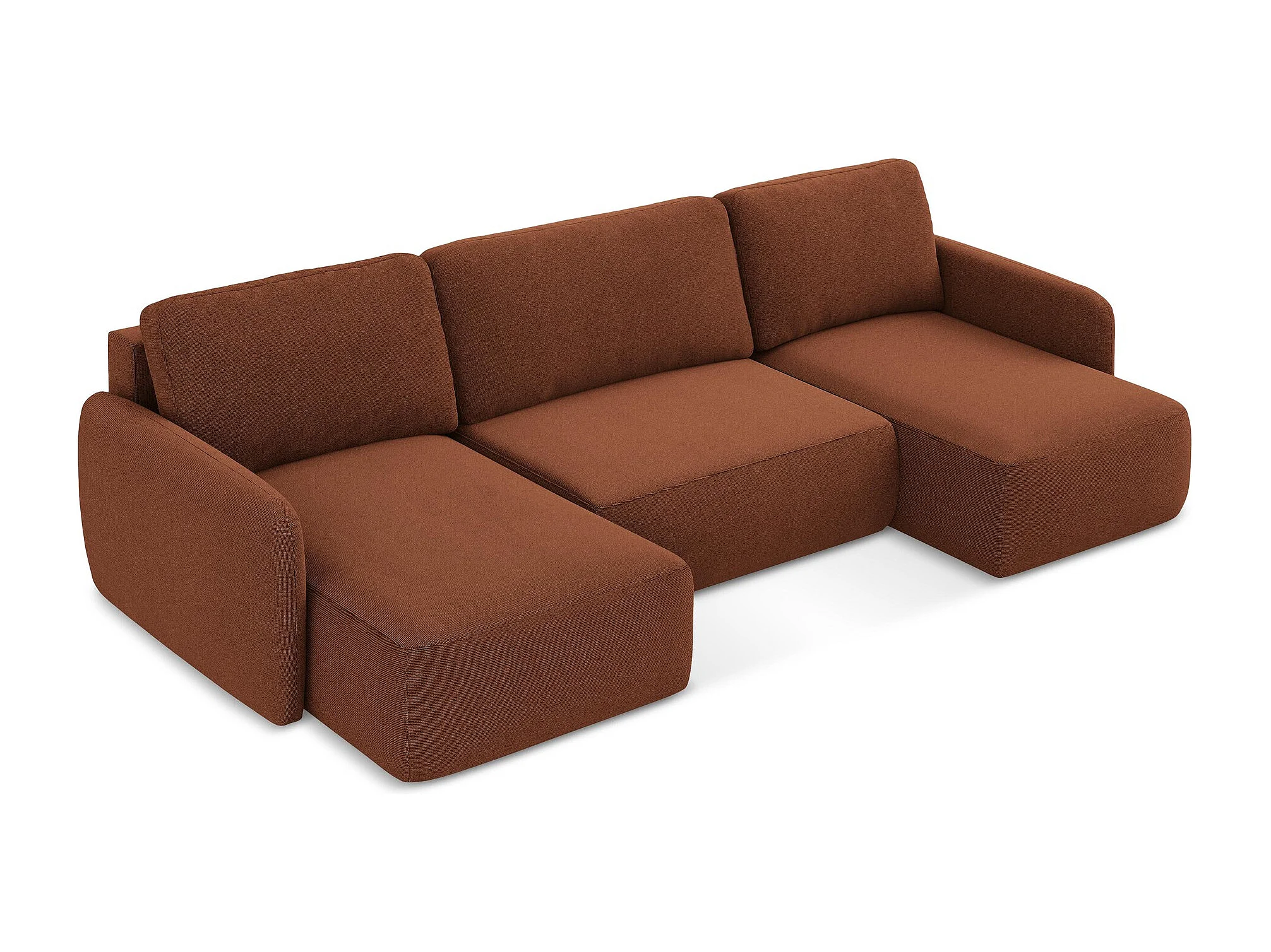 Canapé panoramique 4 places convertible en tissu texturé - terre cuite - LILO