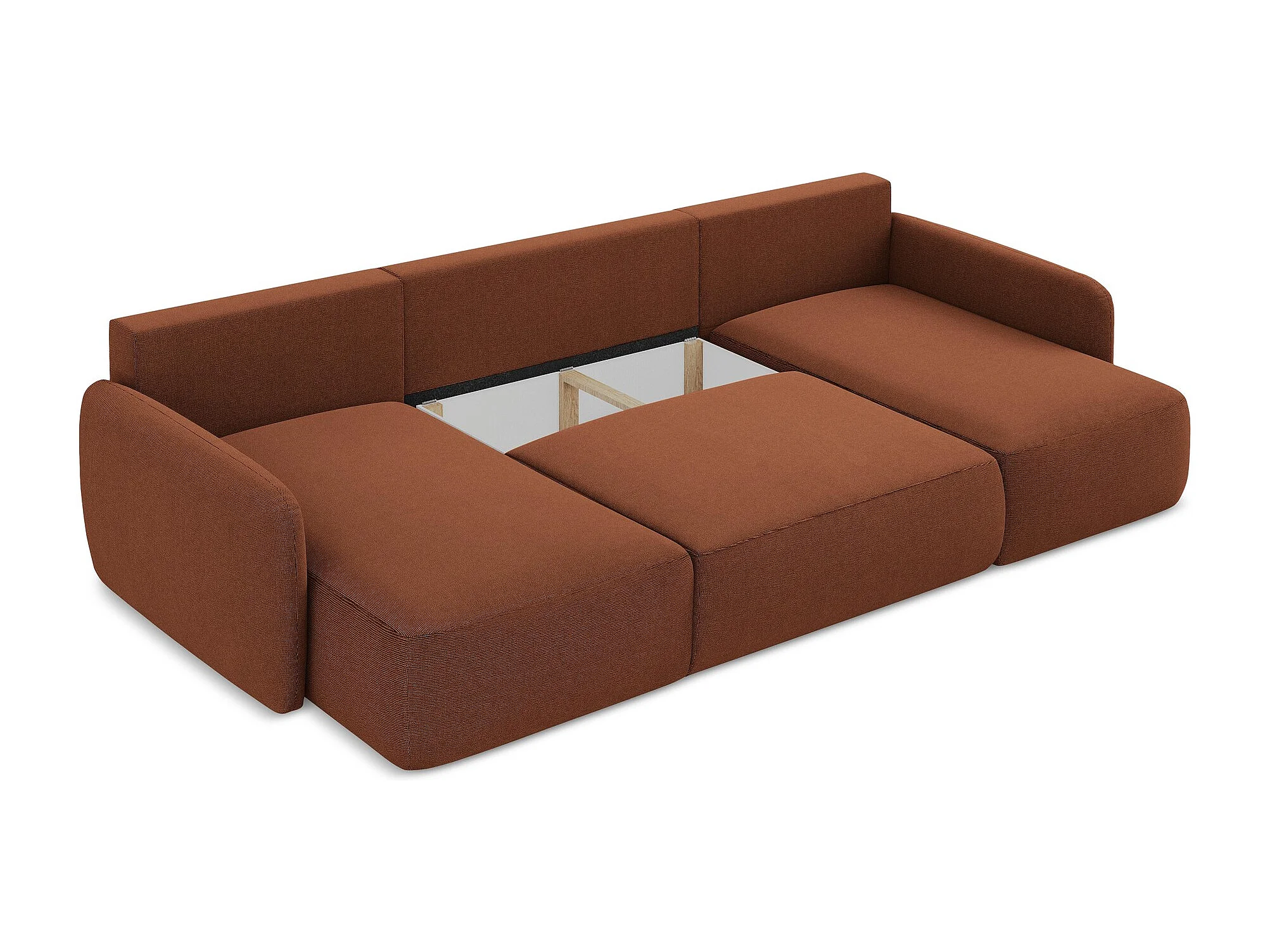 Canapé d'angle droit convertible en tissu texturé - terre cuite - GUAVA