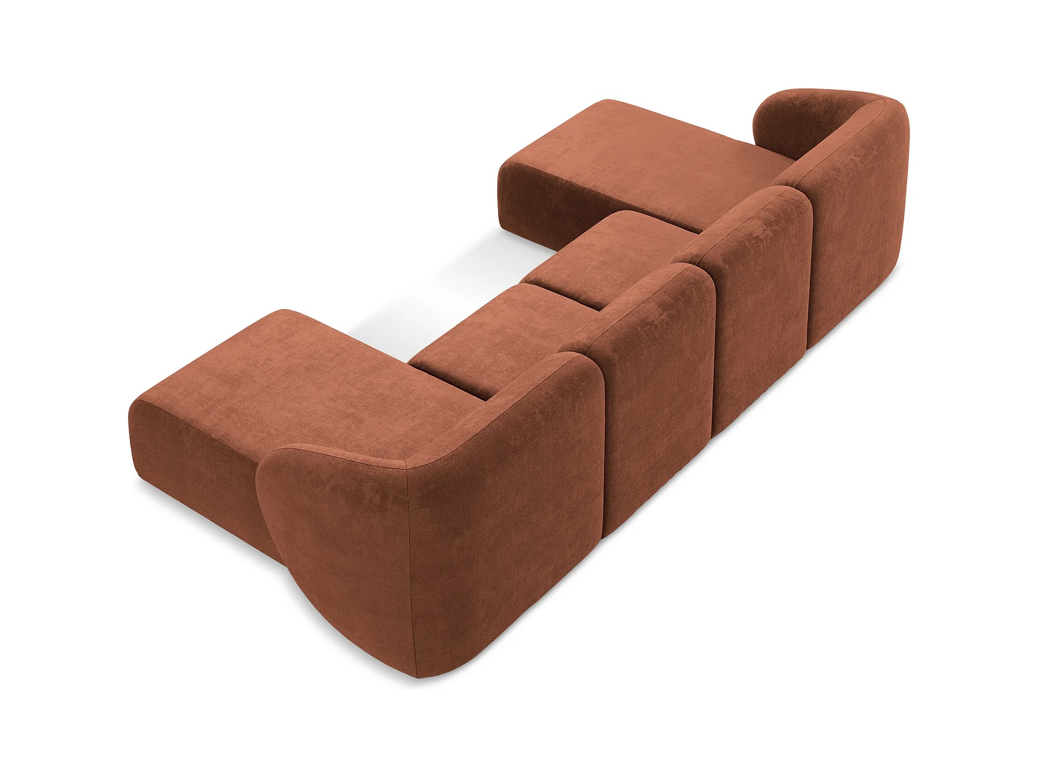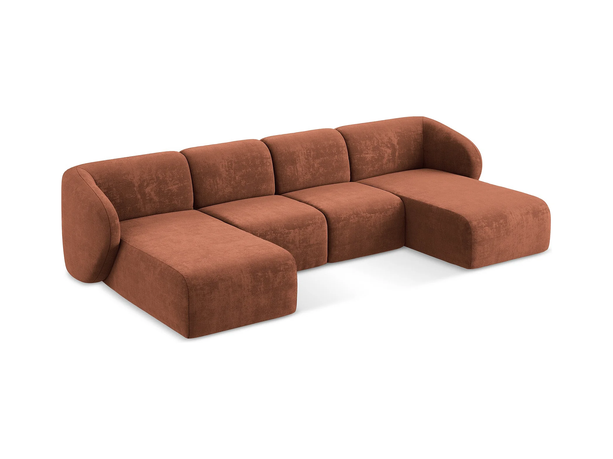 Canapé panoramique 4 places modulaire en tissu chenille - terre cuite - OMAO