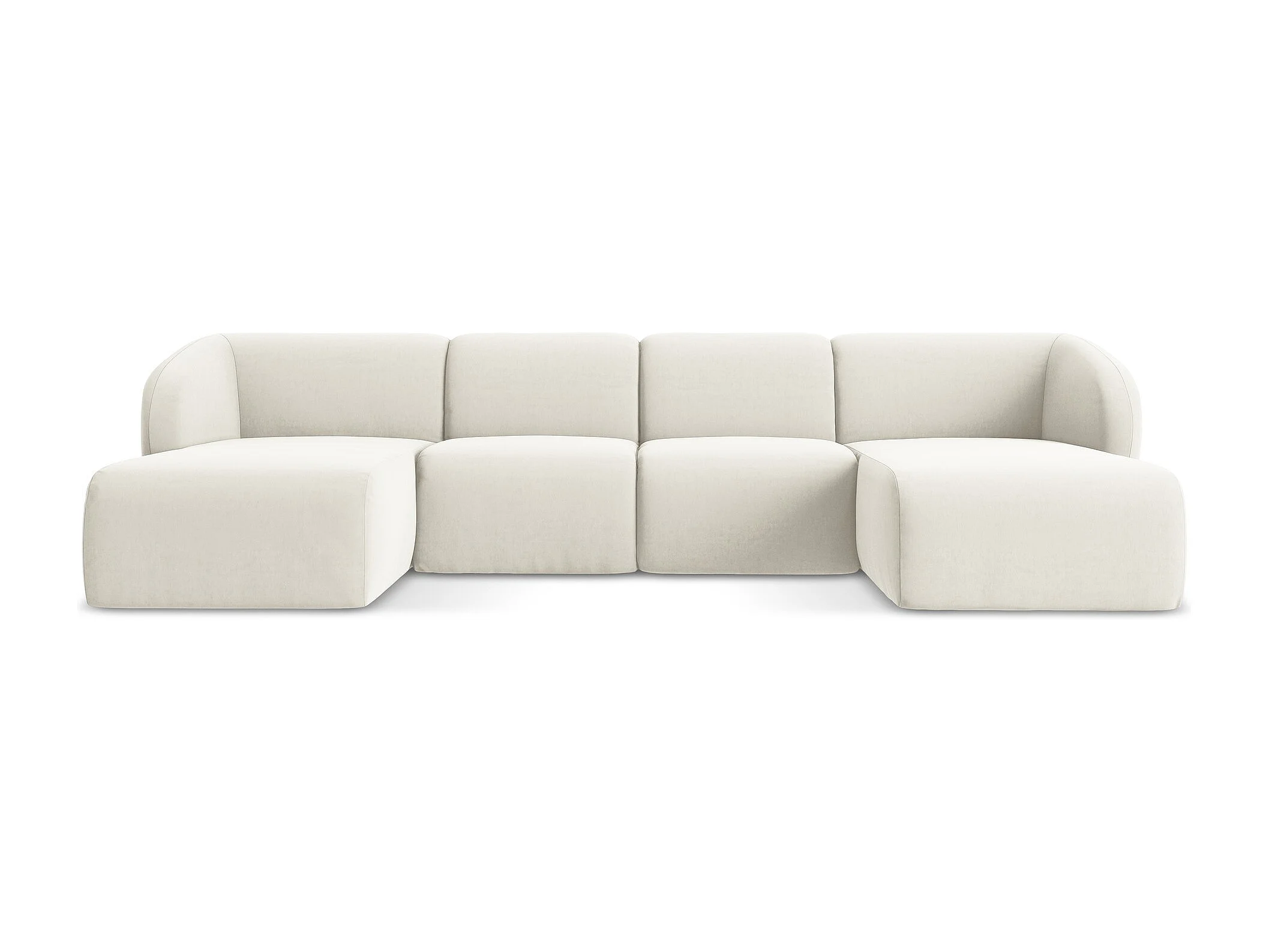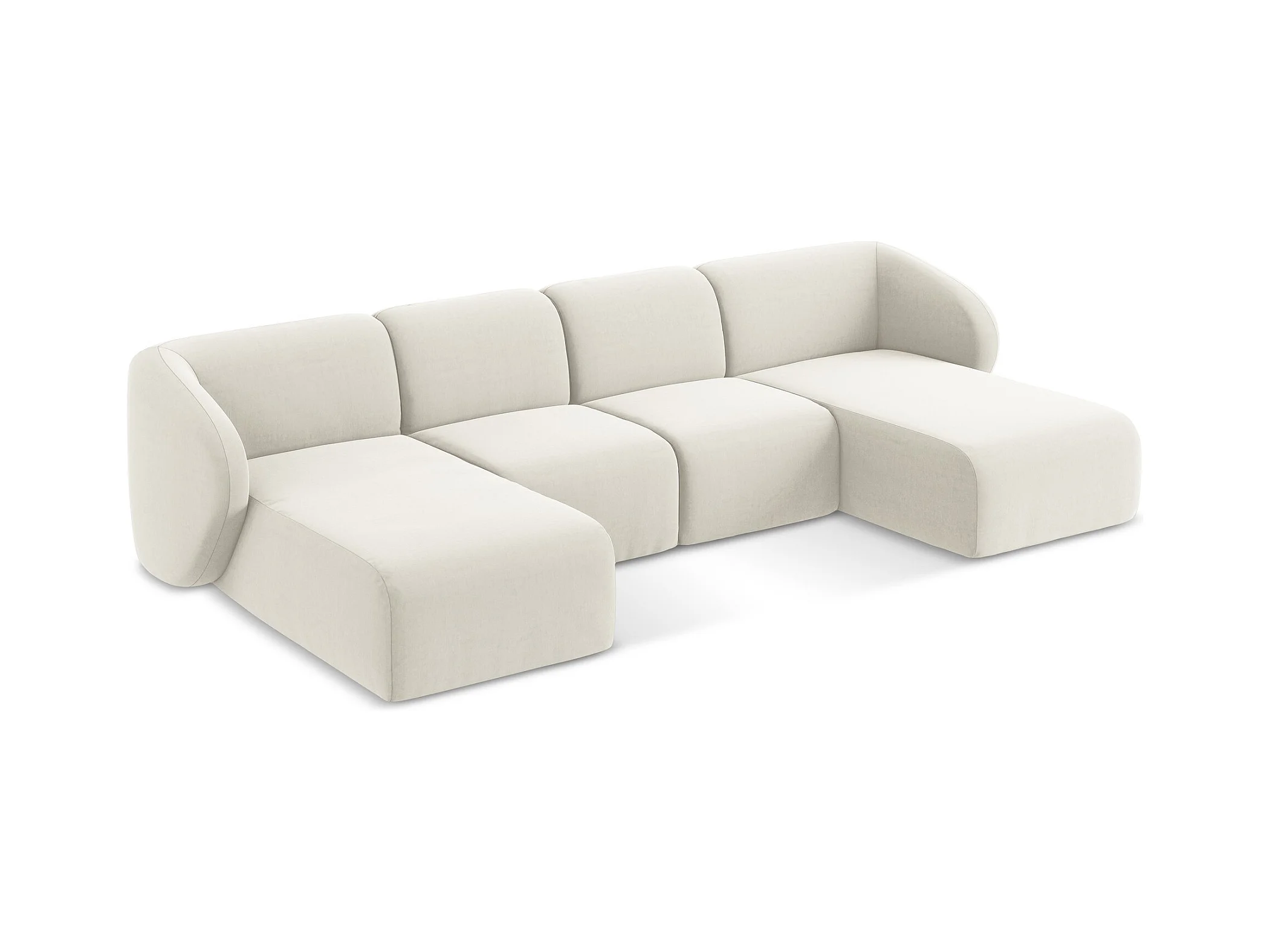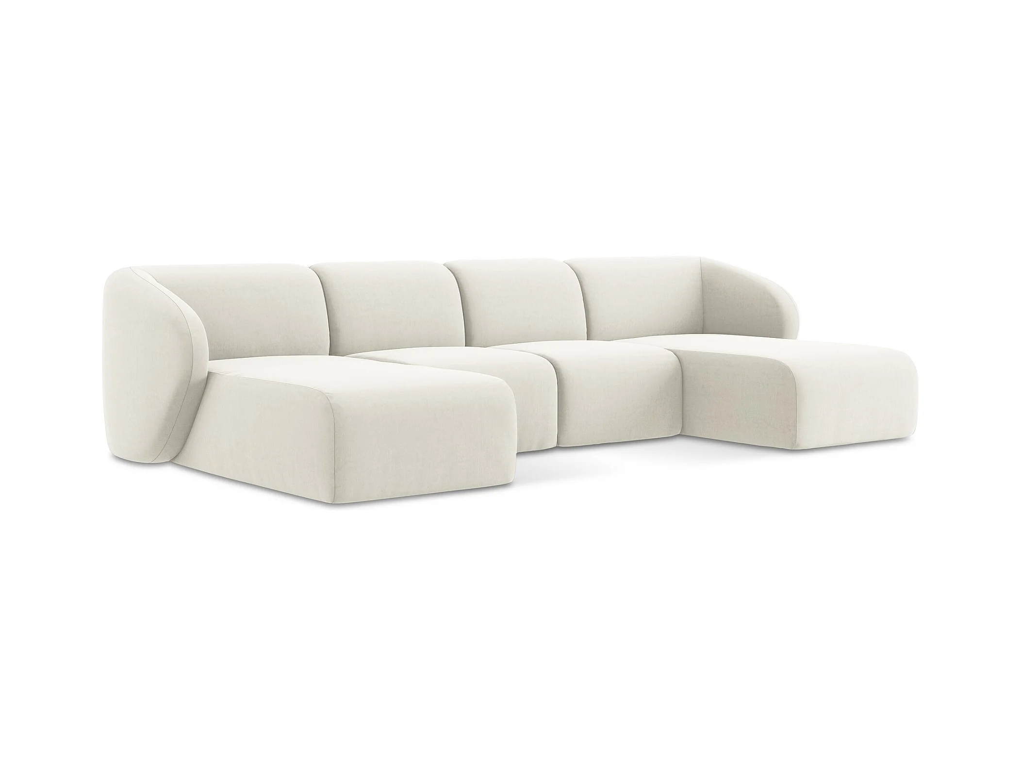 Canapé panoramique 4 places en velours - beige clair - LANI
