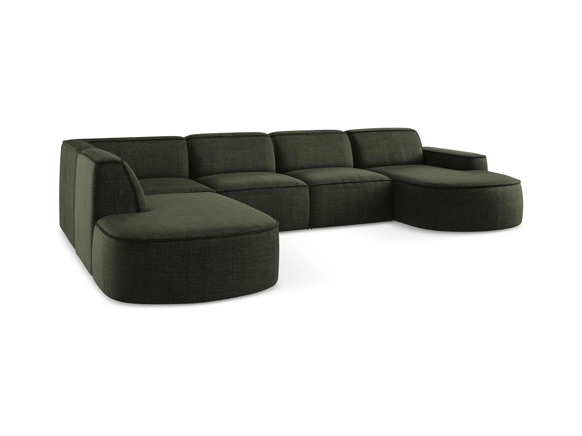 Canapé panoramique 4 places modulaire en tissu chenille - olive - OMAO