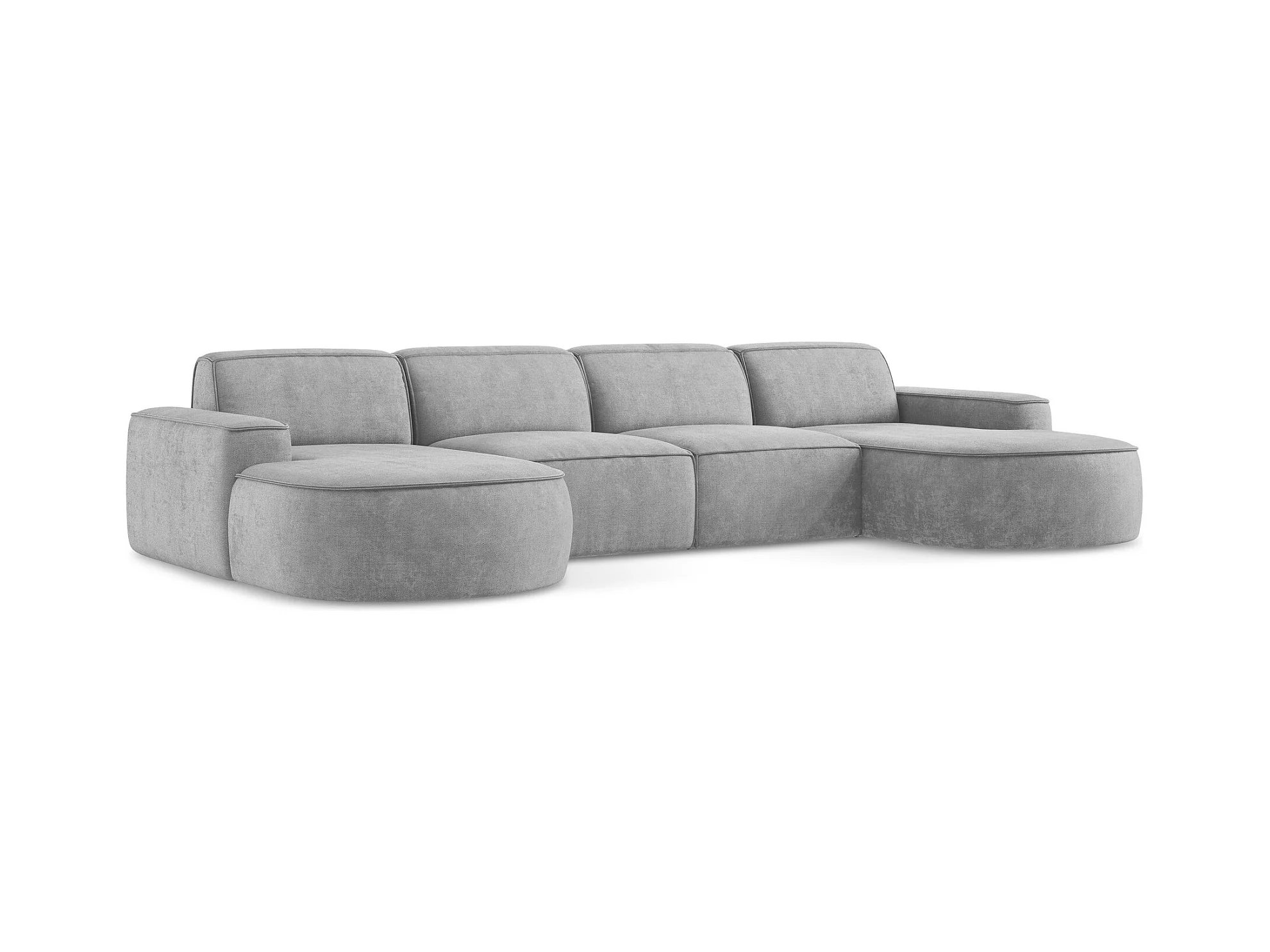 Canapé panoramique 4 places modulaire en tissu chenille - gris clair - OMAO