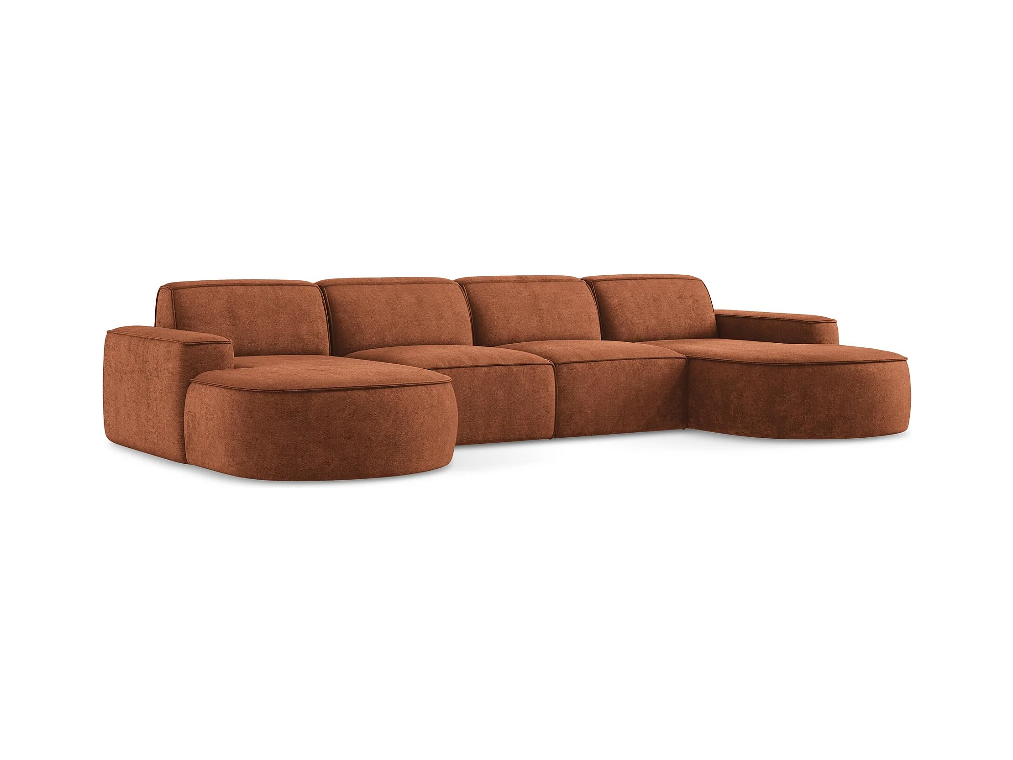 Canapé panoramique 4 places modulaire en tissu chenille - terre cuite - OMAO