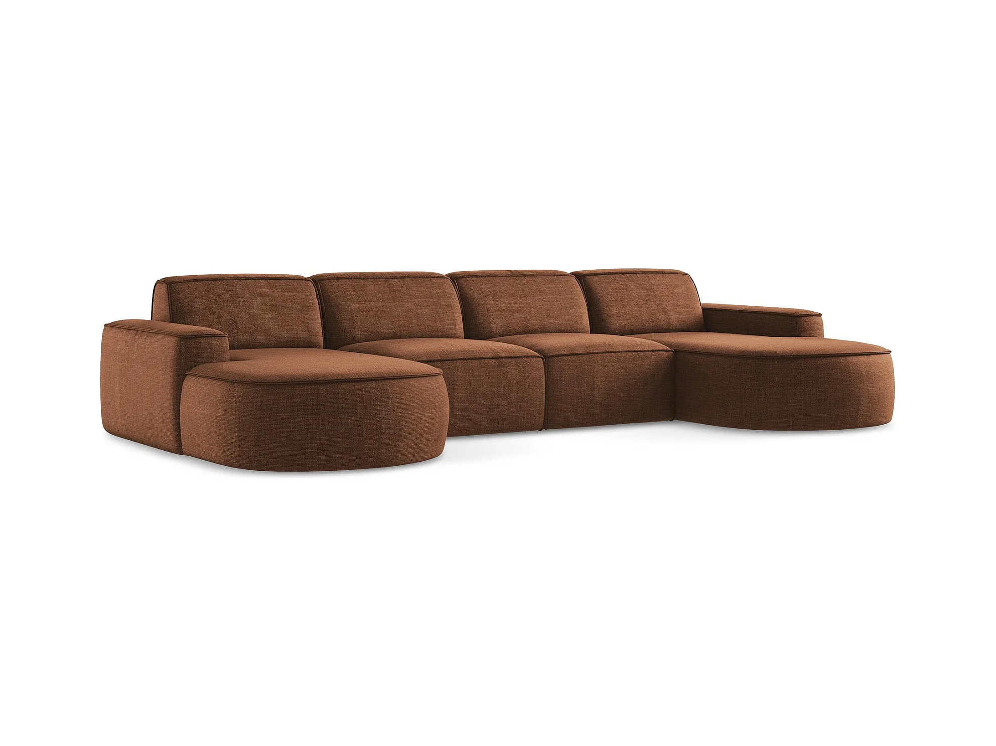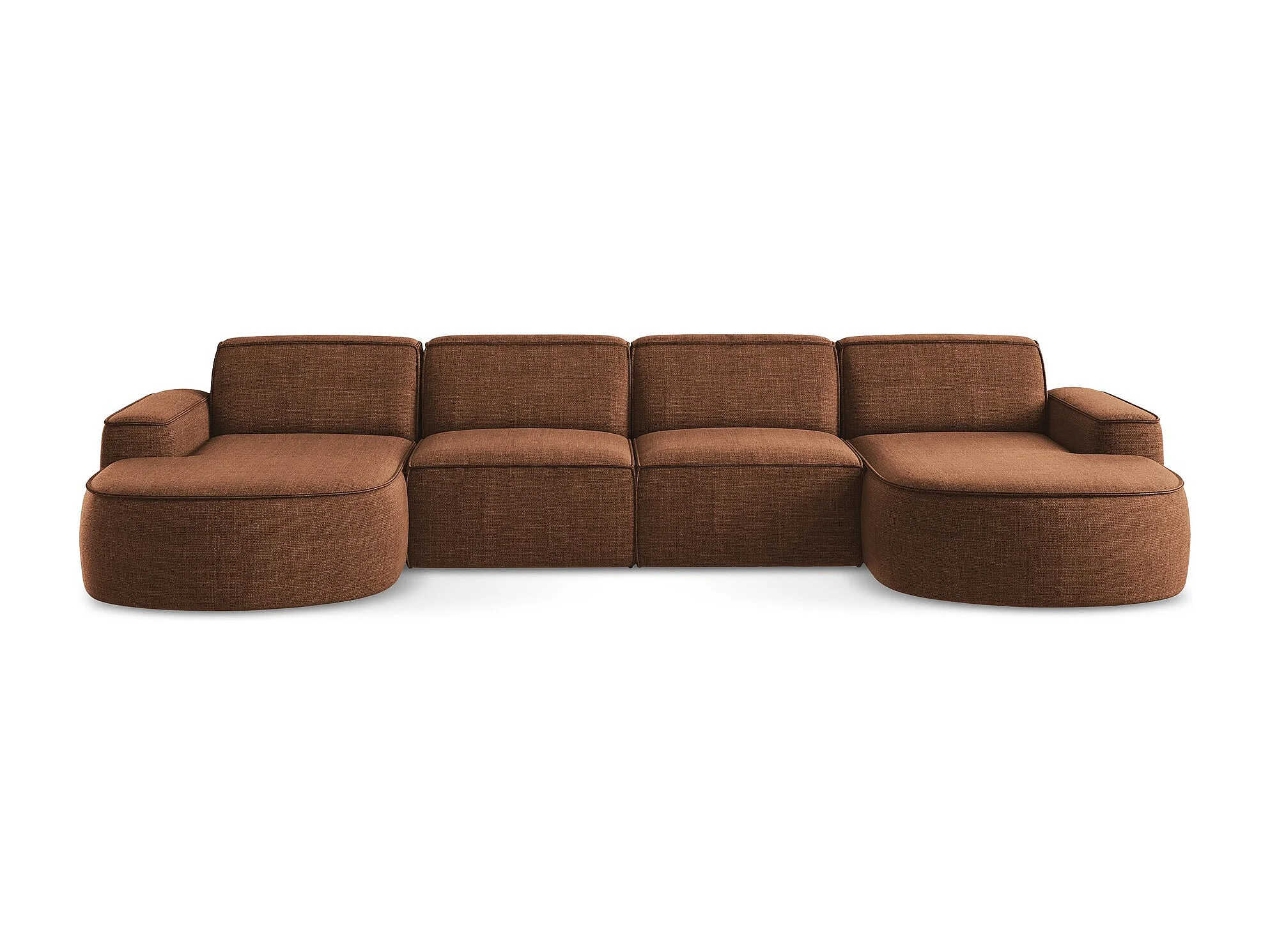 Canapé panoramique 4 places modulaire en tissu chenille - terre cuite - OMAO
